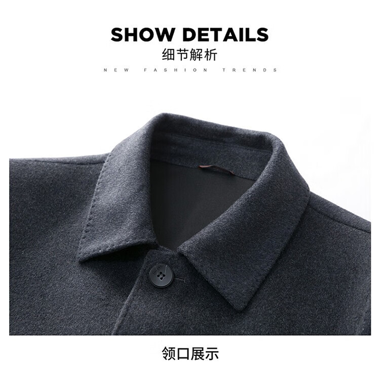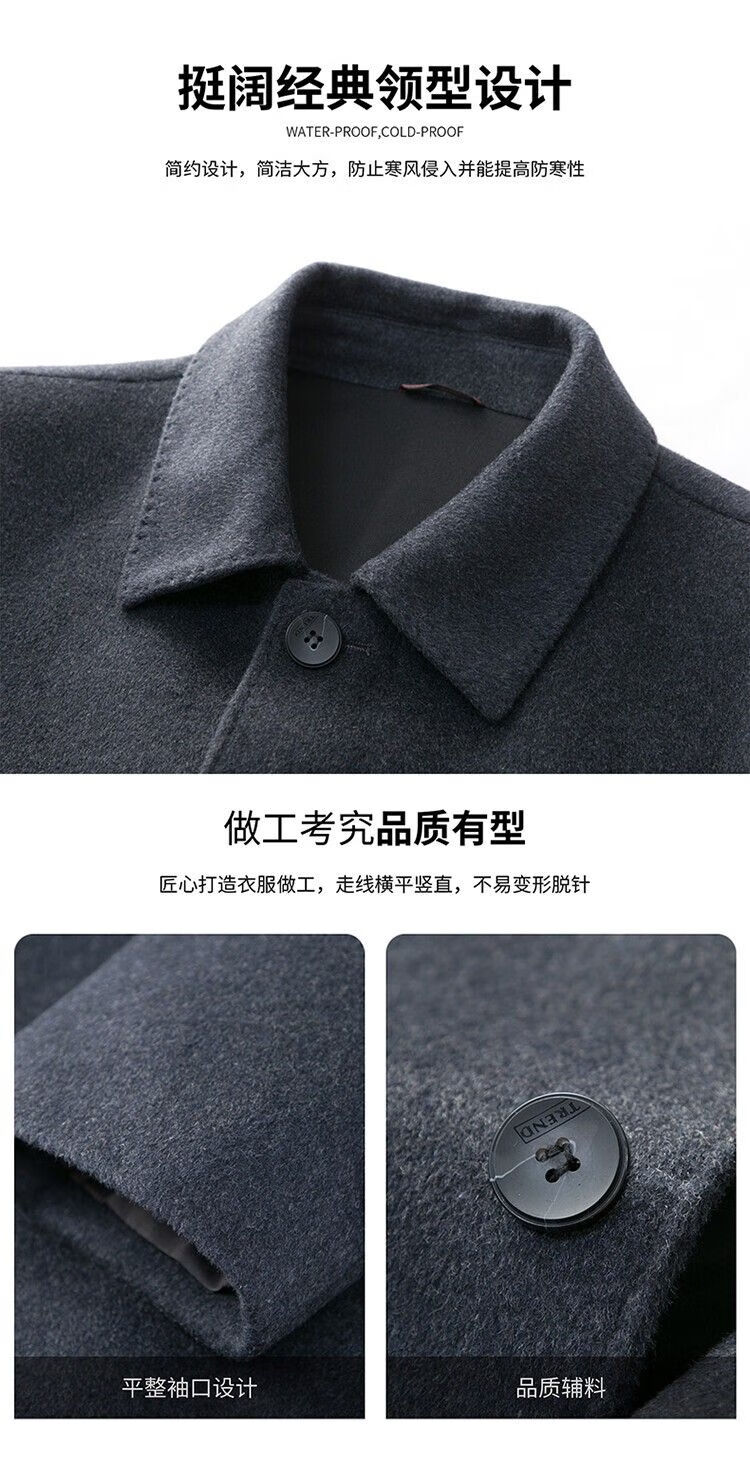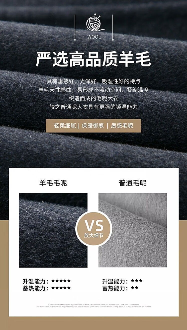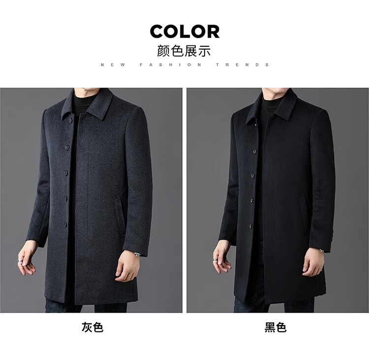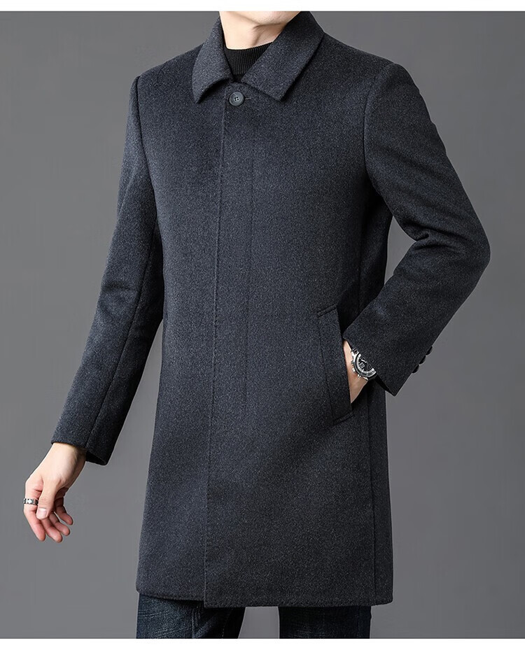 KBXNG Jinba Men's Woolen Coat Autumn and Winter New Casual Versatile Warm Lapel Wool Woolen Coat Mid-Length Black 2XL (185) (Suitable for 150-165Jin Jin equals 0.5 kg)