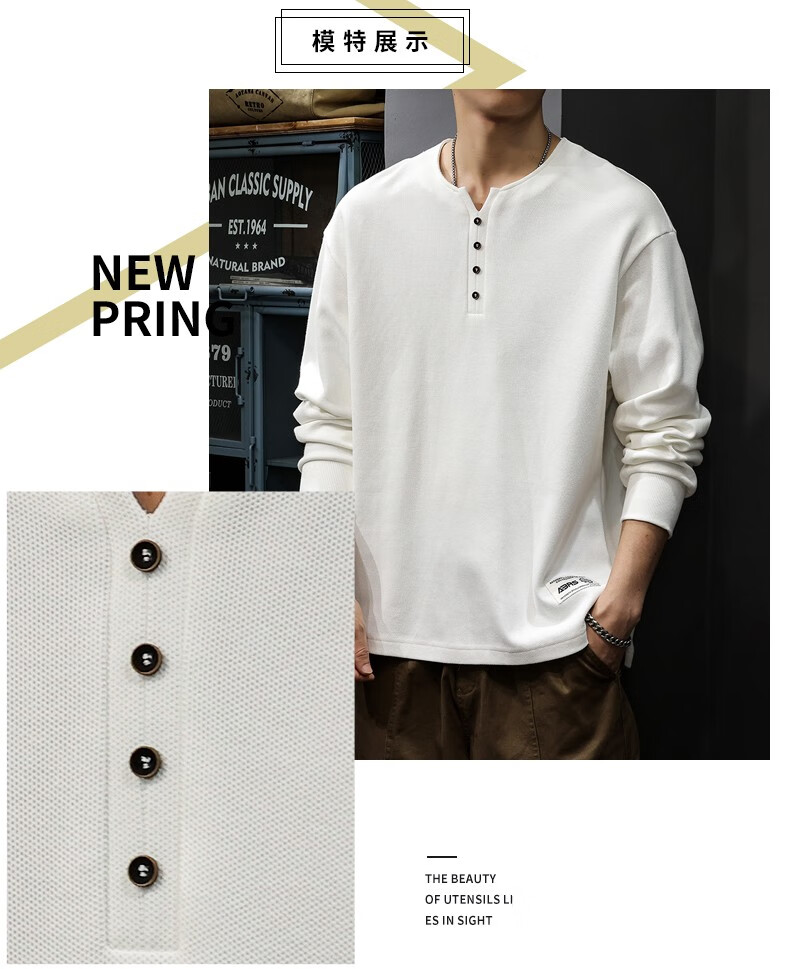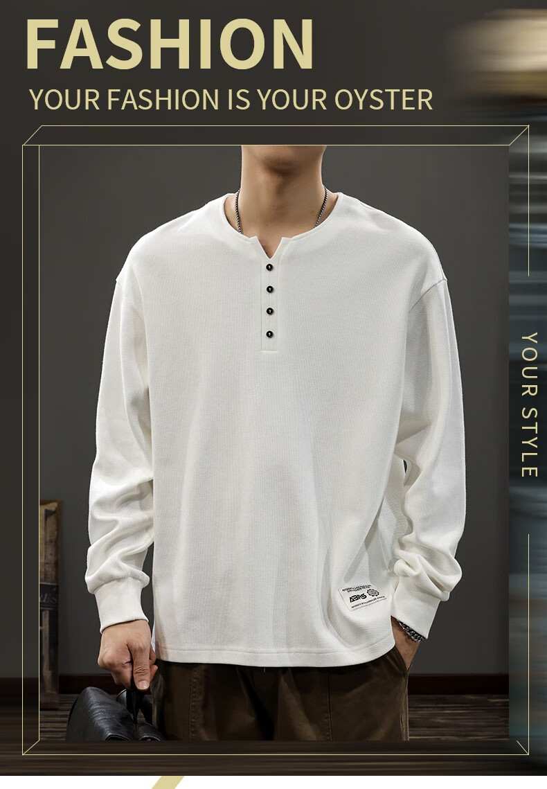 Kuraishi Kazuki trendy brand spring and autumn new Henry collar sweatshirt men's loose and versatile American casual solid color bottoming shirt black M suitable weight 90-130Jin Jin is equal to 0.5 kg