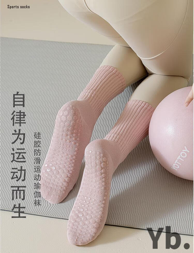 Miaopule yoga socks women's mid-calf socks spring and autumn fitness dance Pilates non-slip sports women's floor socks purple