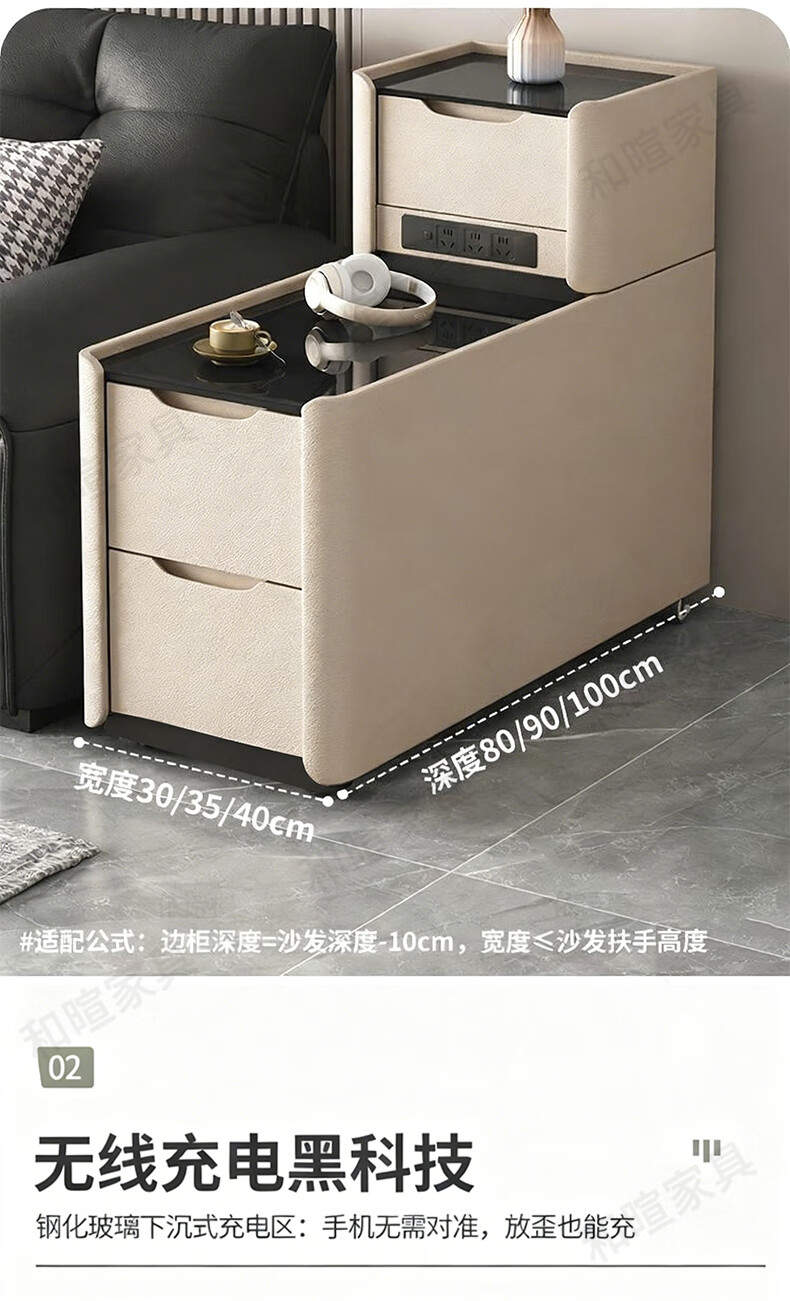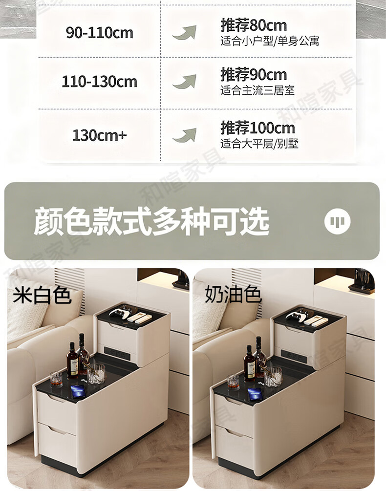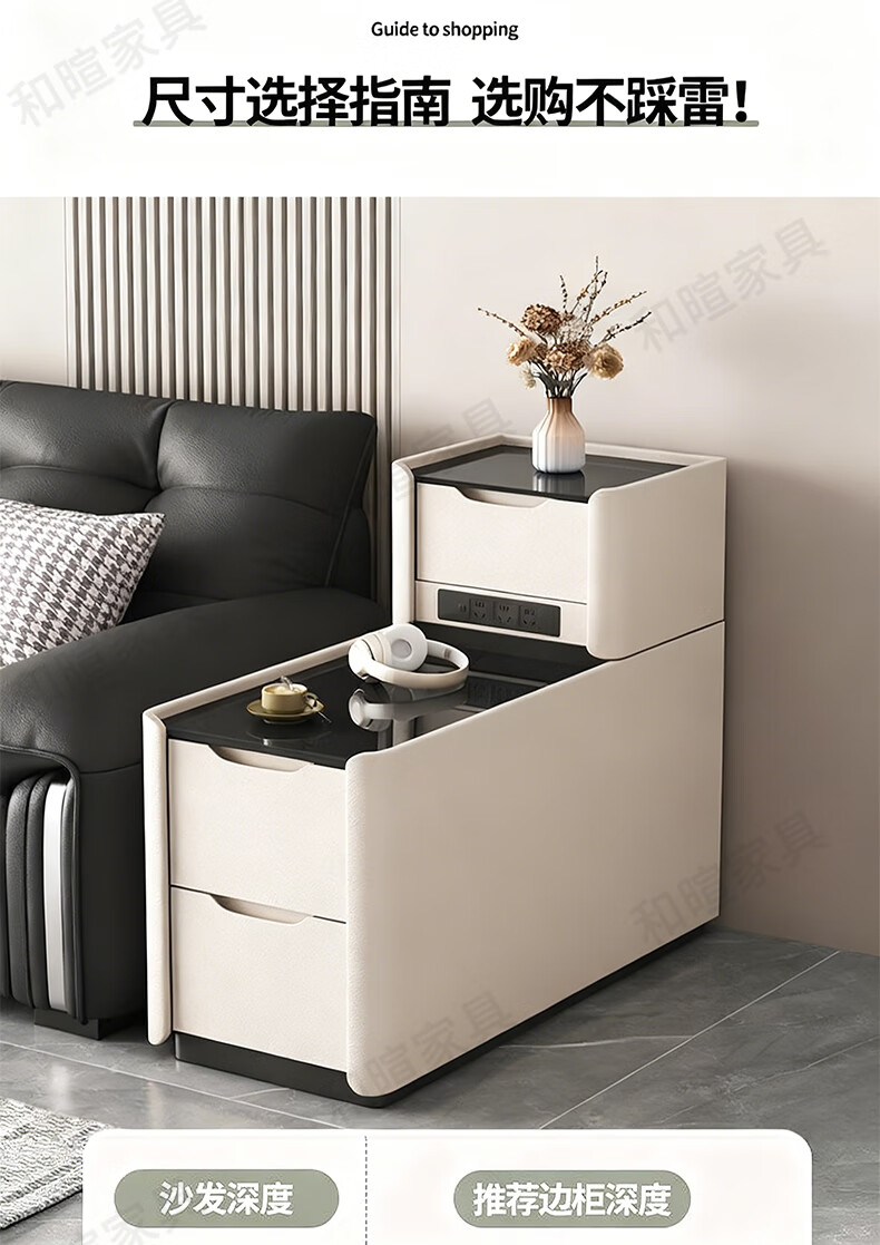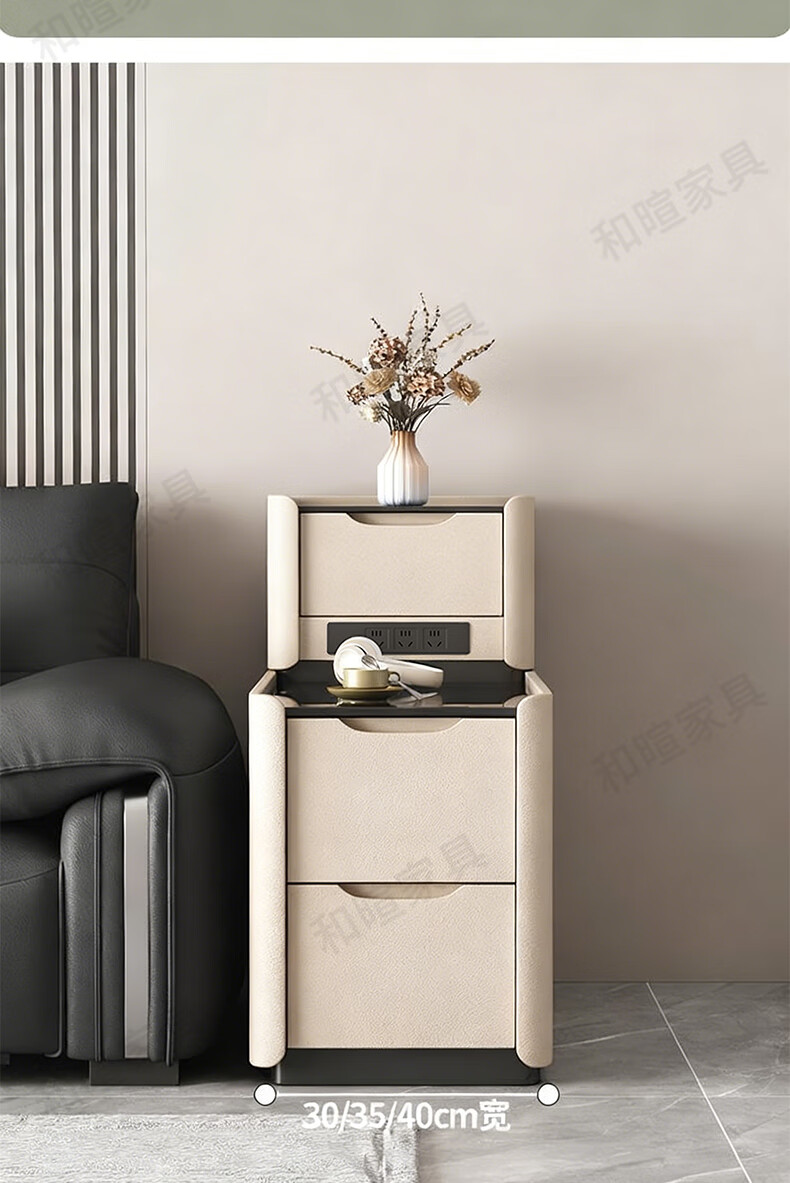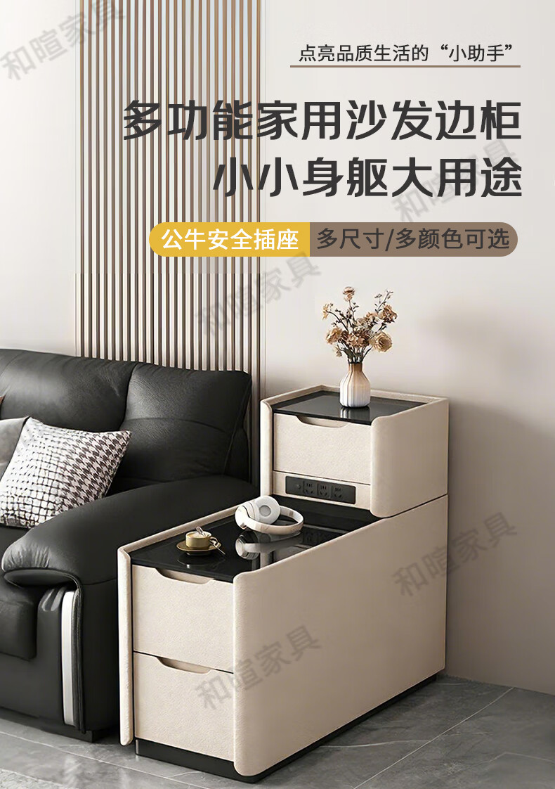 Hexuan living room sofa side cabinet multi-functional modern simple solid wood storage cabinet ultra-narrow light luxury sofa side table with socket cream color shipped in one package 30*80*85cm