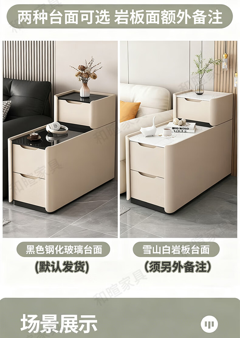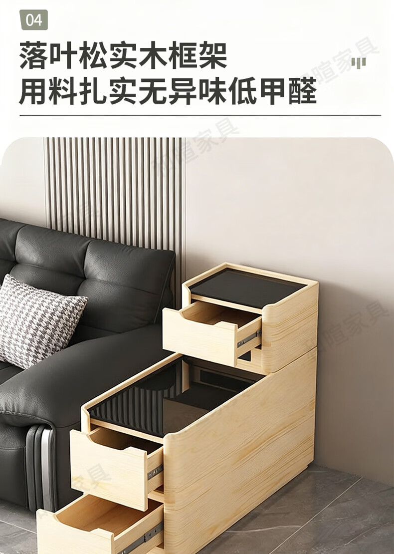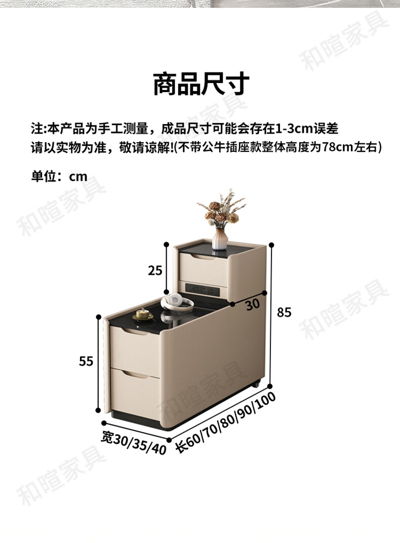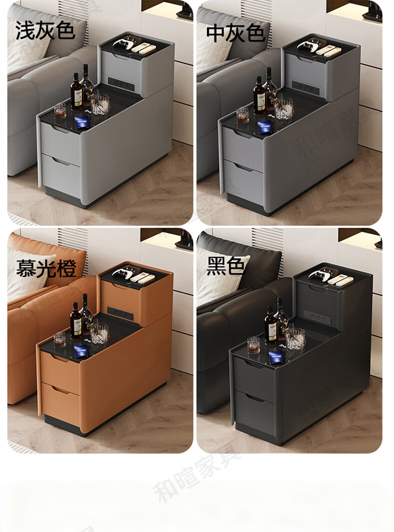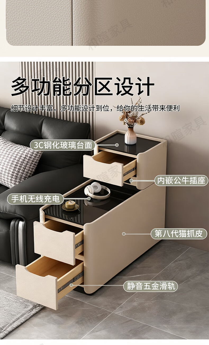 Hexuan living room sofa side cabinet multi-functional modern simple solid wood storage cabinet ultra-narrow light luxury sofa side table with socket cream color shipped in one package 30*80*85cm