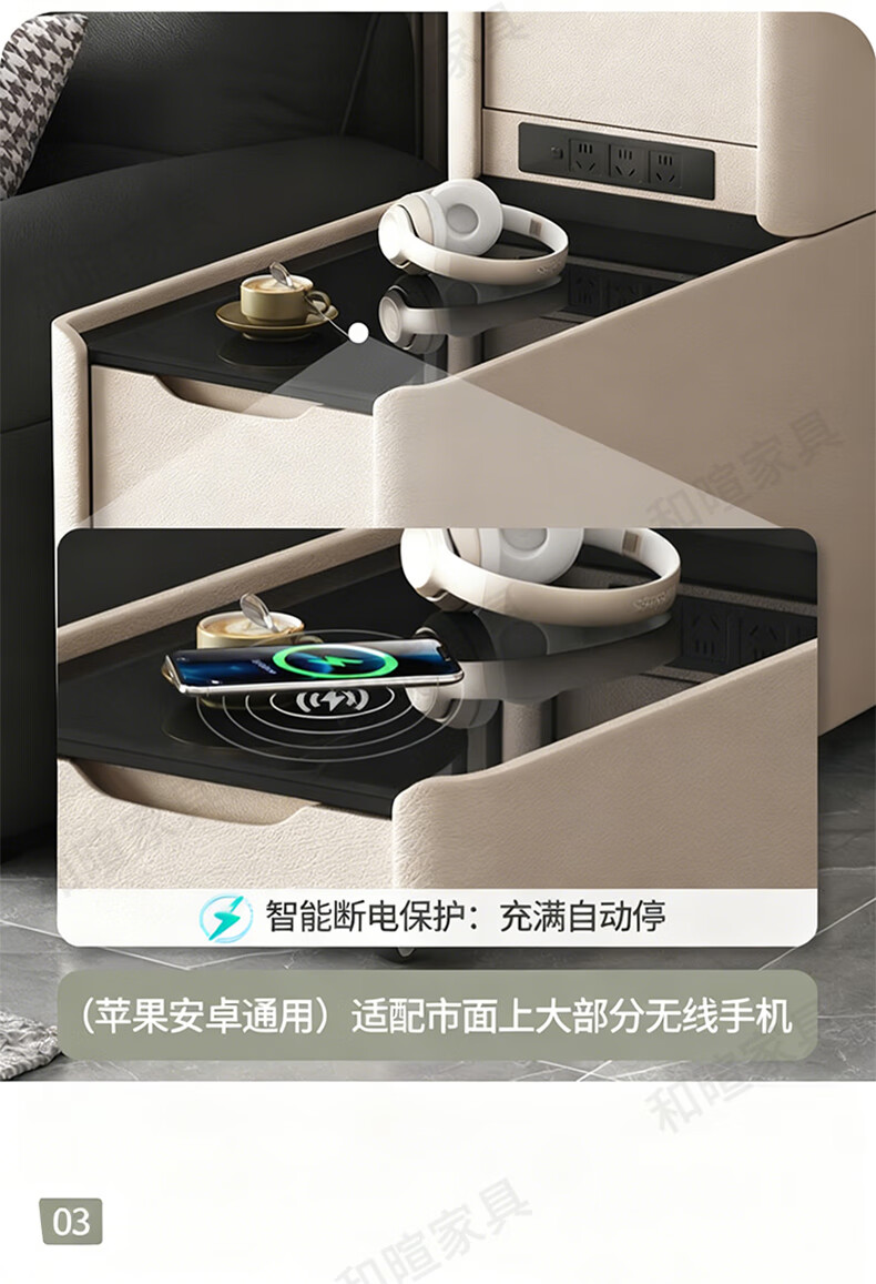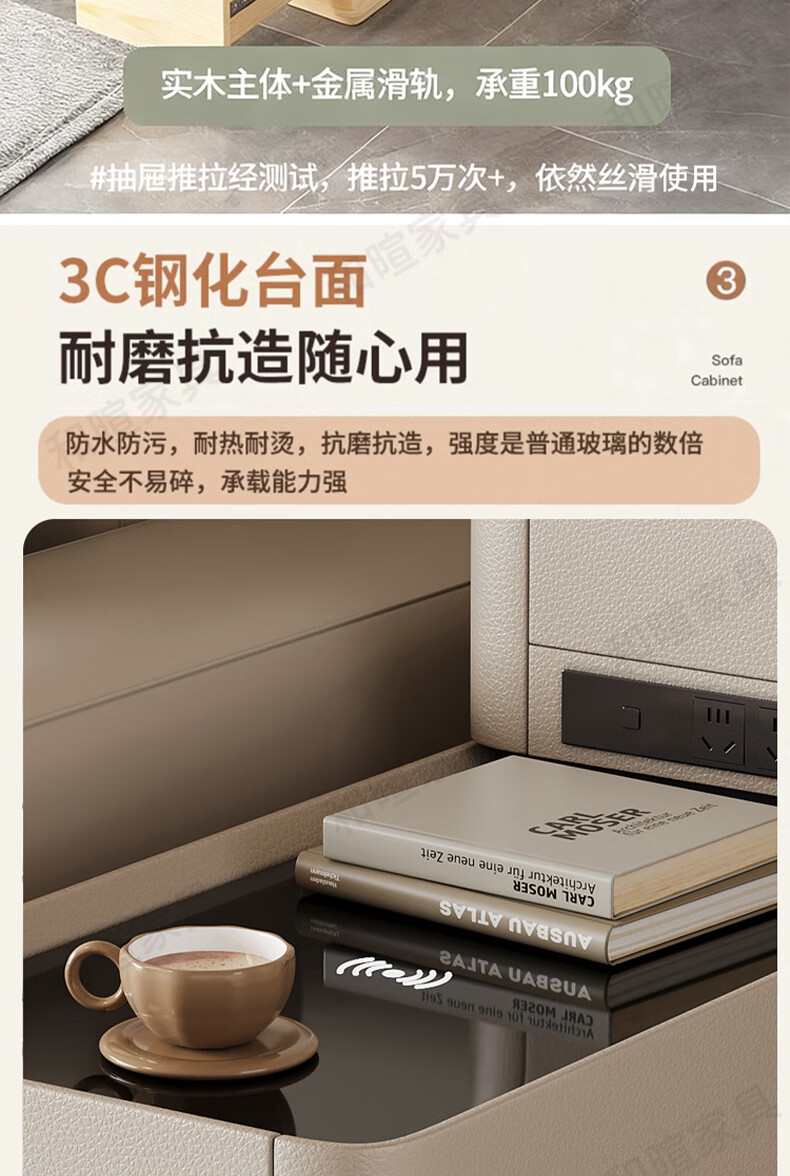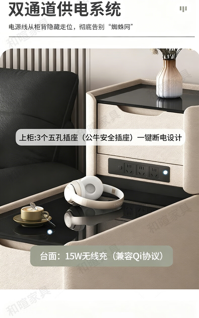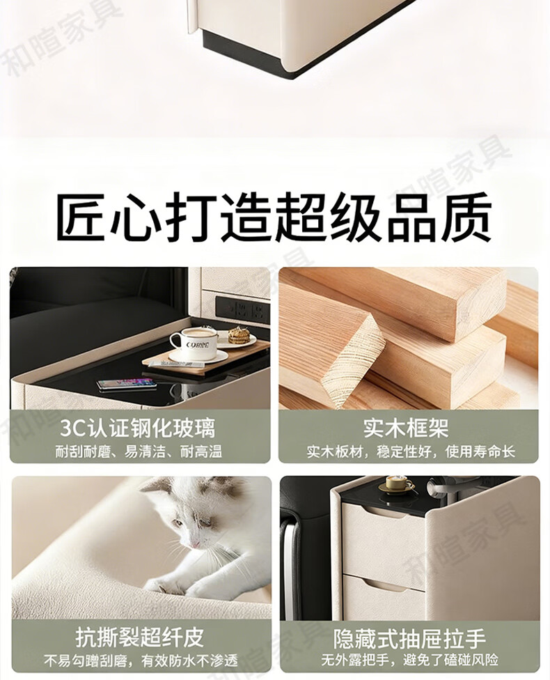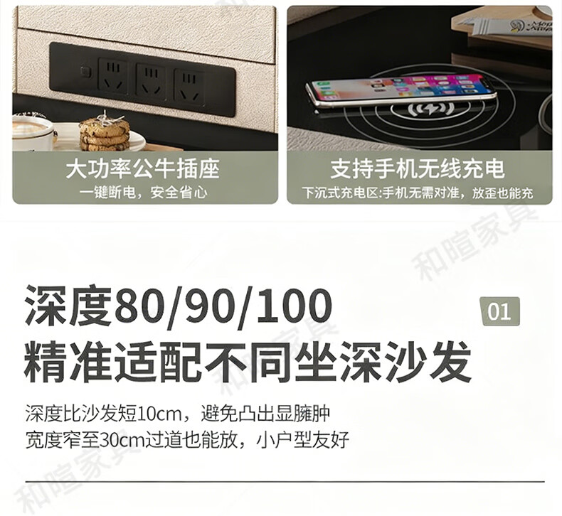 Hexuan living room sofa side cabinet multi-functional modern simple solid wood storage cabinet ultra-narrow light luxury sofa side table with socket cream color shipped in one package 30*80*85cm