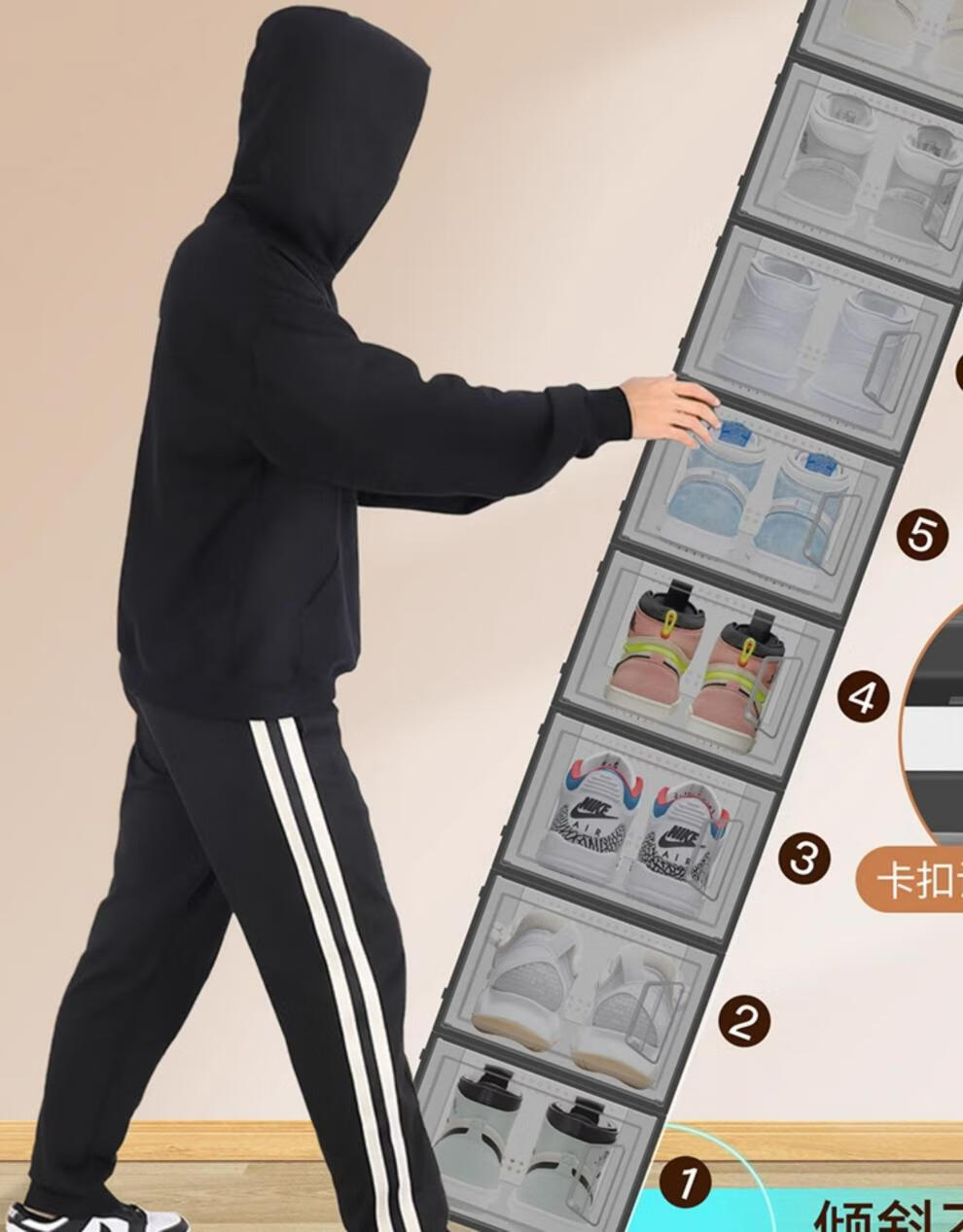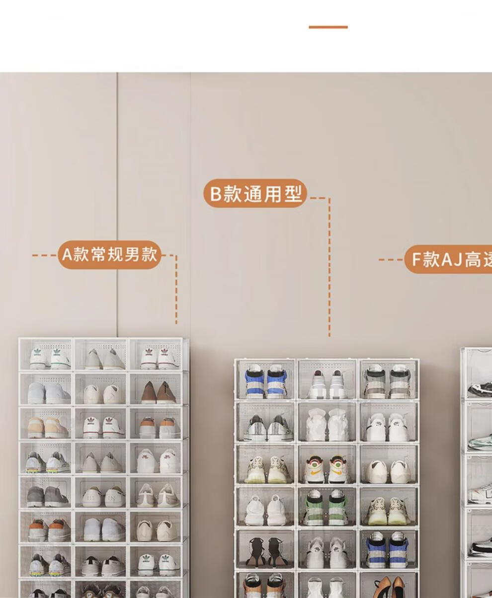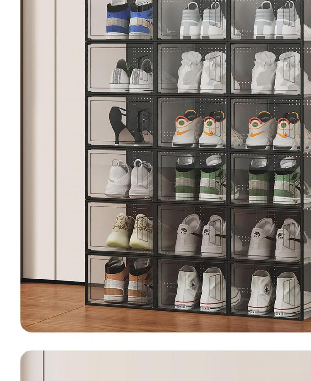 He Jiagong thickened shoe box storage box transparent foldable storage box plastic sneaker rack shoe cabinet drawer type space-saving artifact B type - 46.5 size transparent black buy 12 get 12 free, a total of 24 0x0x0cm