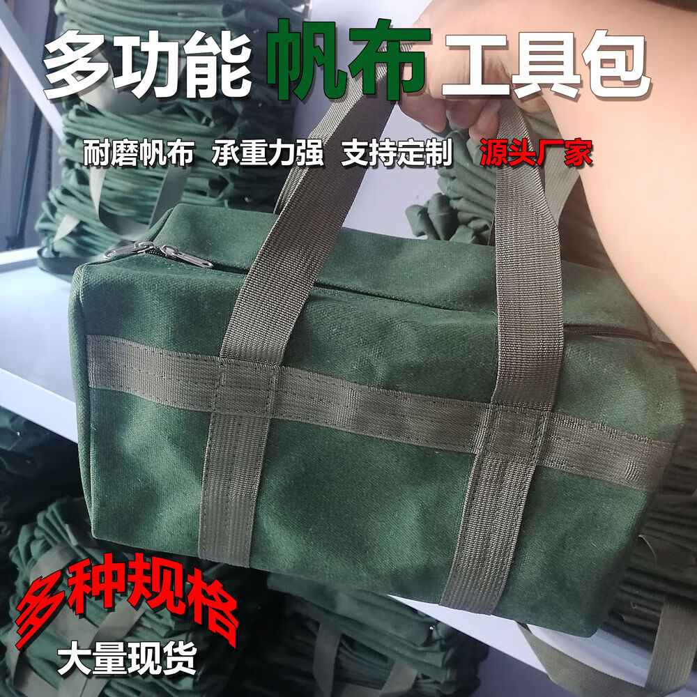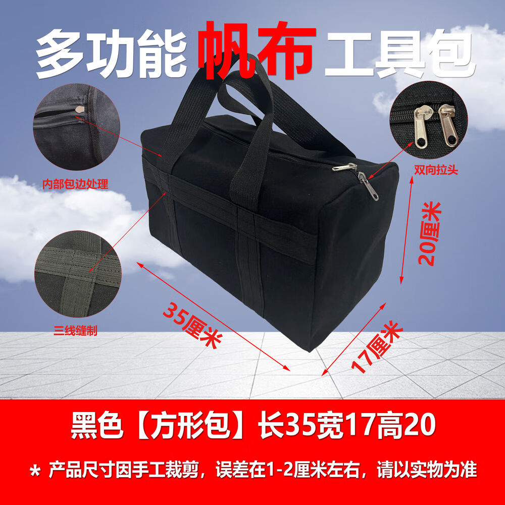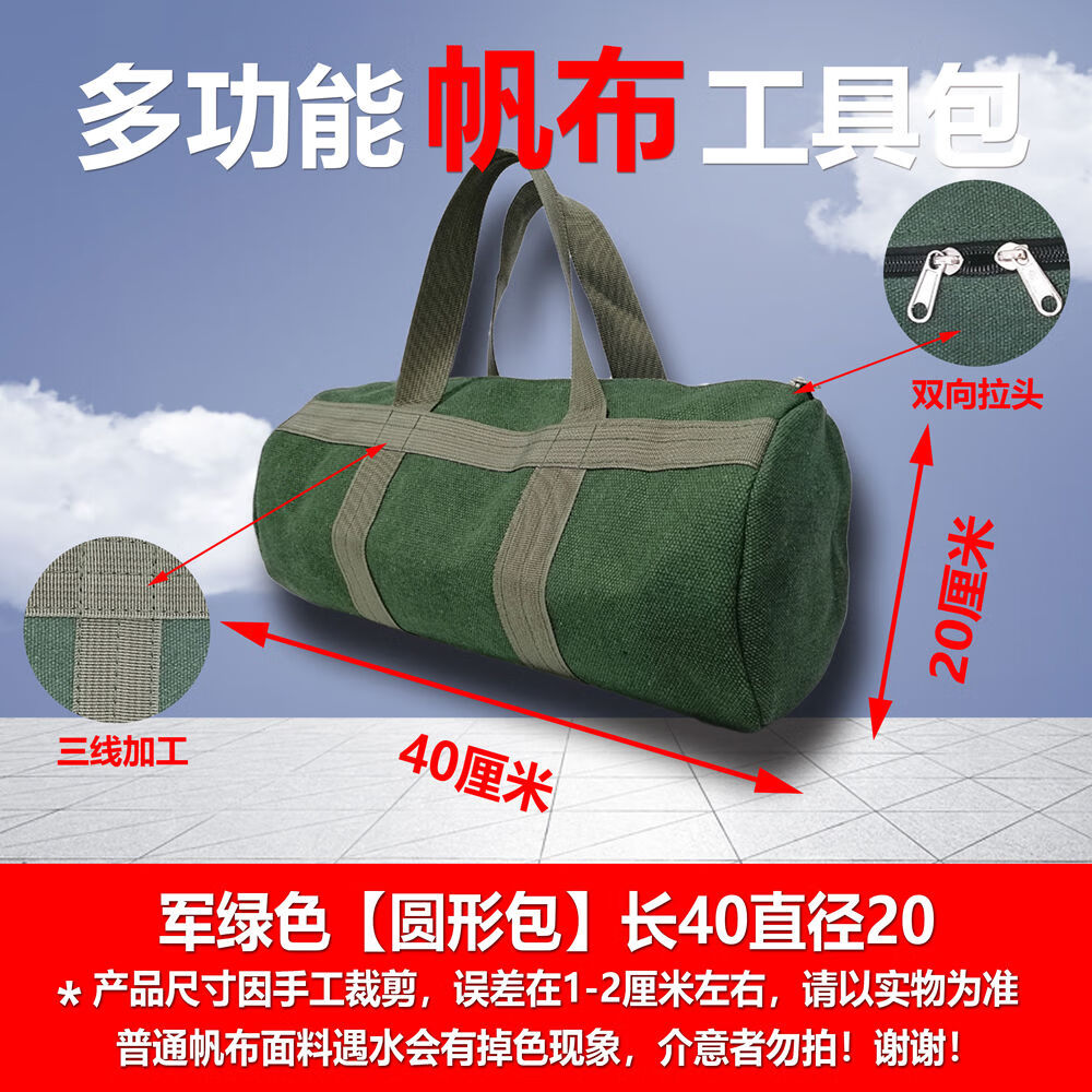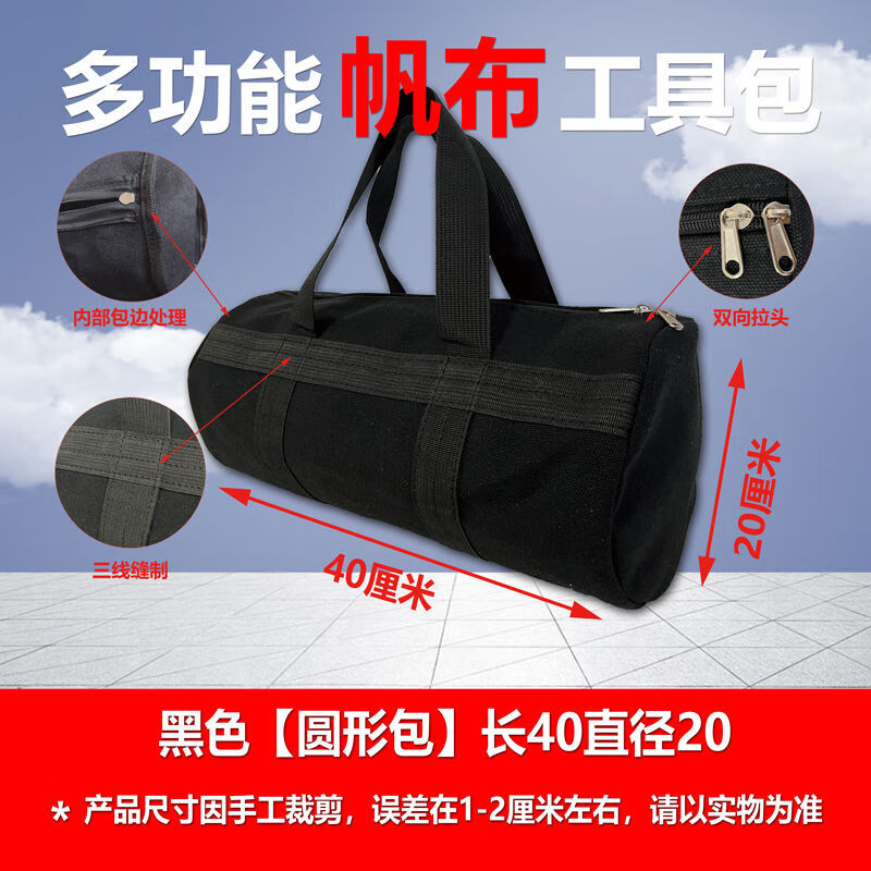 Pickup Cat customized thickened canvas tool bag multi-functional storage bag auto repair bag wear-resistant canvas vehicle tools labor insurance and durability black round bag length 50cm diameter 28cm non-fading inner edge