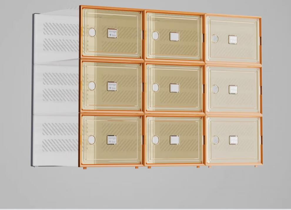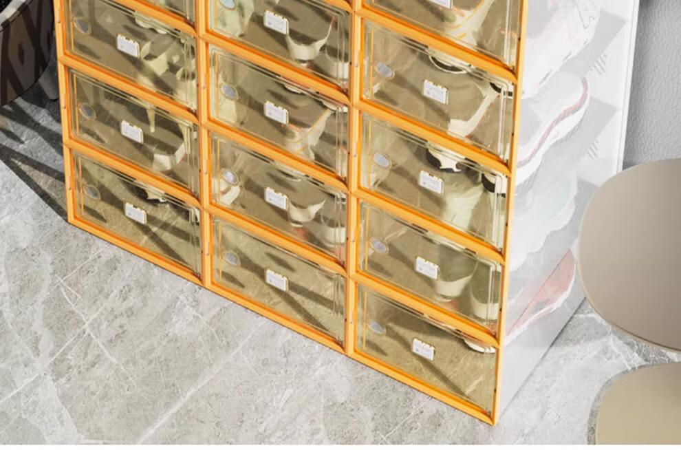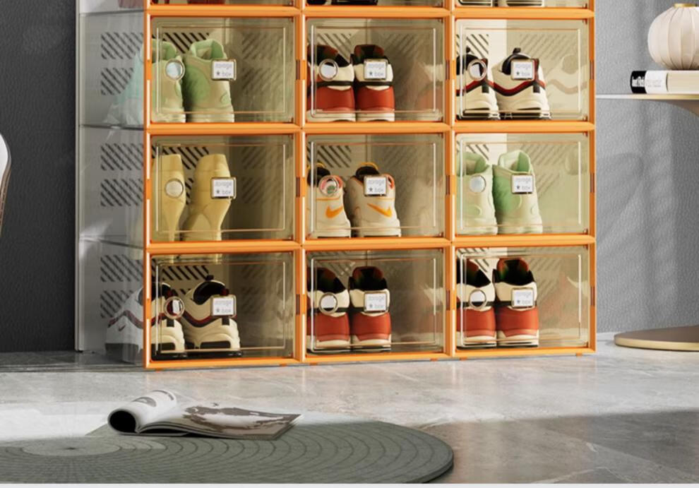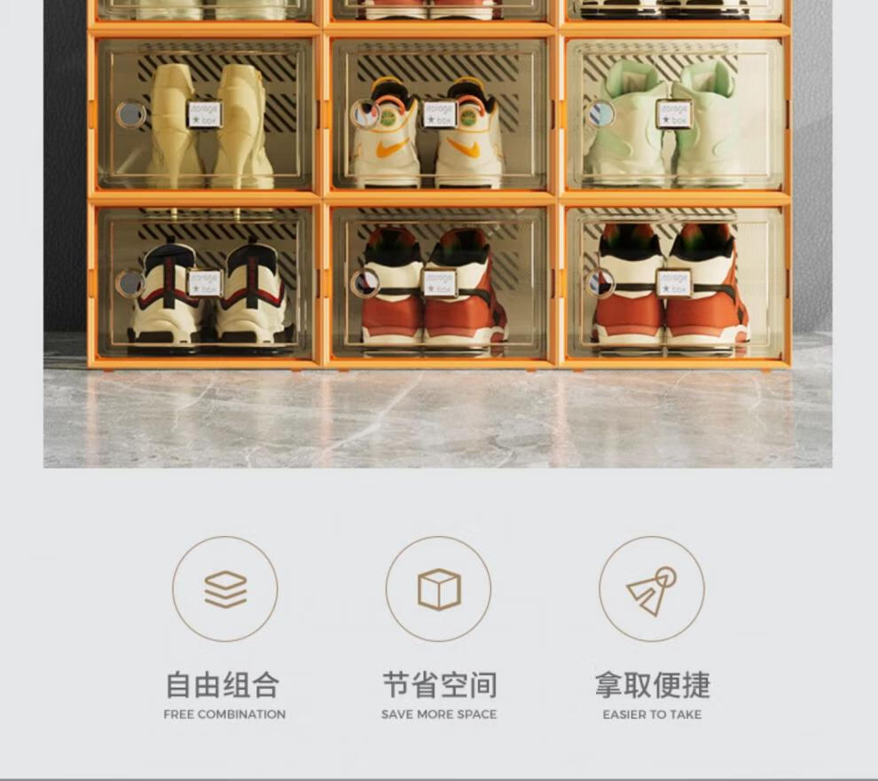 Shoebox (shoebox) shoe box storage box transparent shoe cabinet dormitory shoe artifact internet celebrity space-saving drawer folding sneaker plastic shoe rack high transparency model can hold 42 sizes small orange 32 pieces 0x0x0cm