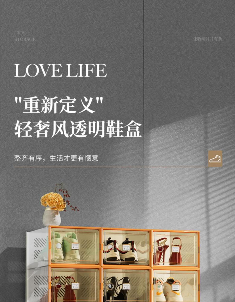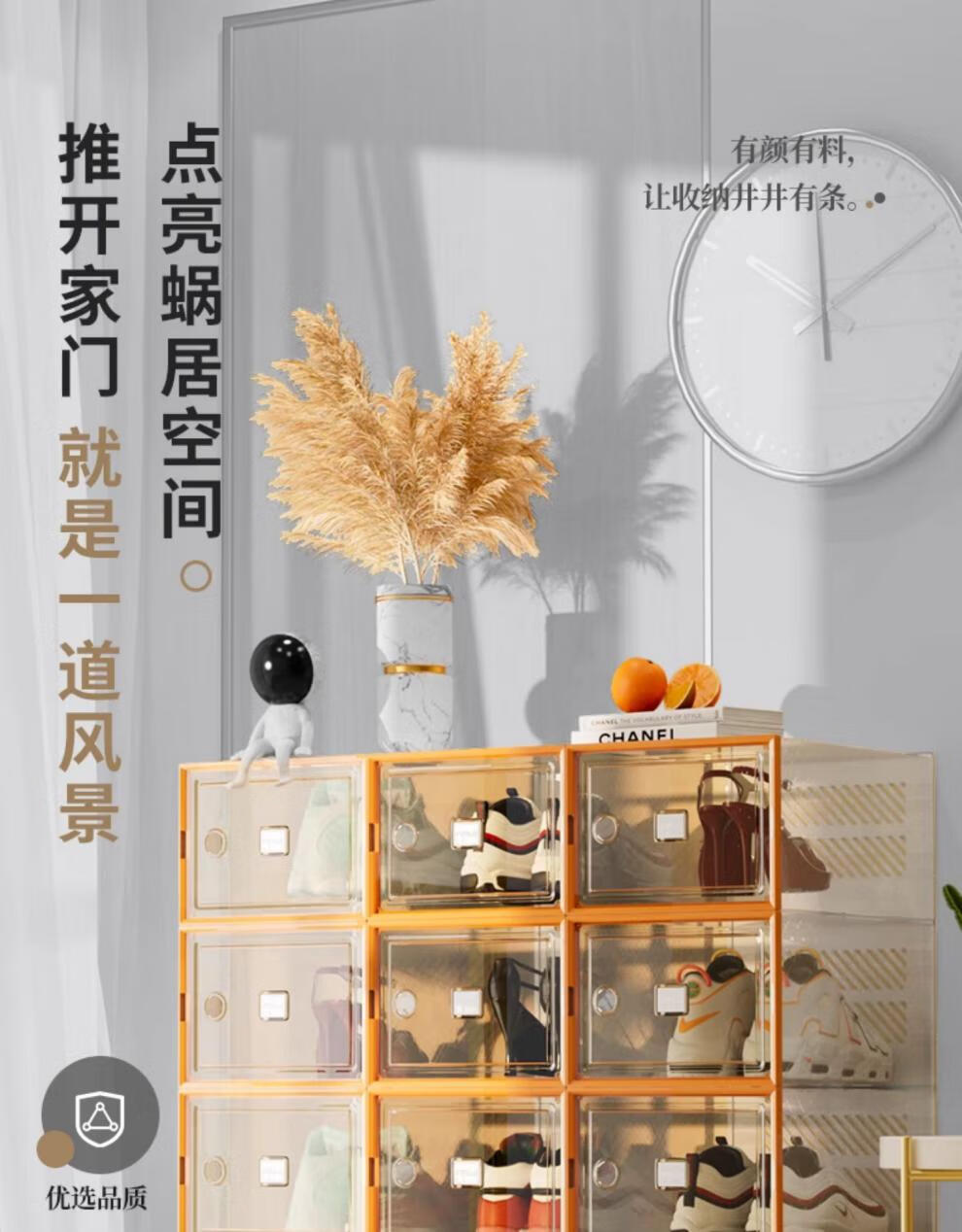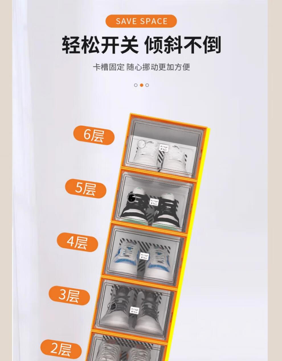 Shoebox (shoebox) shoe box storage box transparent shoe cabinet dormitory shoe artifact internet celebrity space-saving drawer folding sneaker plastic shoe rack high transparency model can hold 42 sizes small orange 32 pieces 0x0x0cm