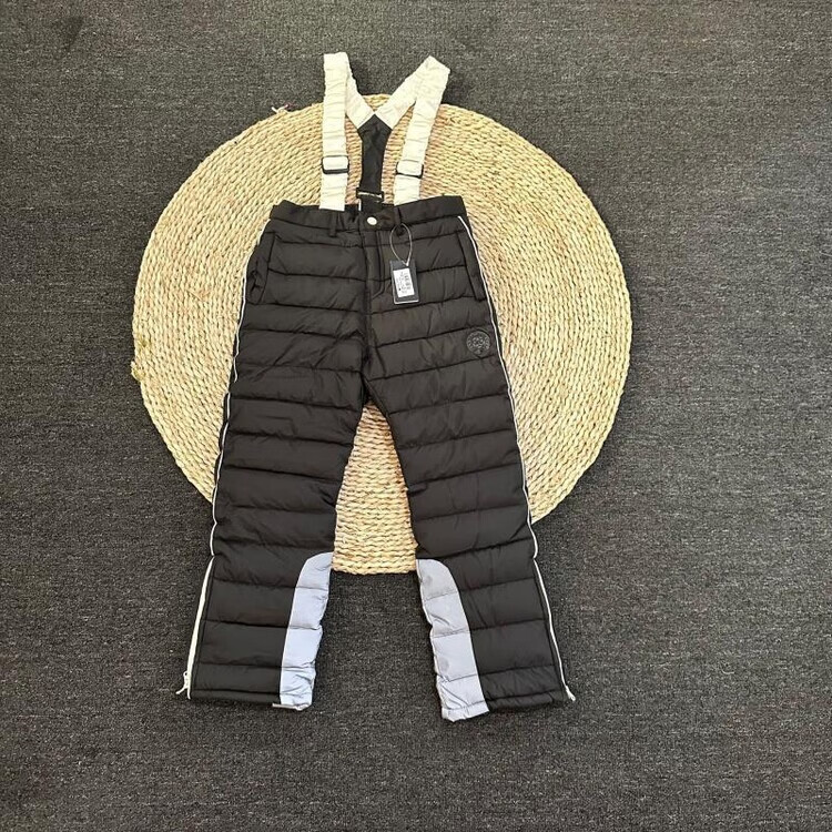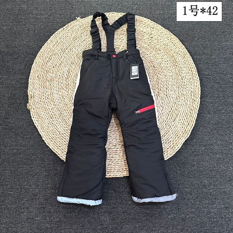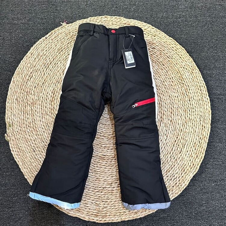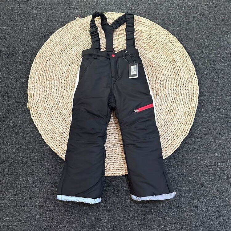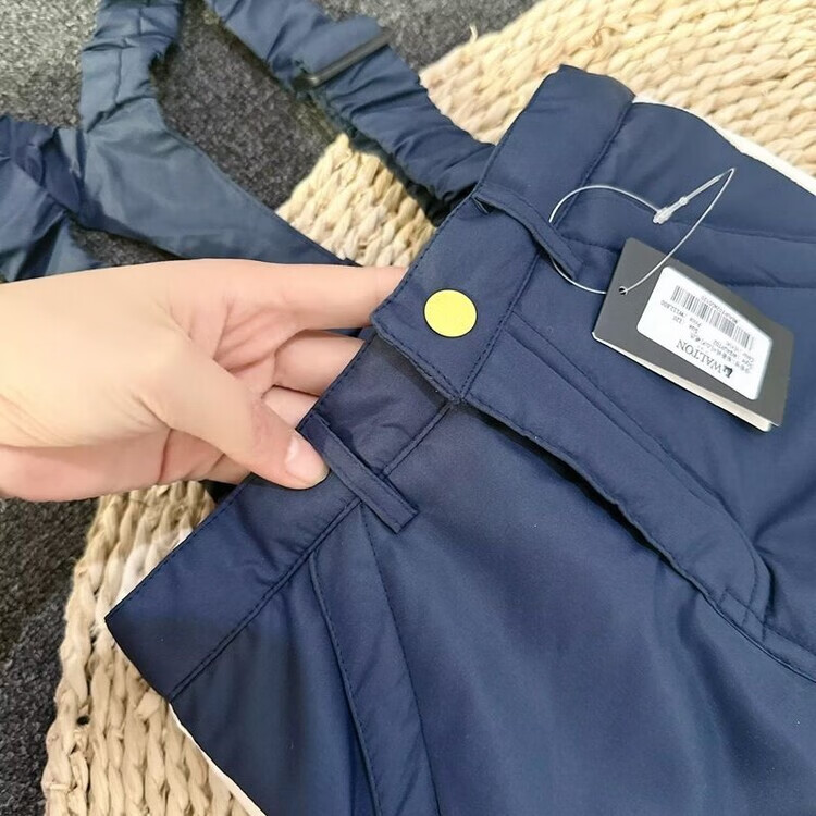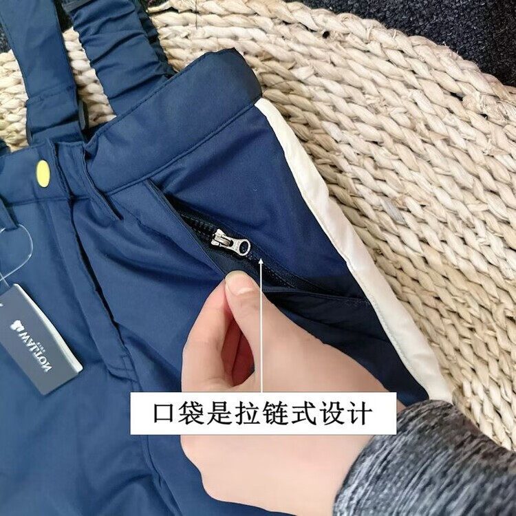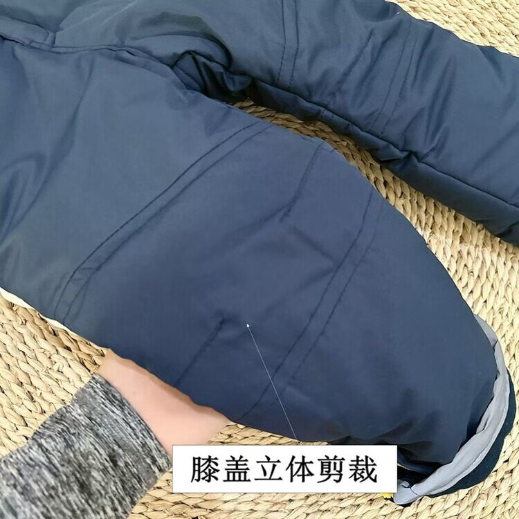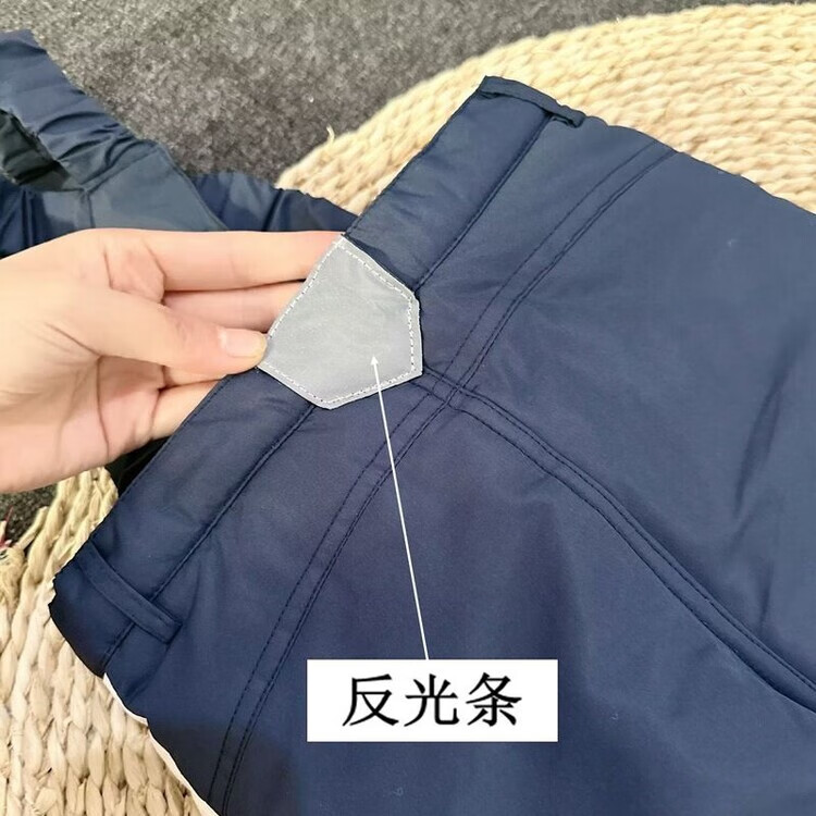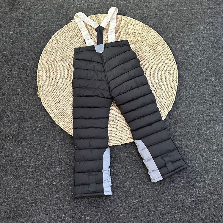 Autumn and winter children's outdoor thickened baby bag ski pants for small, medium and large children, boys' windproof and warm pants, navy blue with straps PT02, one size fits all 110