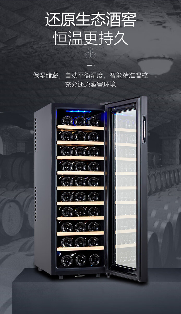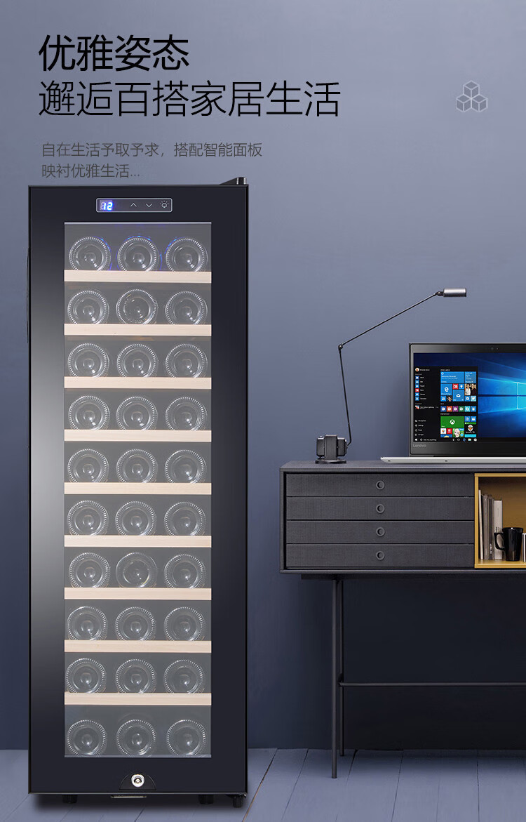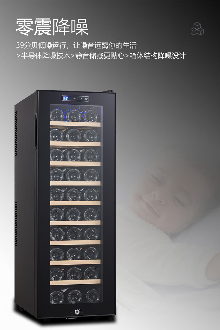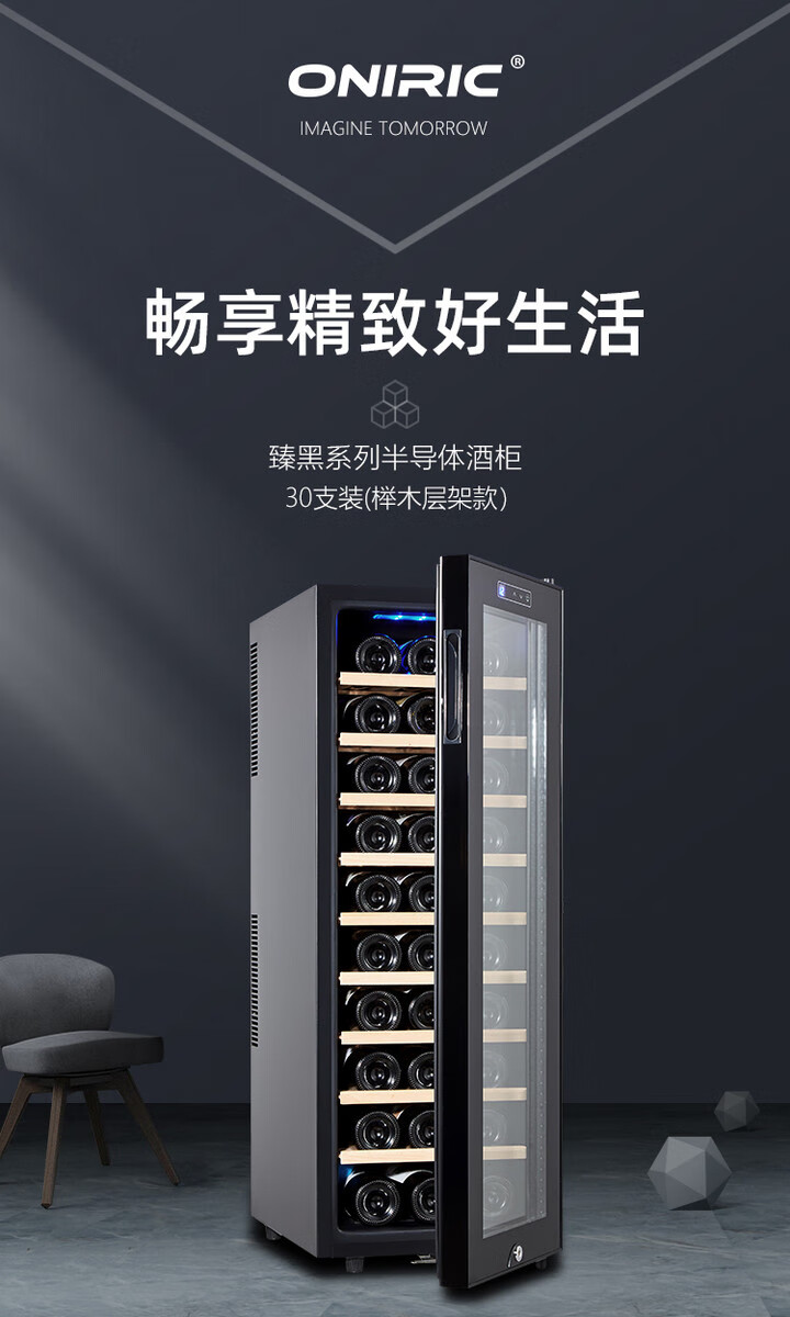 Oniric wine cabinet, home smart thermostatic refrigerator, solid wood shelf with lock, wine storage cabinet, black series, 30 pieces, metal lock