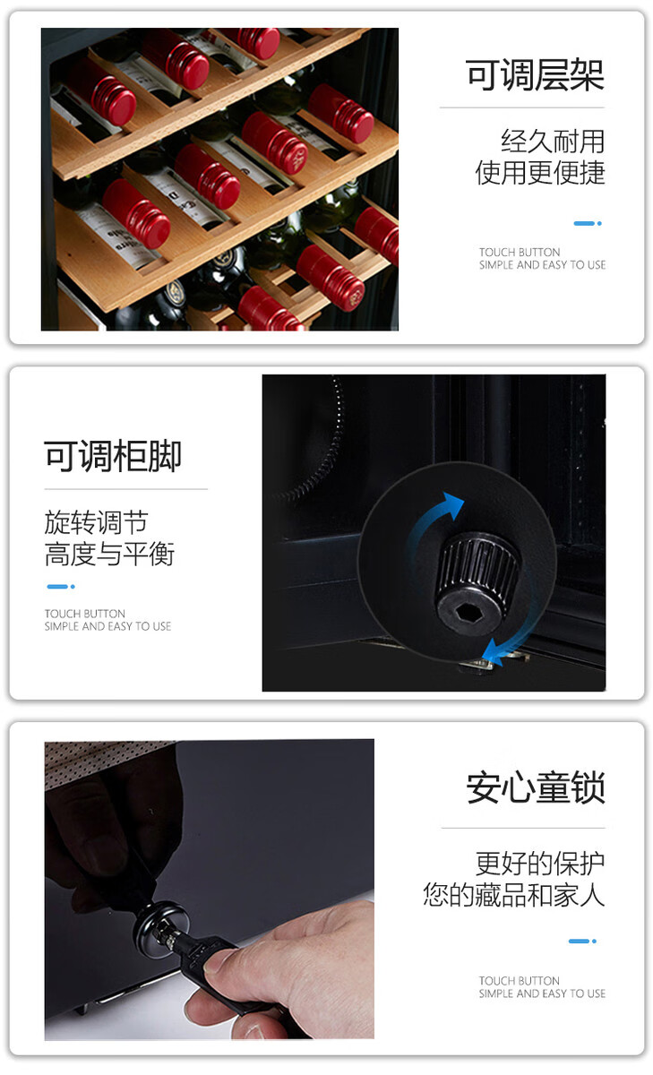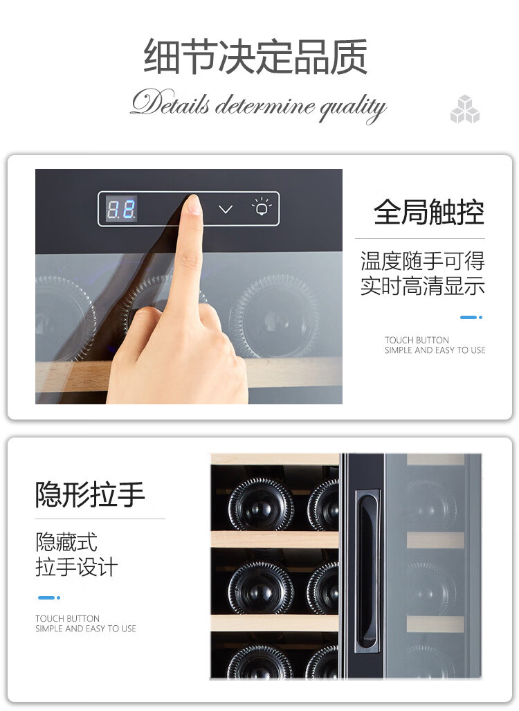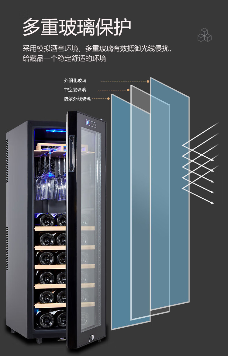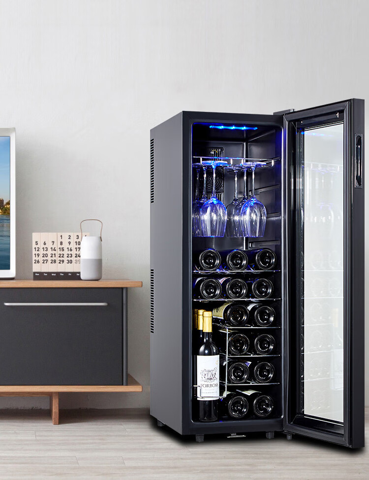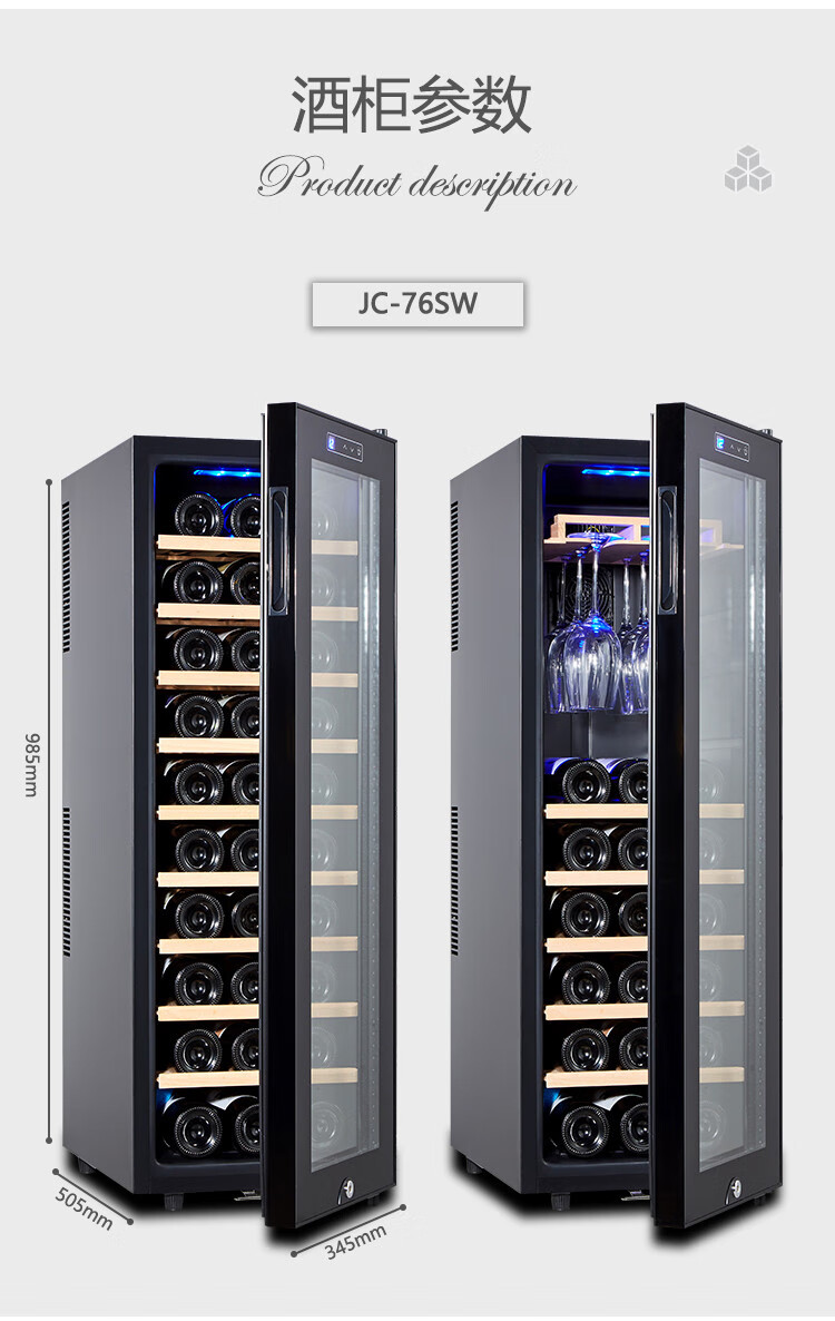 Oniric wine cabinet, home smart thermostatic refrigerator, solid wood shelf with lock, wine storage cabinet, black series, 30 pieces, metal lock