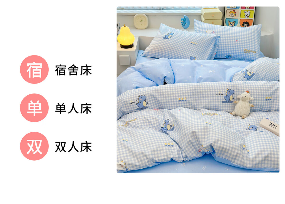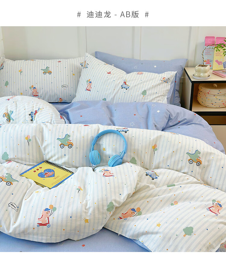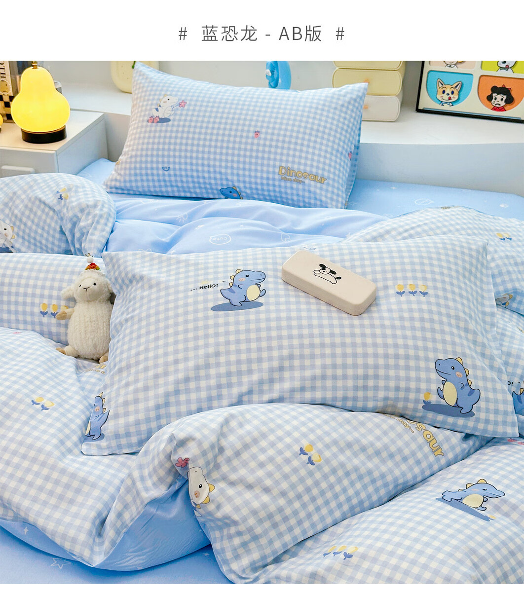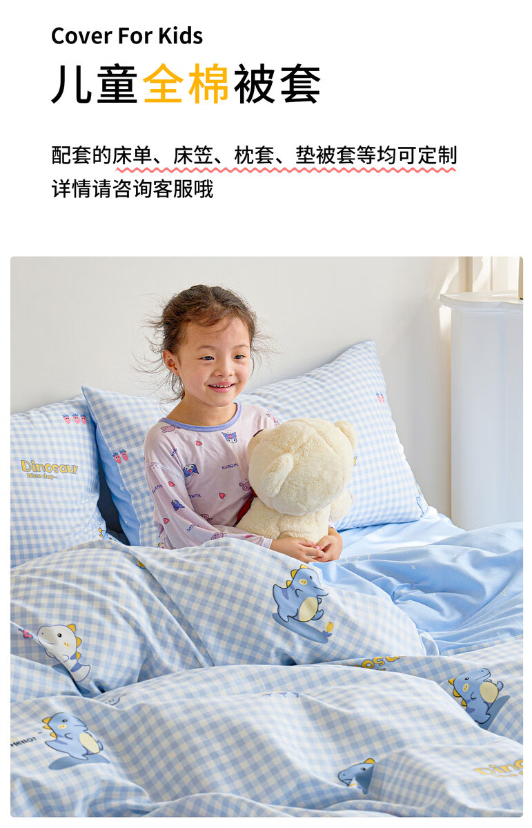 Yong Huan Customized Pure Cotton Children's Quilt Cover Single Piece Infant Kindergarten Three-piece Single Bed Boys and Girls Quilt Cover Blue Dinosaur Baby Single Quilt Cover 100X130cm