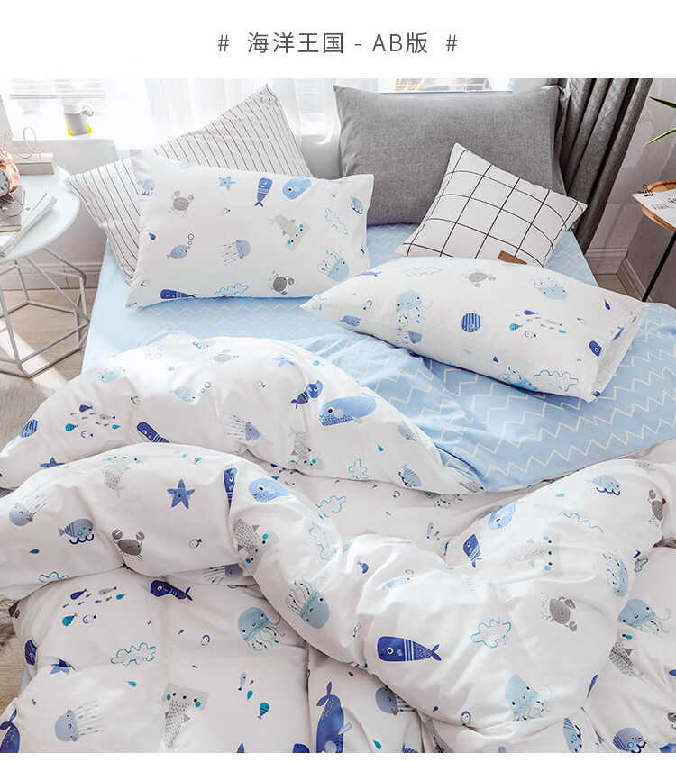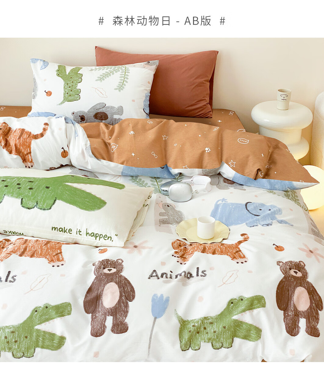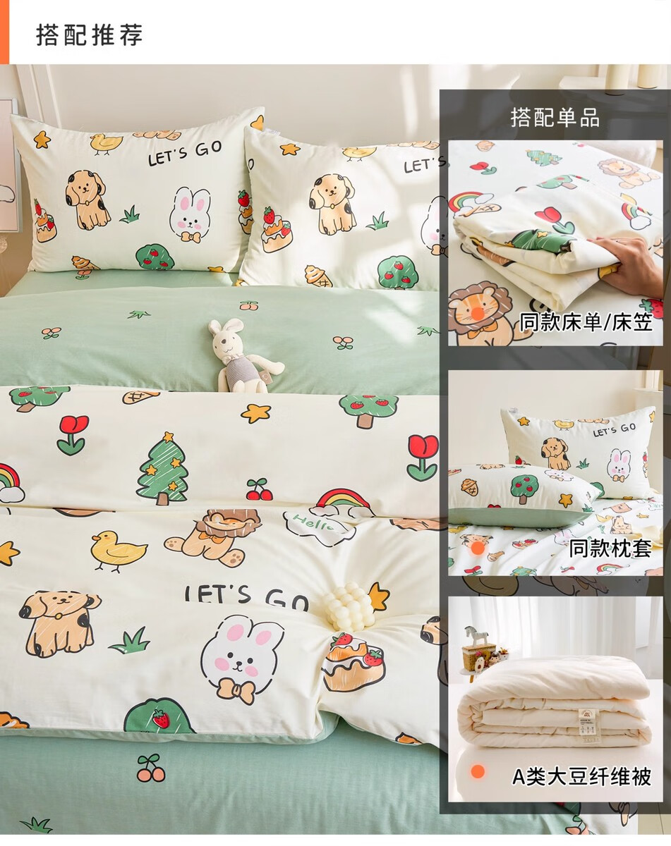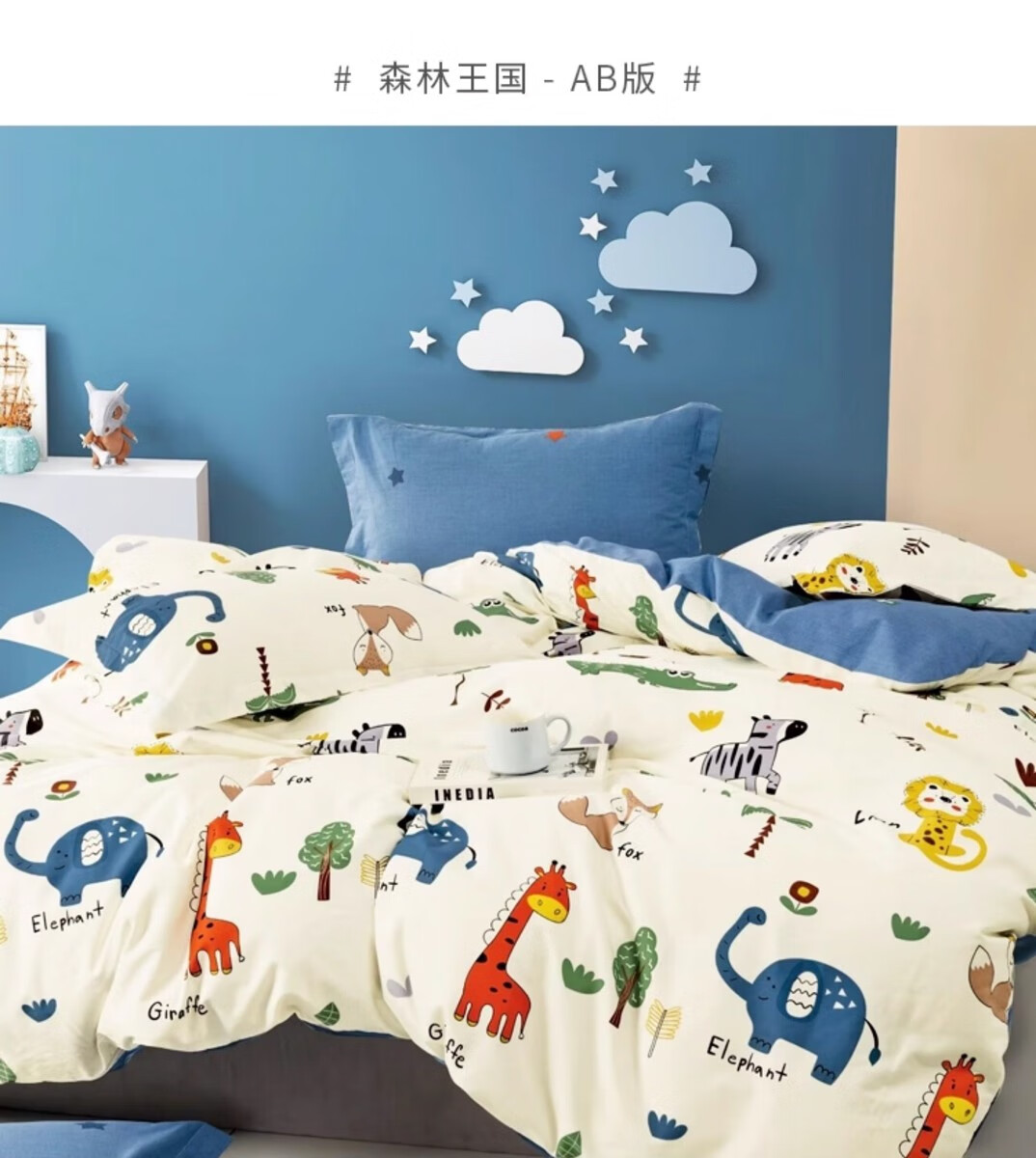 Yong Huan Customized Pure Cotton Children's Quilt Cover Single Piece Infant Kindergarten Three-piece Single Bed Boys and Girls Quilt Cover Blue Dinosaur Baby Single Quilt Cover 100X130cm
