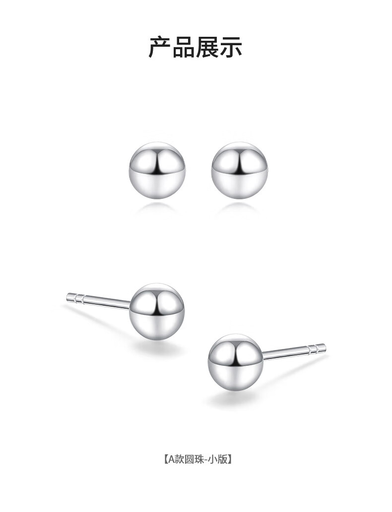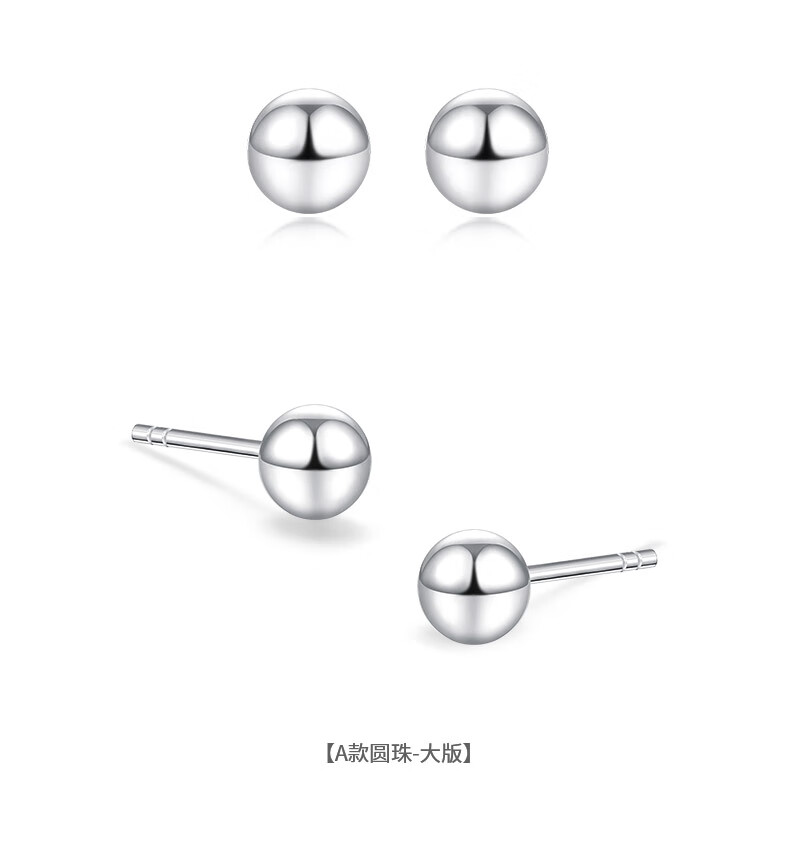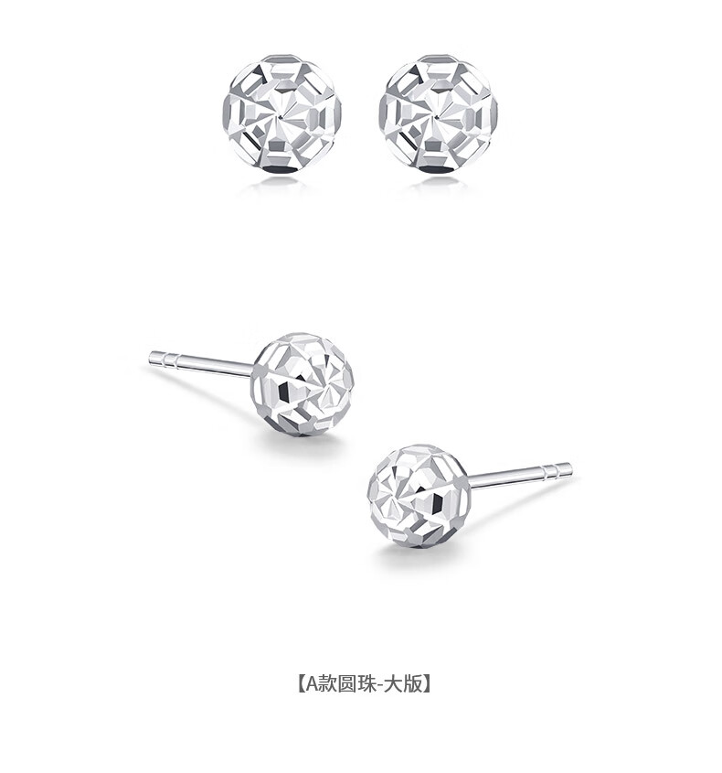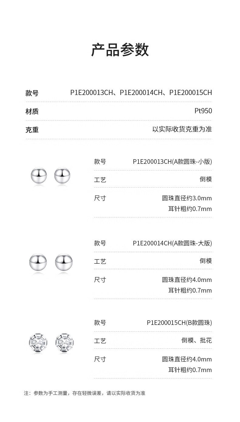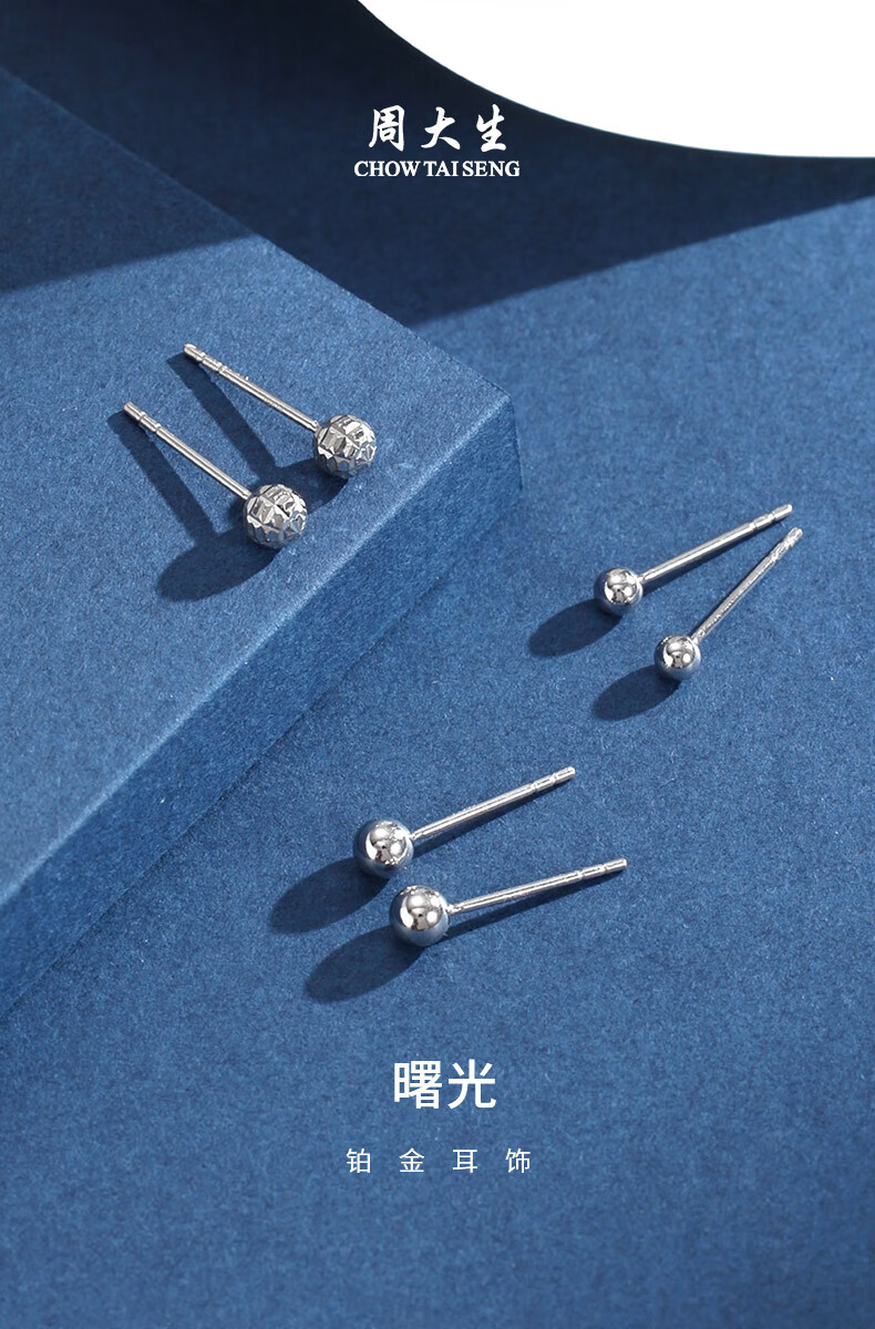 Zhou Taisheng Shuguang platinum earrings PT950 women's round bead type versatile earrings accessories as a birthday gift for your girlfriend A style round beads - small plate - 0.61g