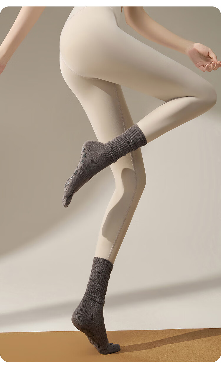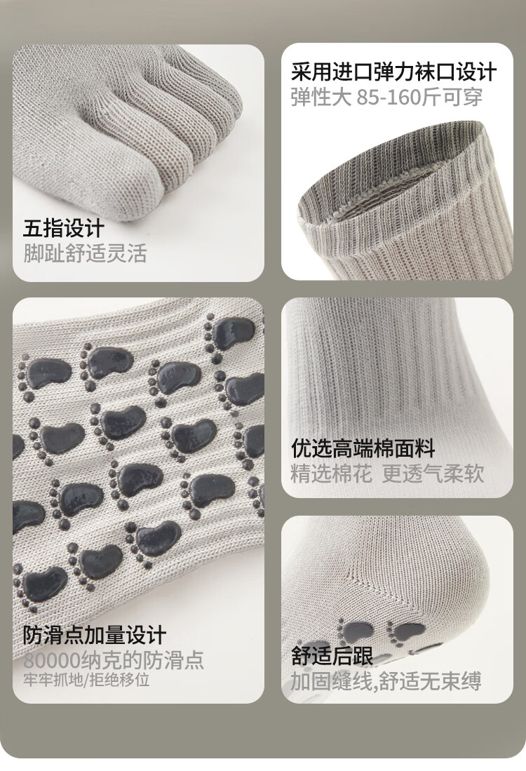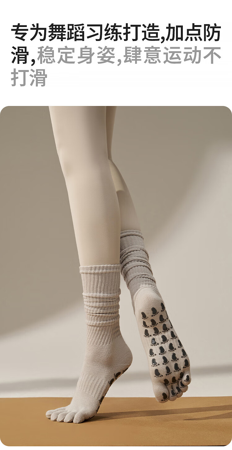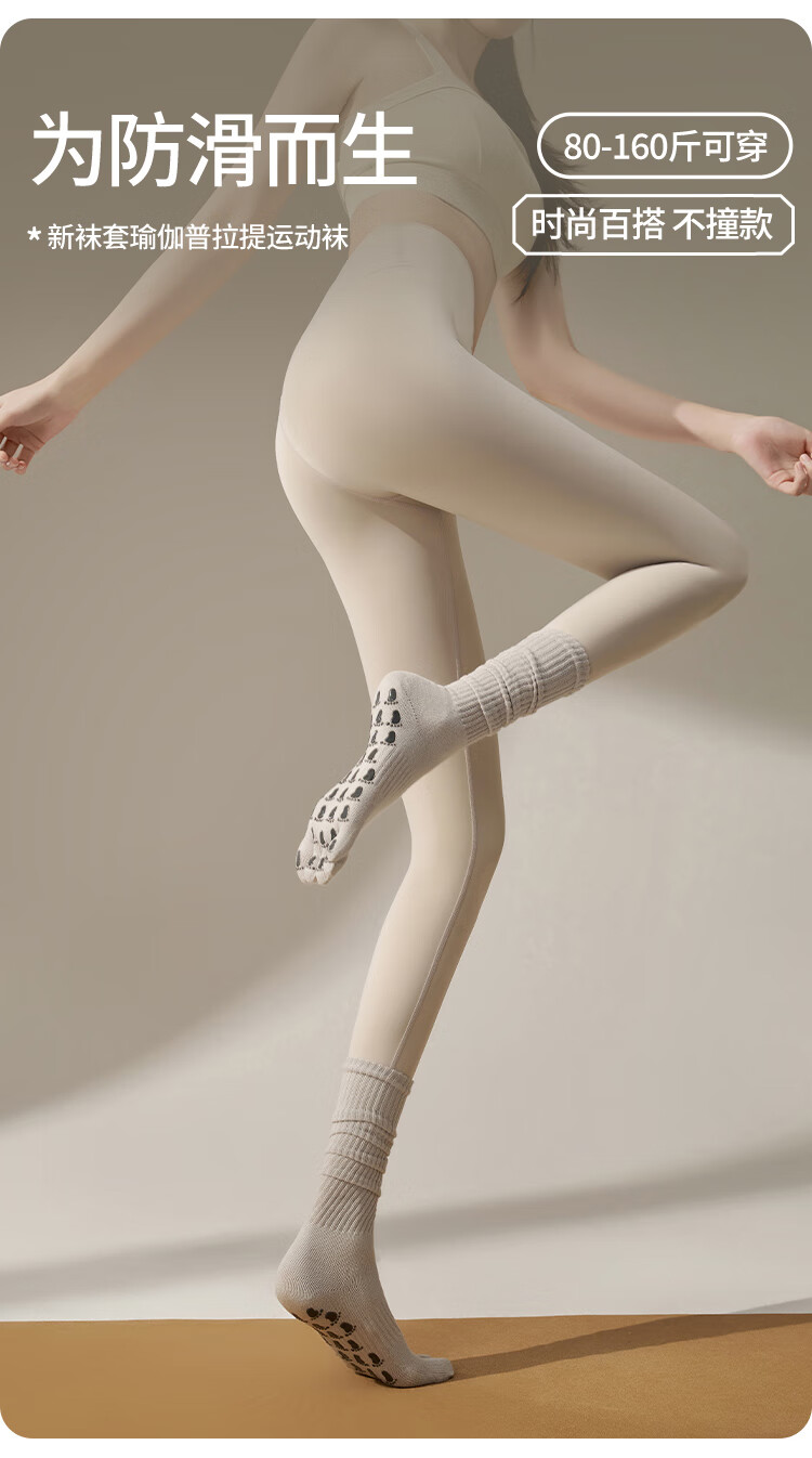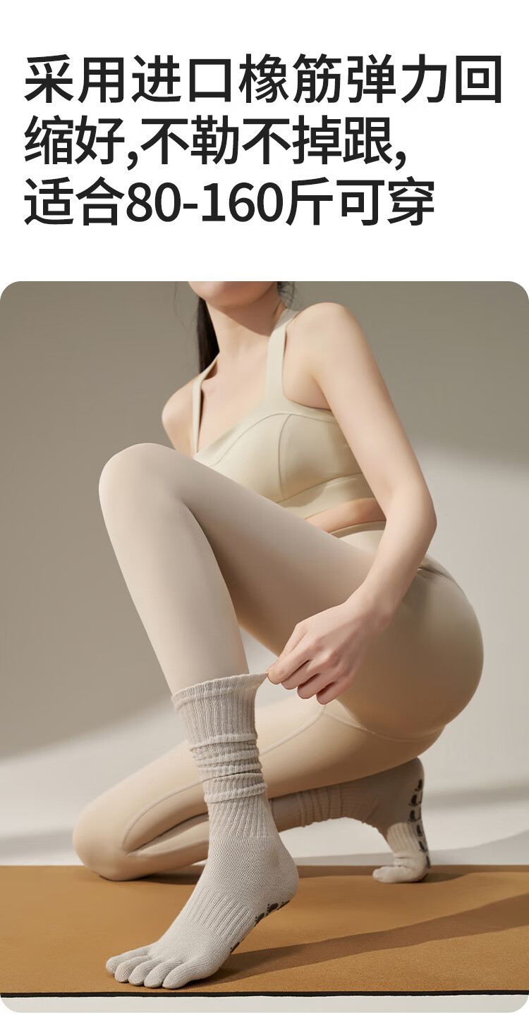 MIANCIYUAN Yoga Socks Women's Five Toe Socks Mid-Tube Pilates Fitness Calf Socks Anti-Slip Stockings Gray + Navy One Size 35-40 Imported Rubber Will Not Fall Off/Calf Shaping Stockings Versatile/Five