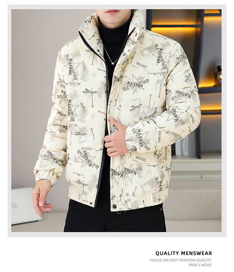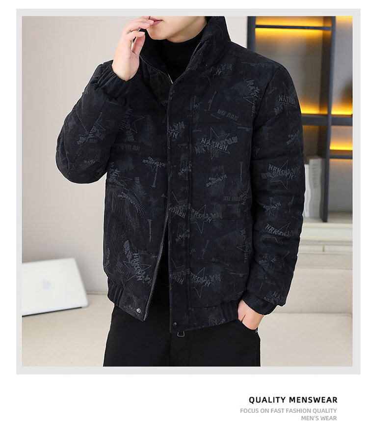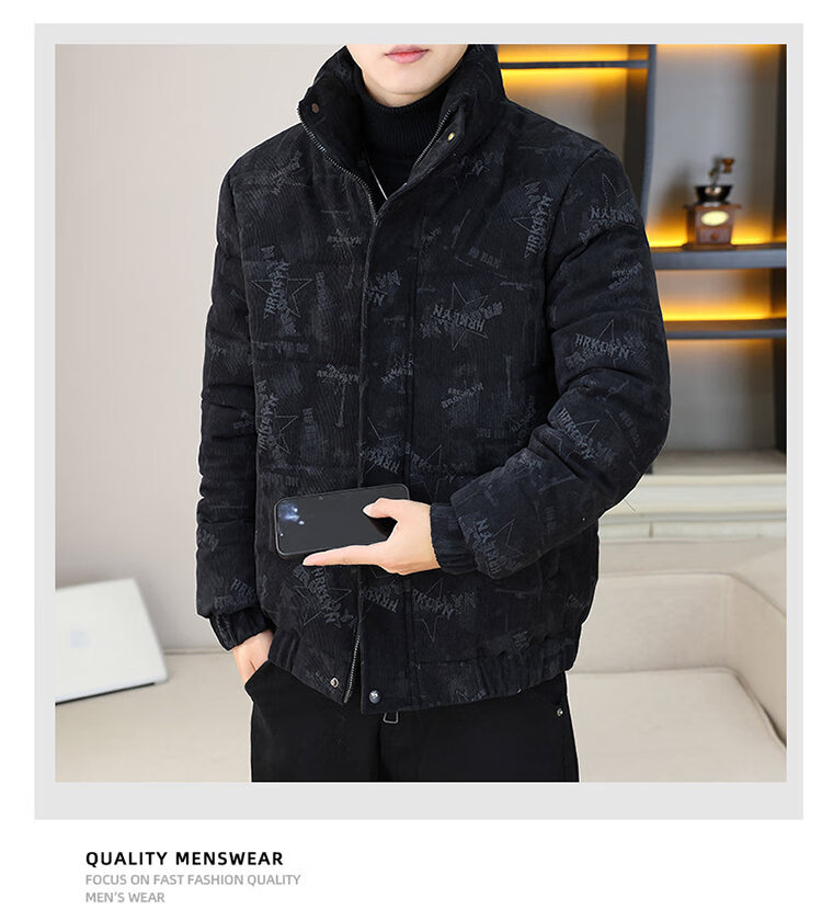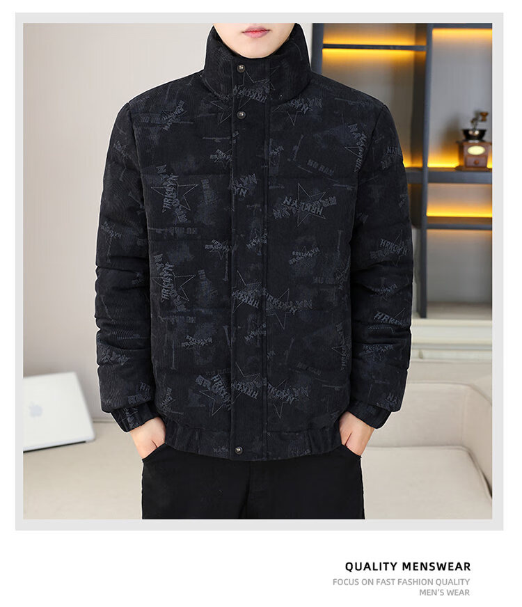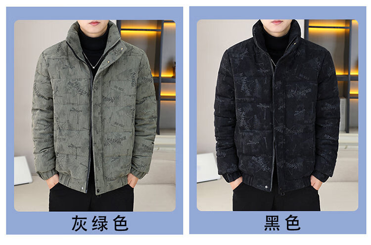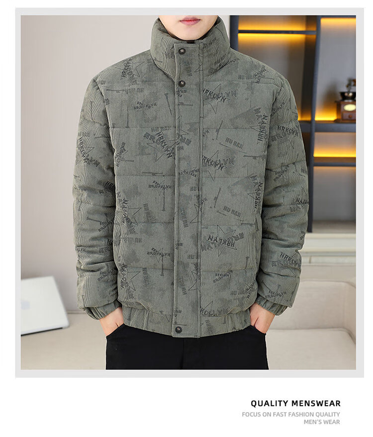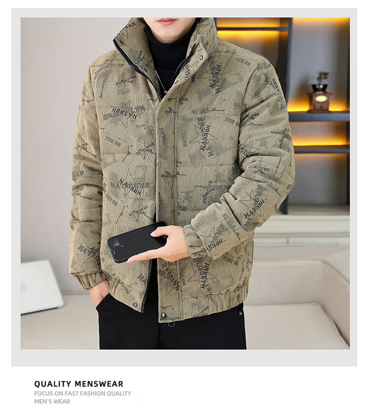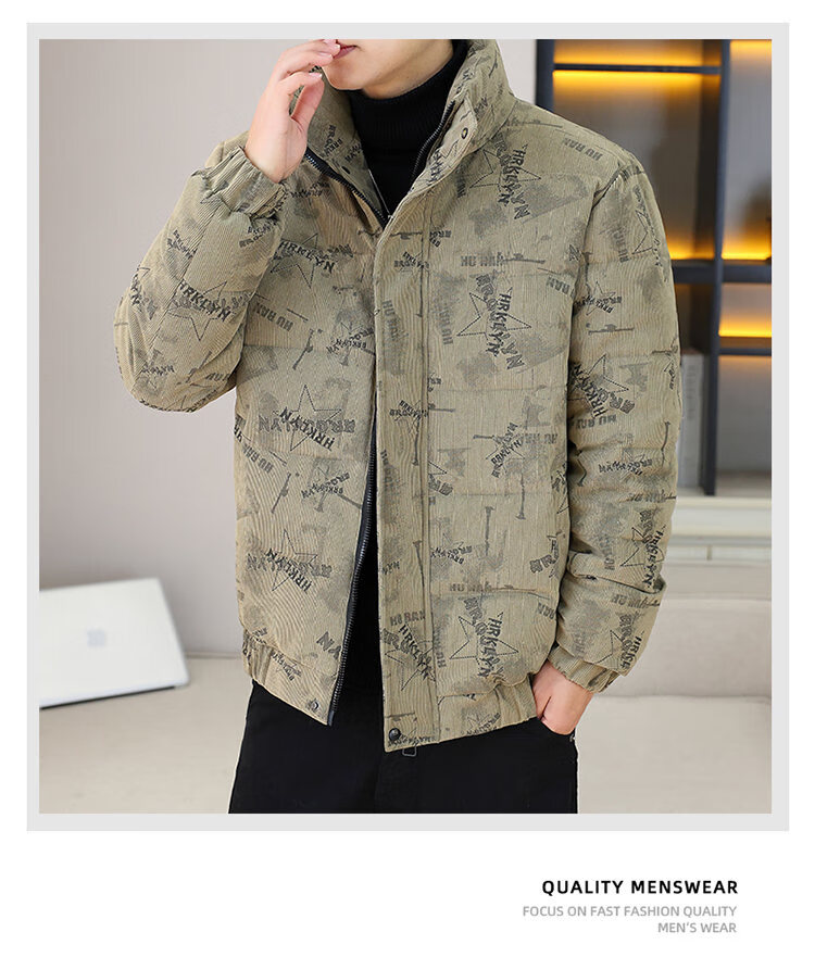 Cool Trendy Footprint Men's Winter New Warm Corduroy Cotton Clothes Thickened Cotton Clothes Casual Korean Trendy Cotton Jackets Stand Collar Jackets Men Khaki XL Recommended 115-130Jin Jin is equal to 0.5 kg