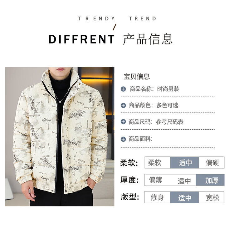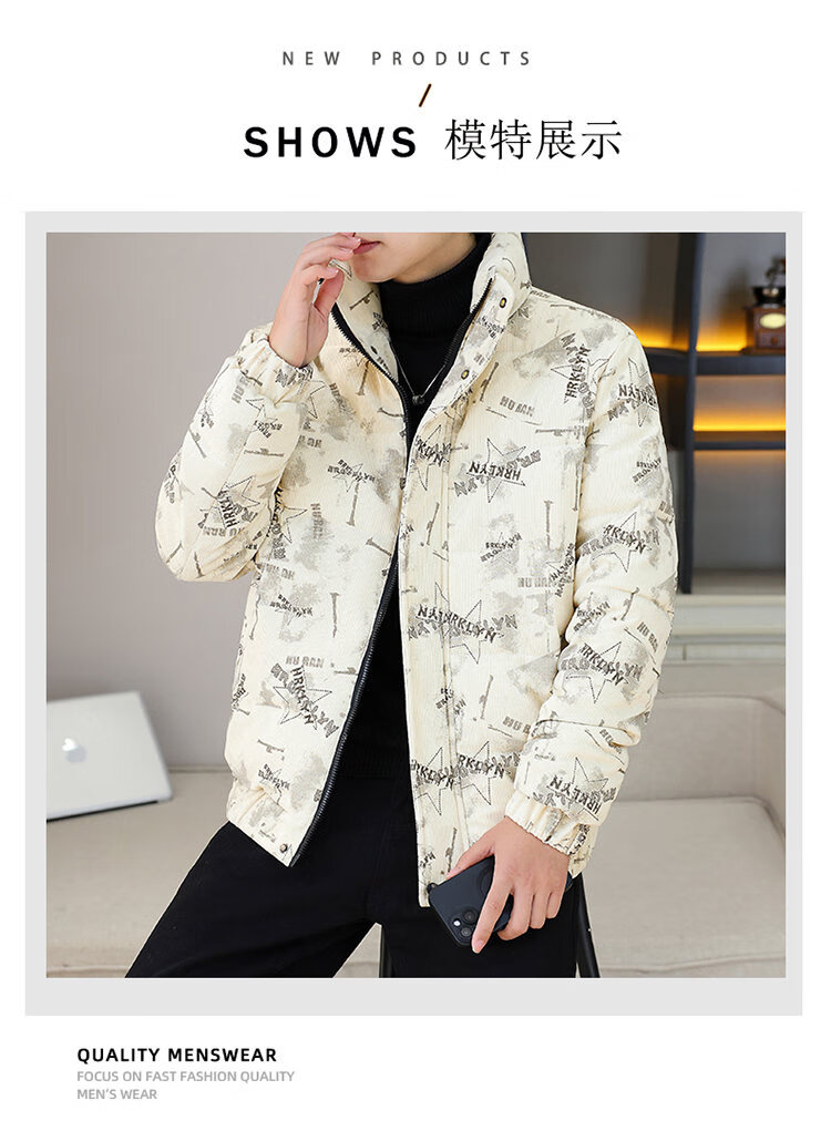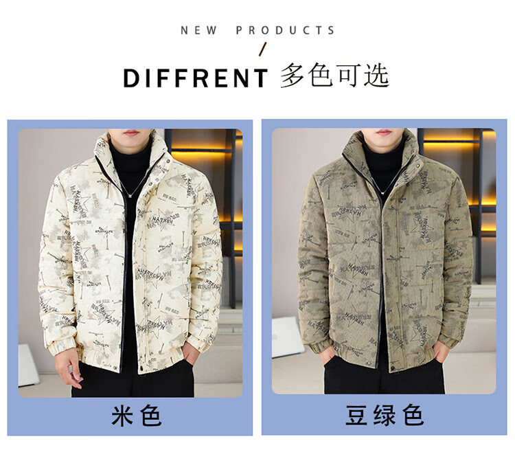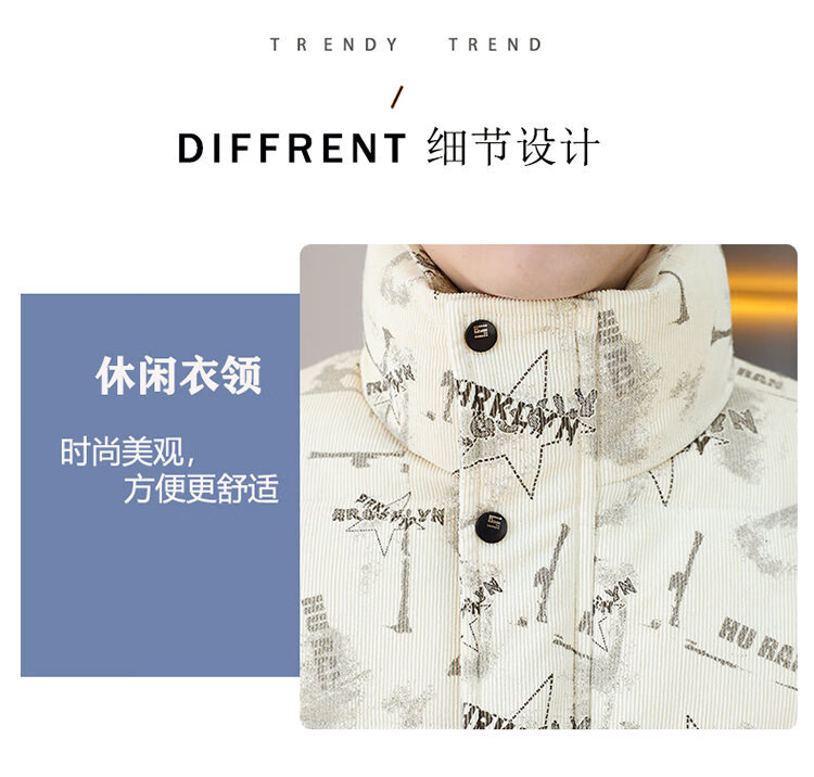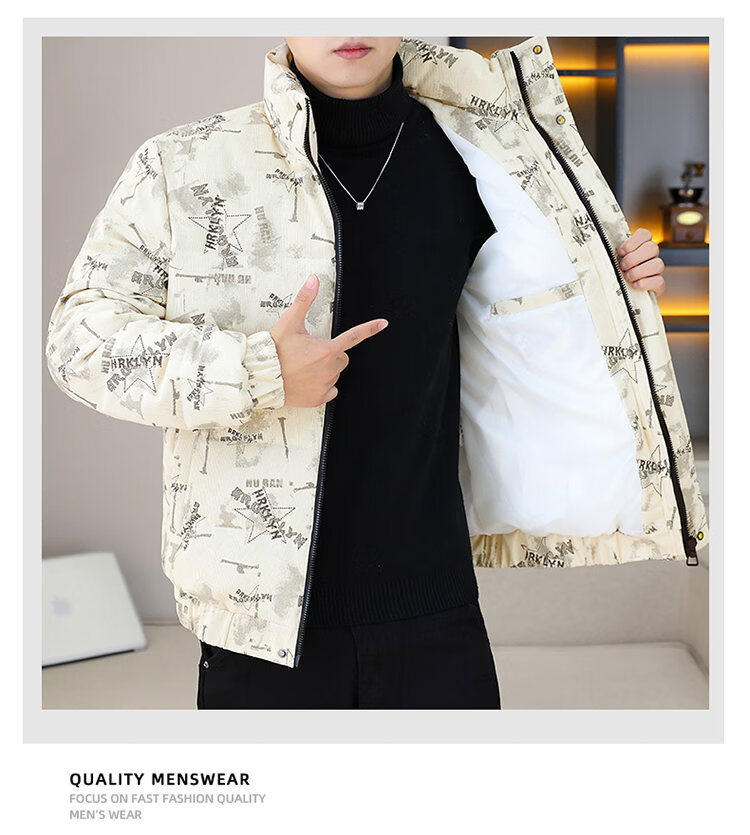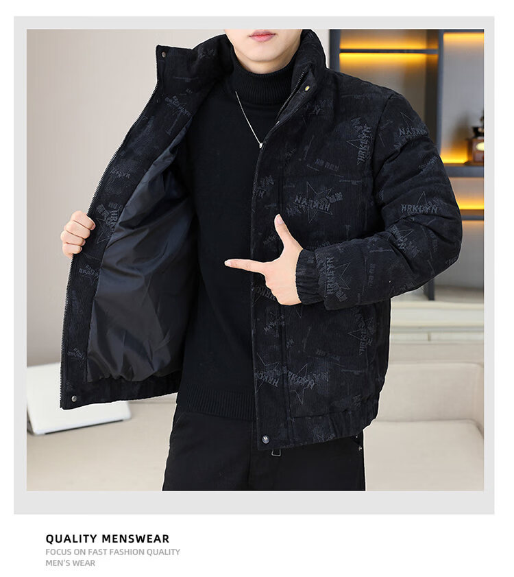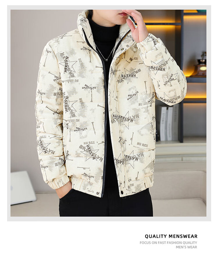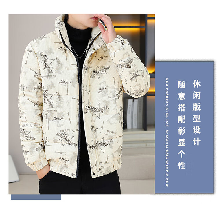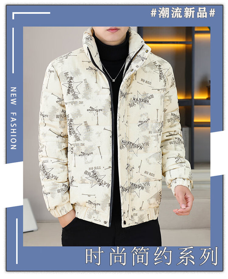 Cool Trendy Footprint Men's Winter New Warm Corduroy Cotton Clothes Thickened Cotton Clothes Casual Korean Trendy Cotton Jackets Stand Collar Jackets Men Khaki XL Recommended 115-130Jin Jin is equal to 0.5 kg