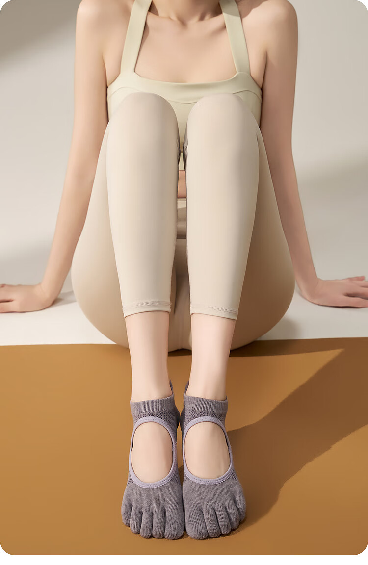 MIANCIYUAN Pilates socks non-slip women's ballet series five-finger socks indoor sports strap yoga socks moonlight white one size fits all 35-40 imported rubber does not fall off/five-finger flexible and breathable