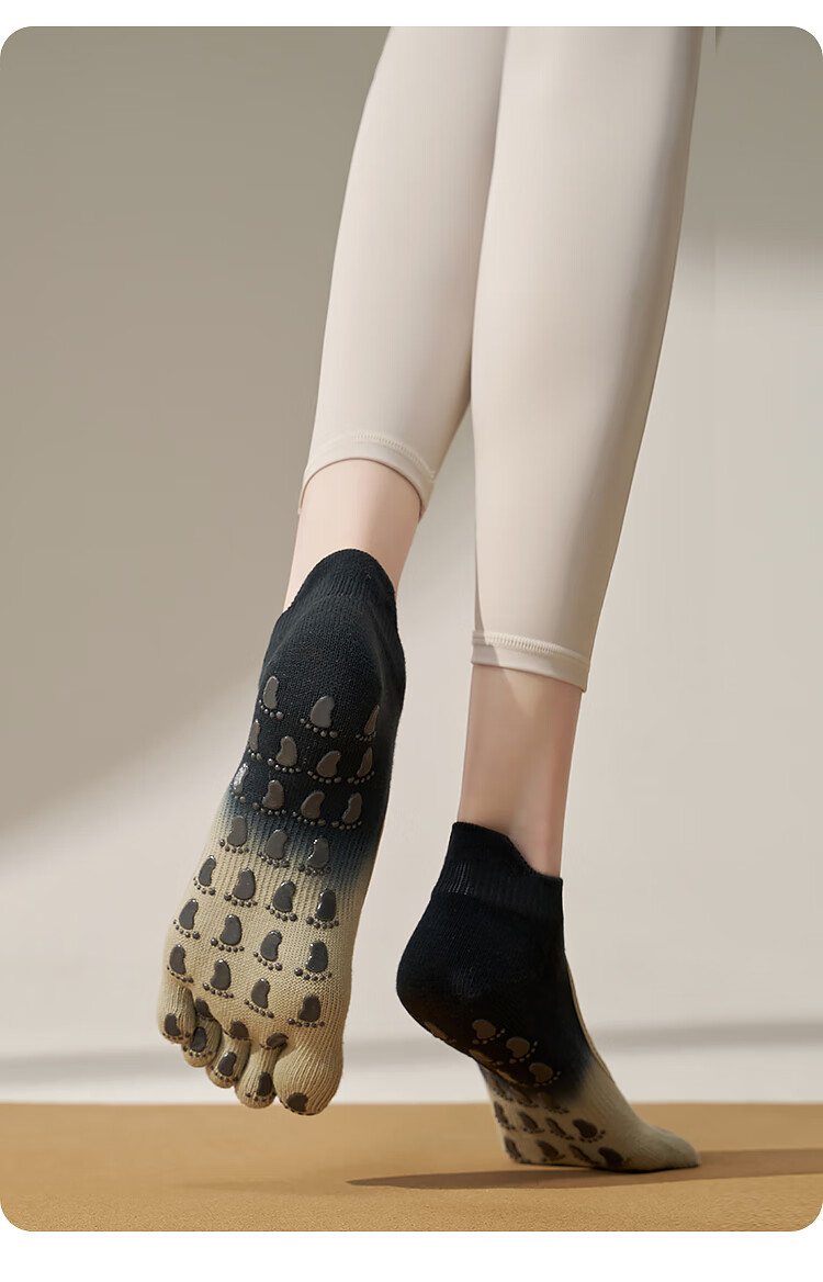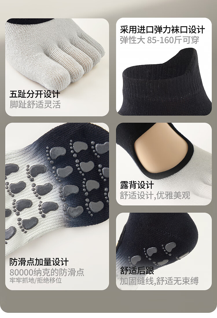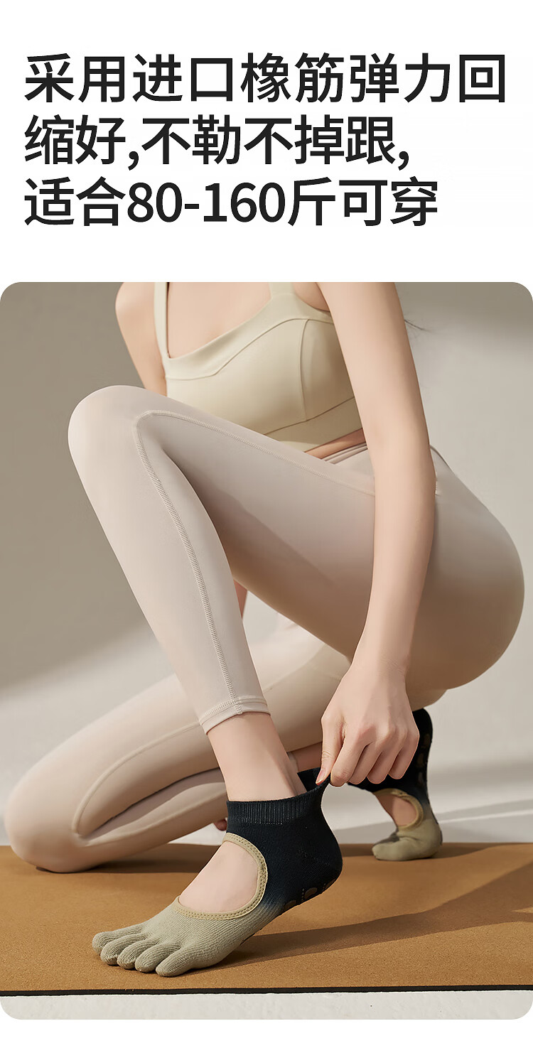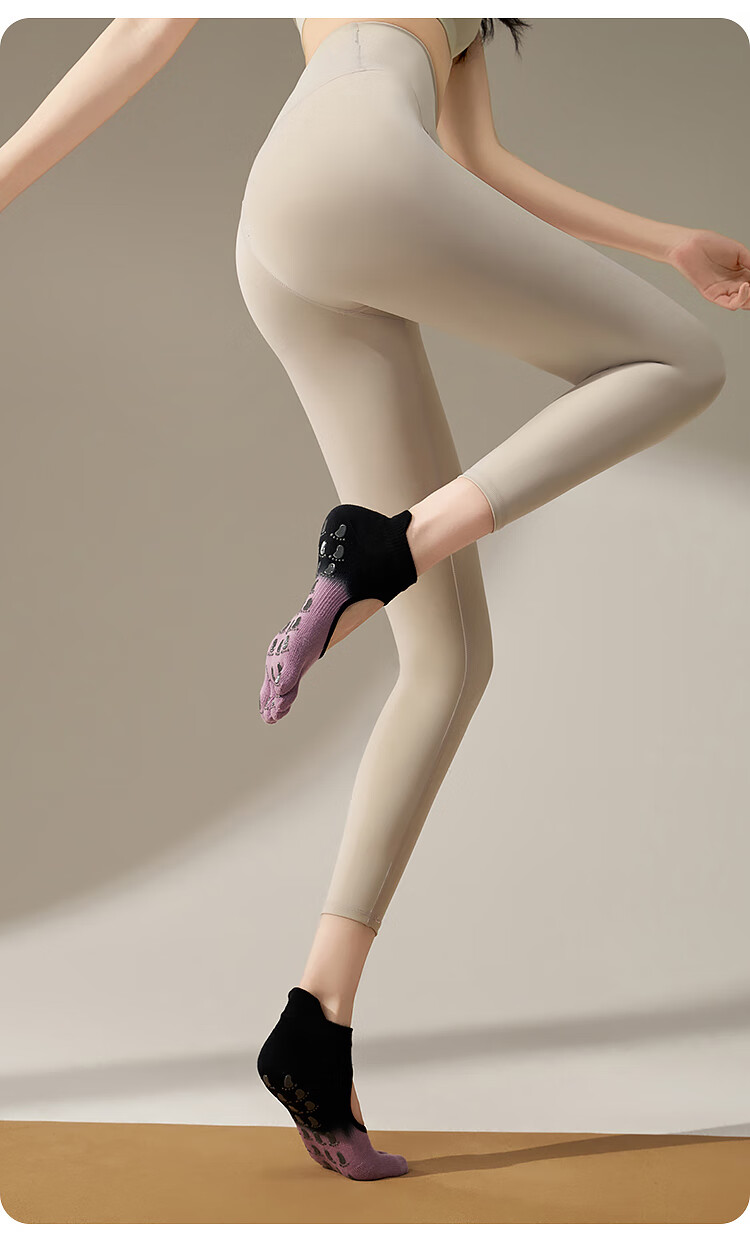 Mianciyuan (MIANCIYUAN) yoga socks for women, backless Pilates five-finger socks, summer split-toe fitness sports non-slip boat socks, light luxury black and purple, one size fits all 35-40, imported rubber that does not fall off/full sole silicone anti-slip/fabric