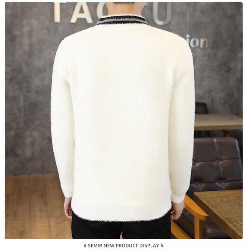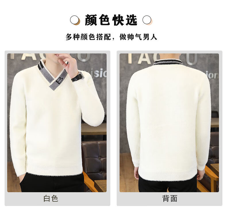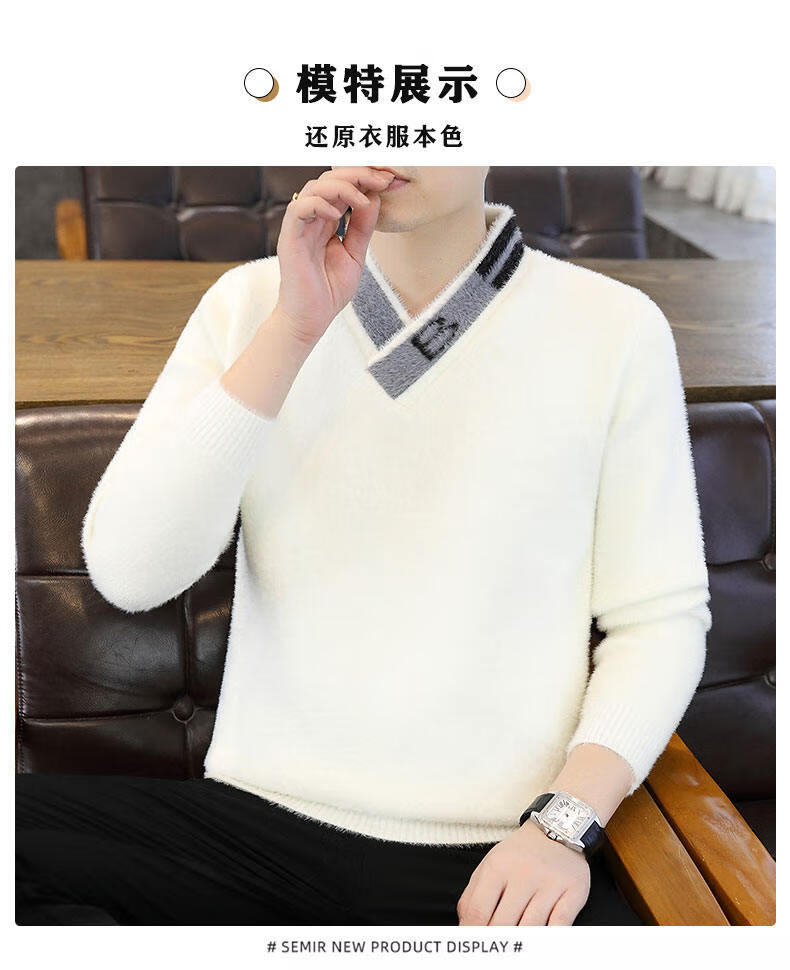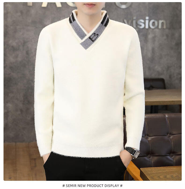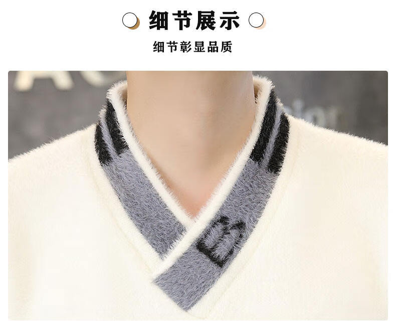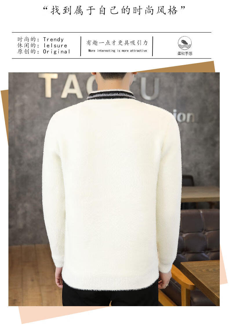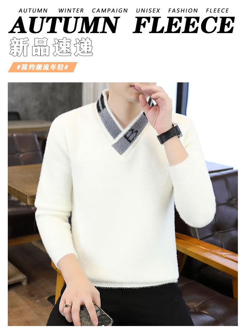 Jacket sweater men's velvet thickened winter warm sweater Korean style men's imitation mink velvet Henry collar bottoming shirt top 24014 white M recommended 80-100Jin Jin equals 0.5 kg