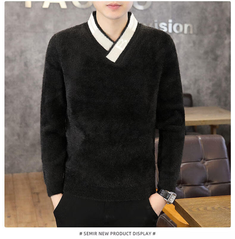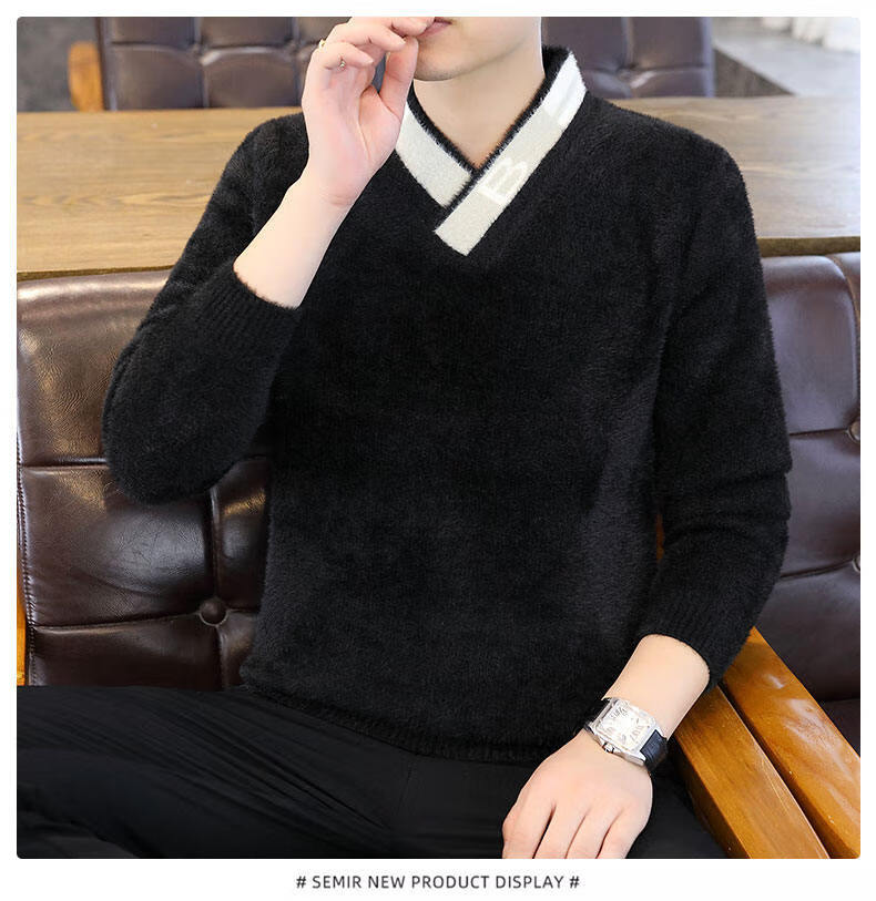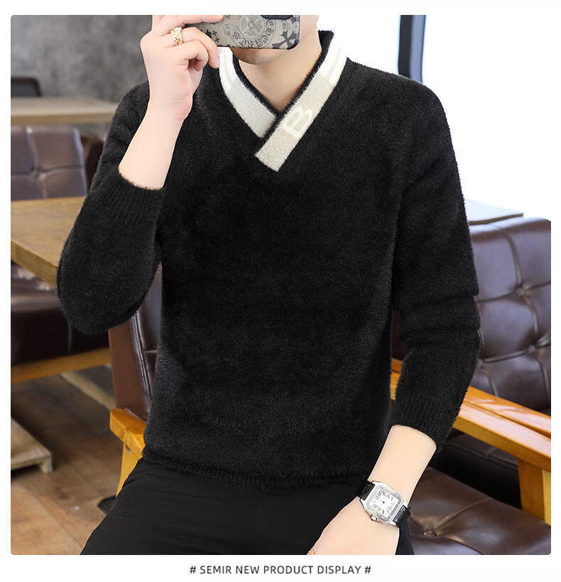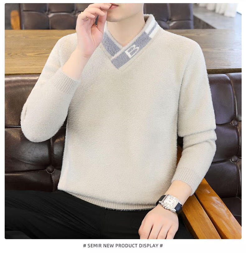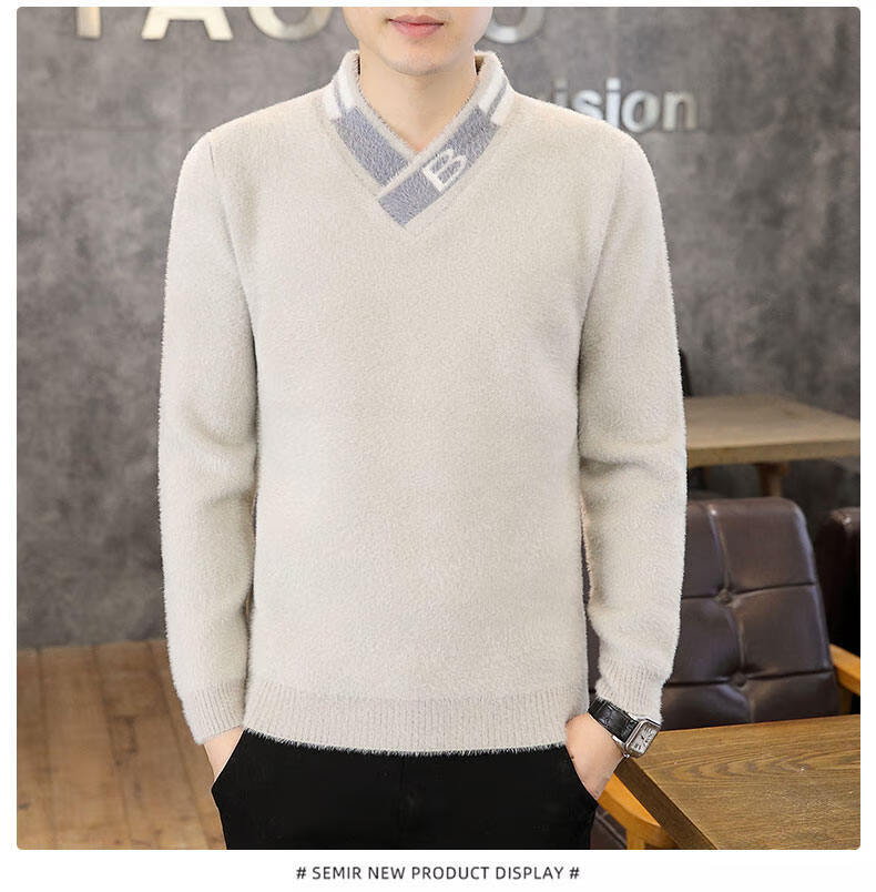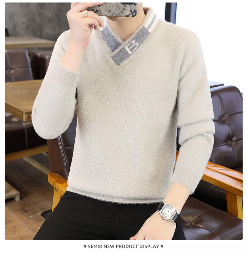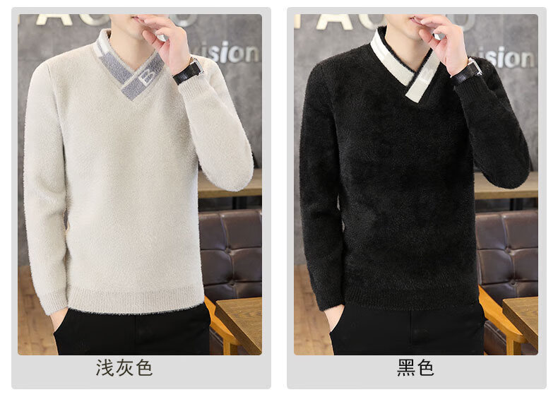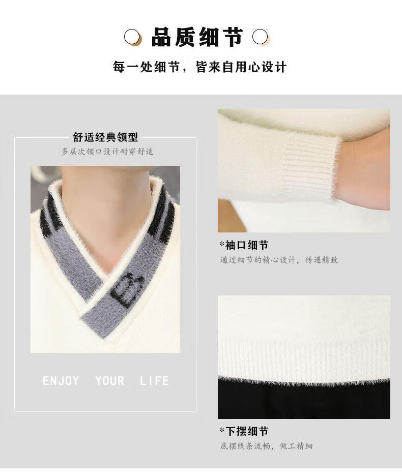 Jacket sweater men's velvet thickened winter warm sweater Korean style men's imitation mink velvet Henry collar bottoming shirt top 24014 white M recommended 80-100Jin Jin equals 0.5 kg