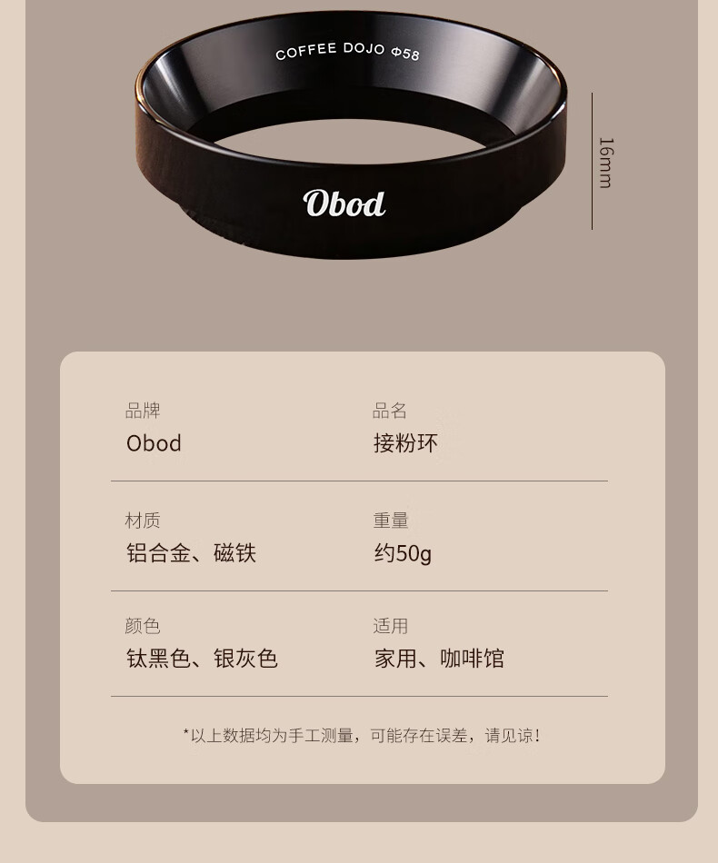 OBOD coffee powder catcher ring 58mm with magnetic cloth powder ring Italian coffee machine handle powder catcher grinder bean anti-flying powder ring 58mm silver gray (magnetic suction)
