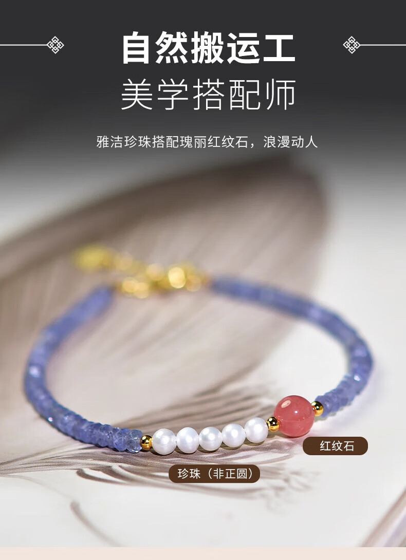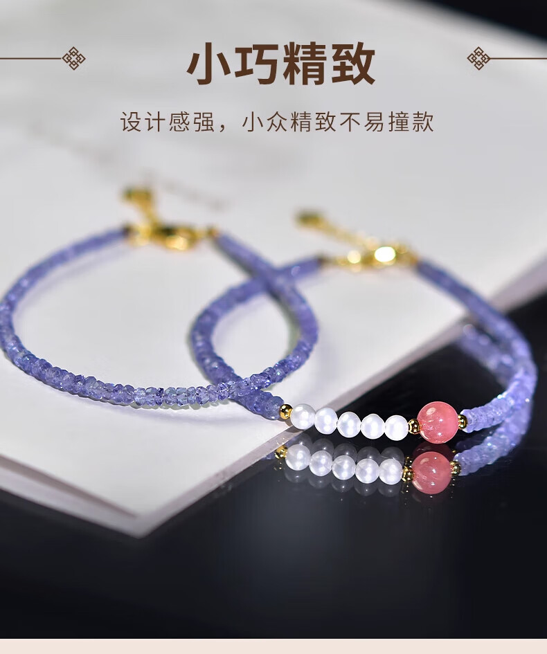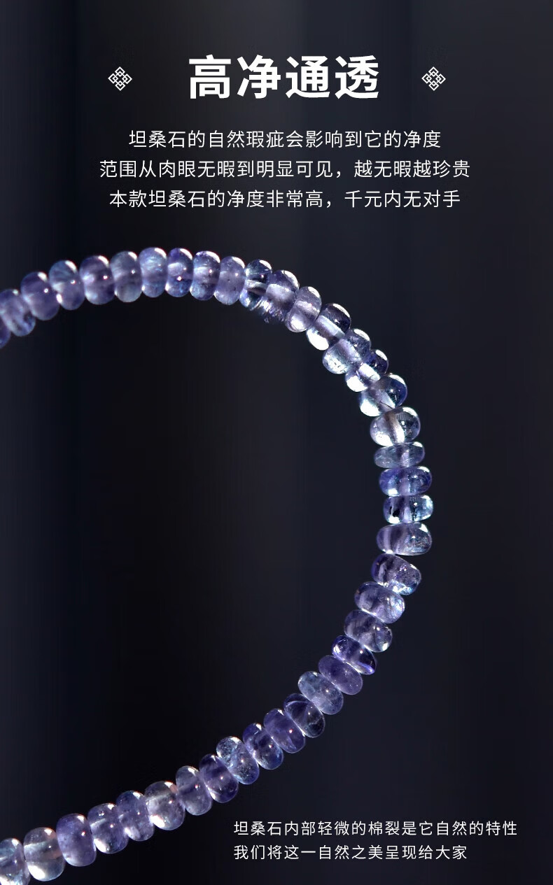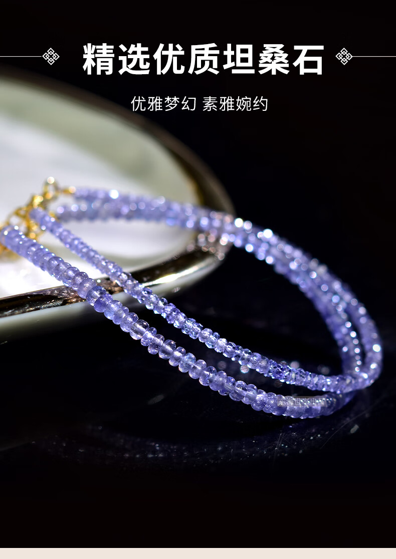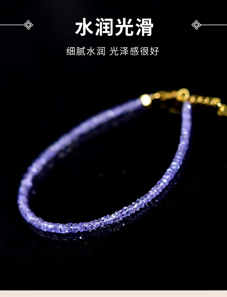 Fat Donglai same style tanzanite bracelet for men and women East China Sea crystal agate jade jade blue gemstone loose beads engraved faceted 925 silver bow style about 3mm