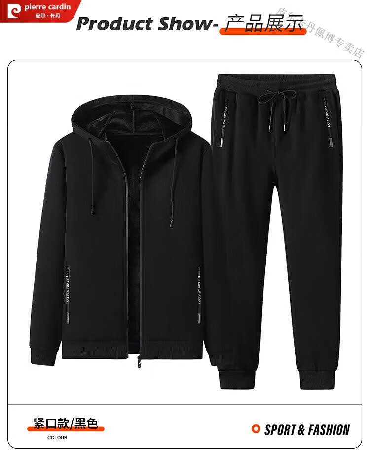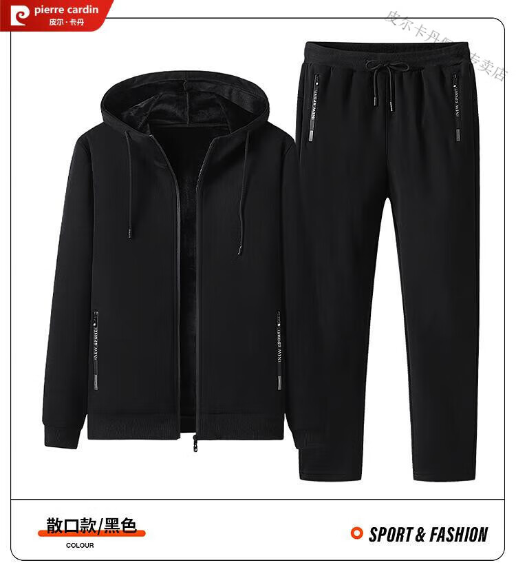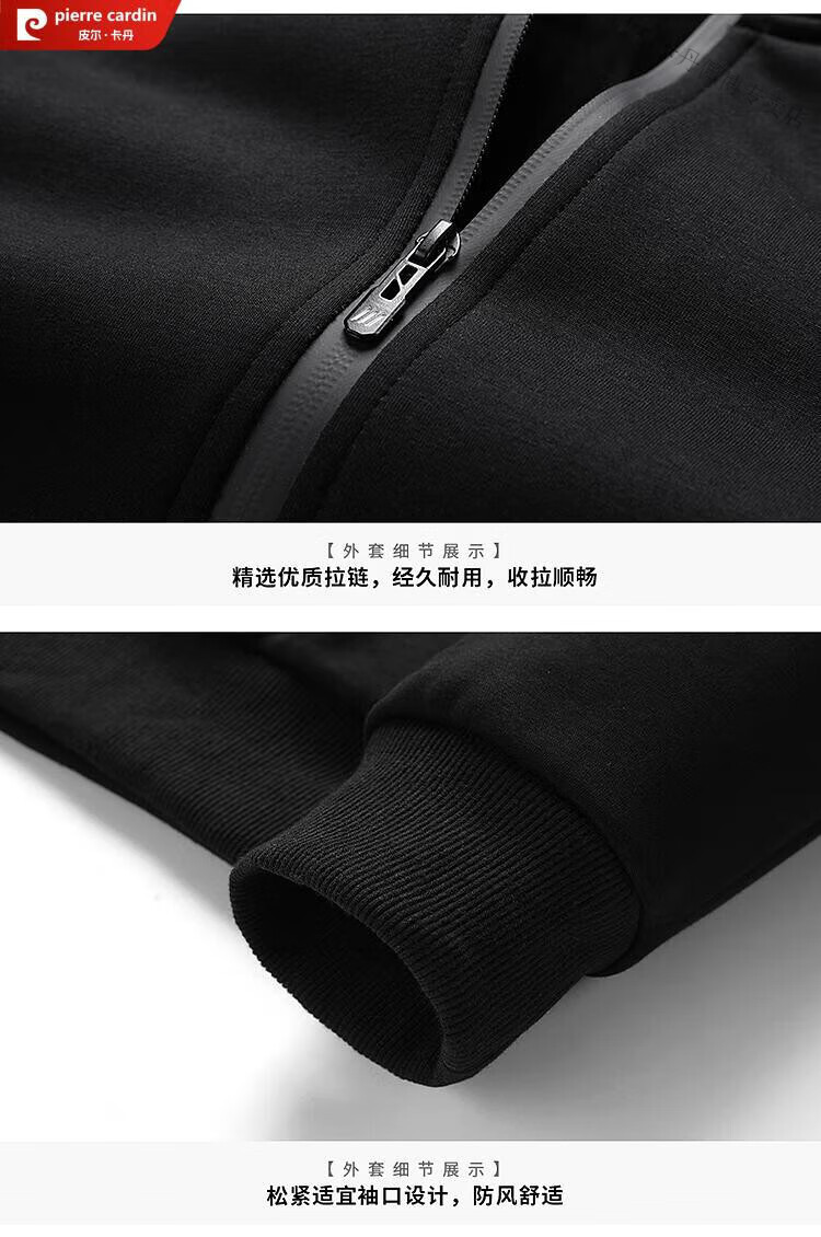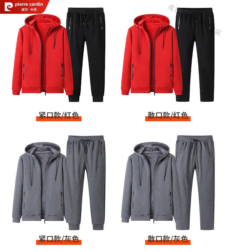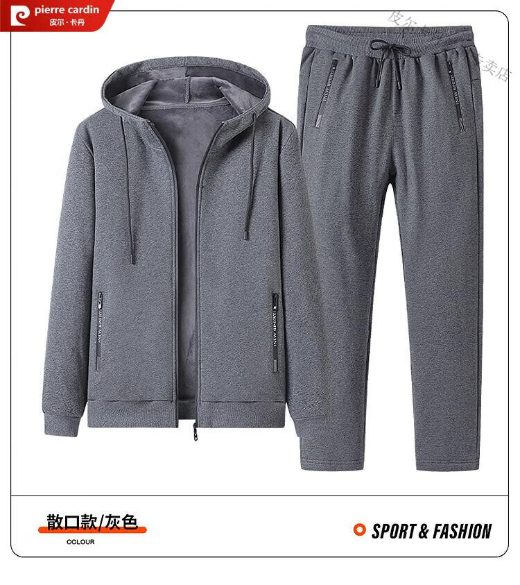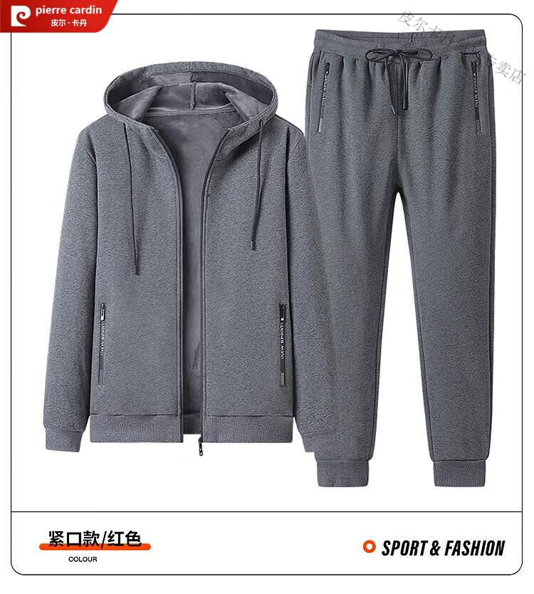 Pierre Cardin pure cotton sports suit men's autumn and winter velvet thickened hooded cardigan sweatshirt large size loose running two-piece set 5855 dark gray plus plush leg set XL 125-140Jin Jin equals 0.5 kg