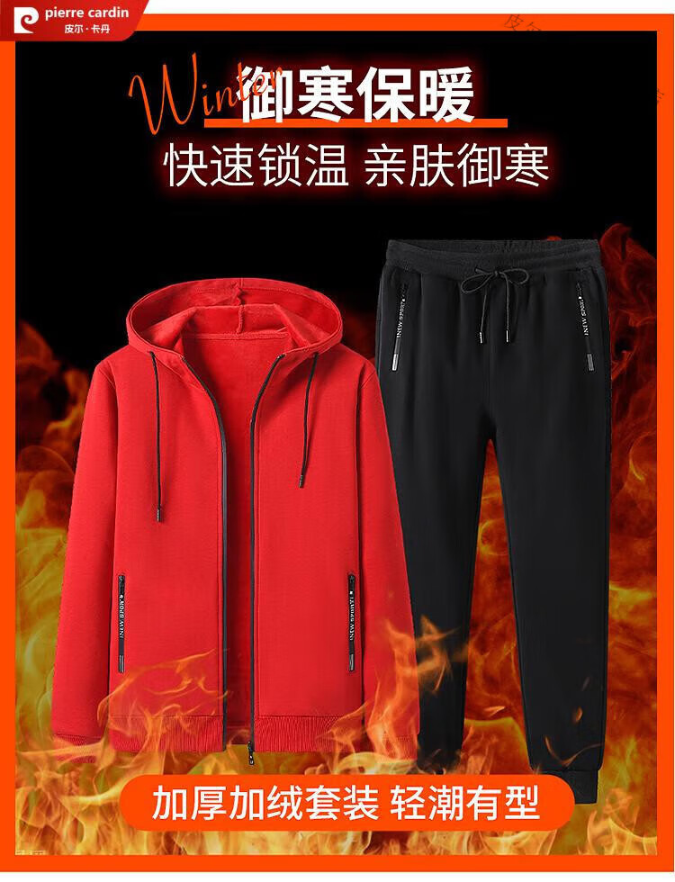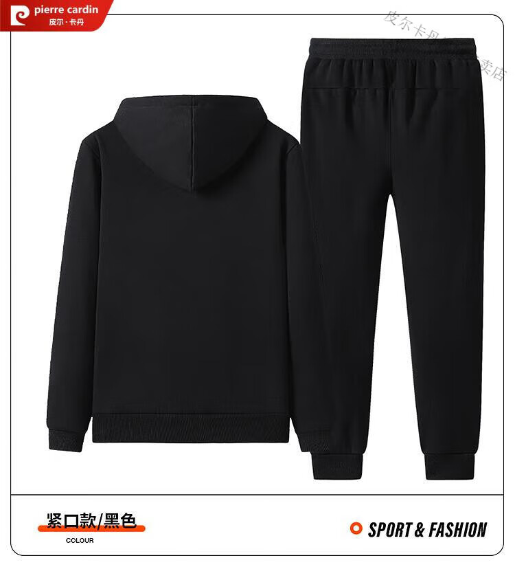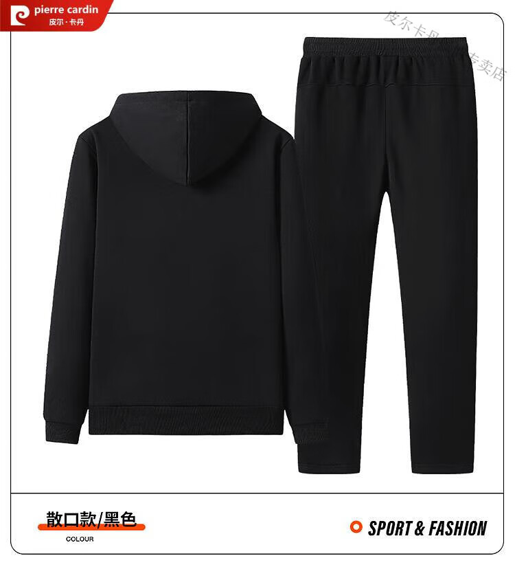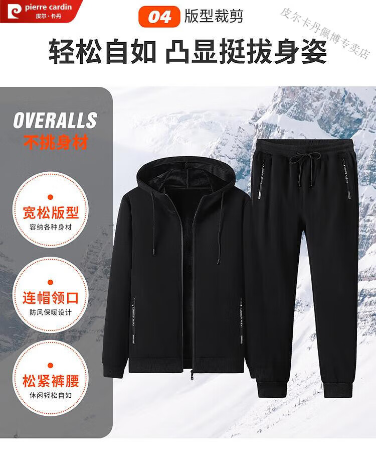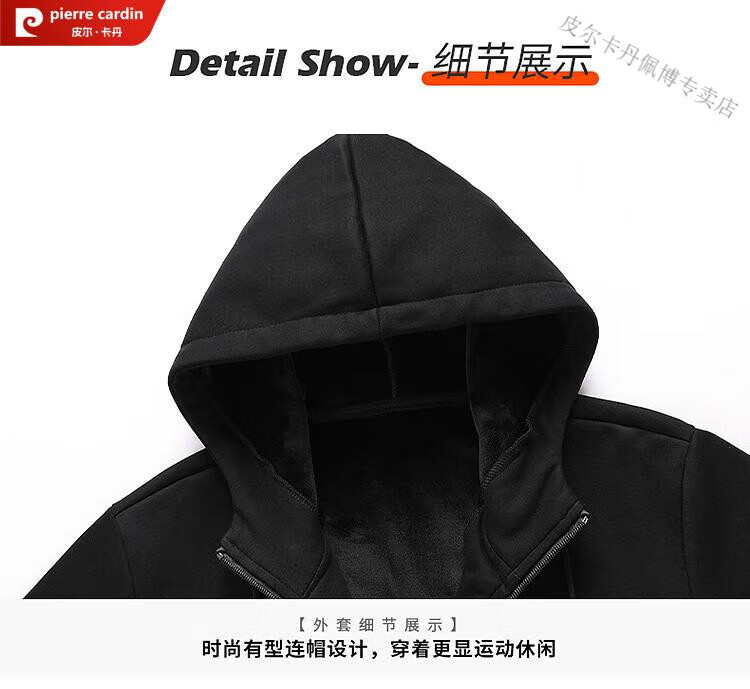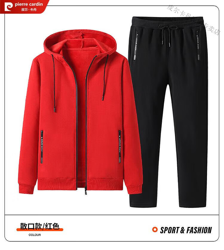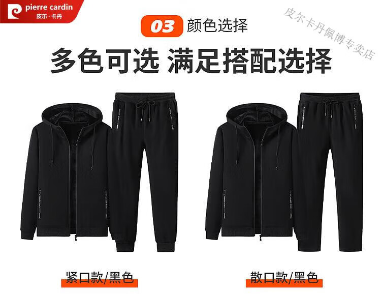 Pierre Cardin pure cotton sports suit men's autumn and winter velvet thickened hooded cardigan sweatshirt large size loose running two-piece set 5855 dark gray plus plush leg set XL 125-140Jin Jin equals 0.5 kg