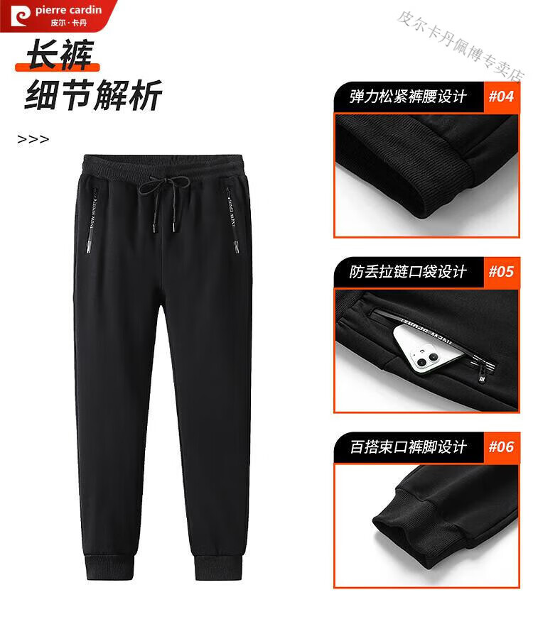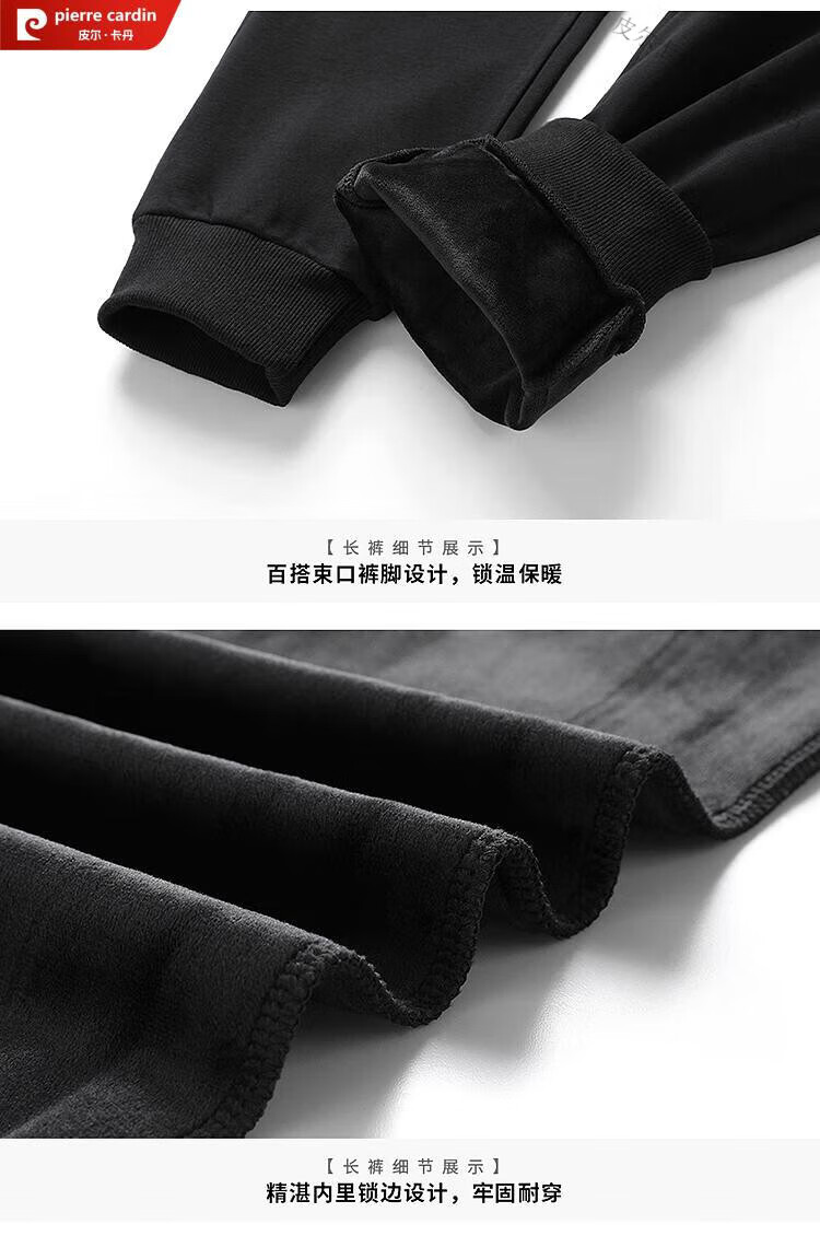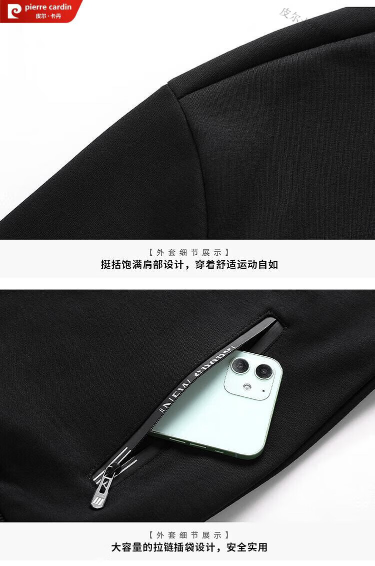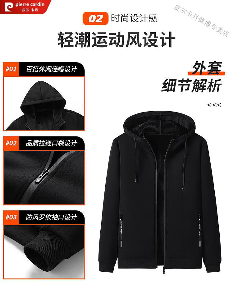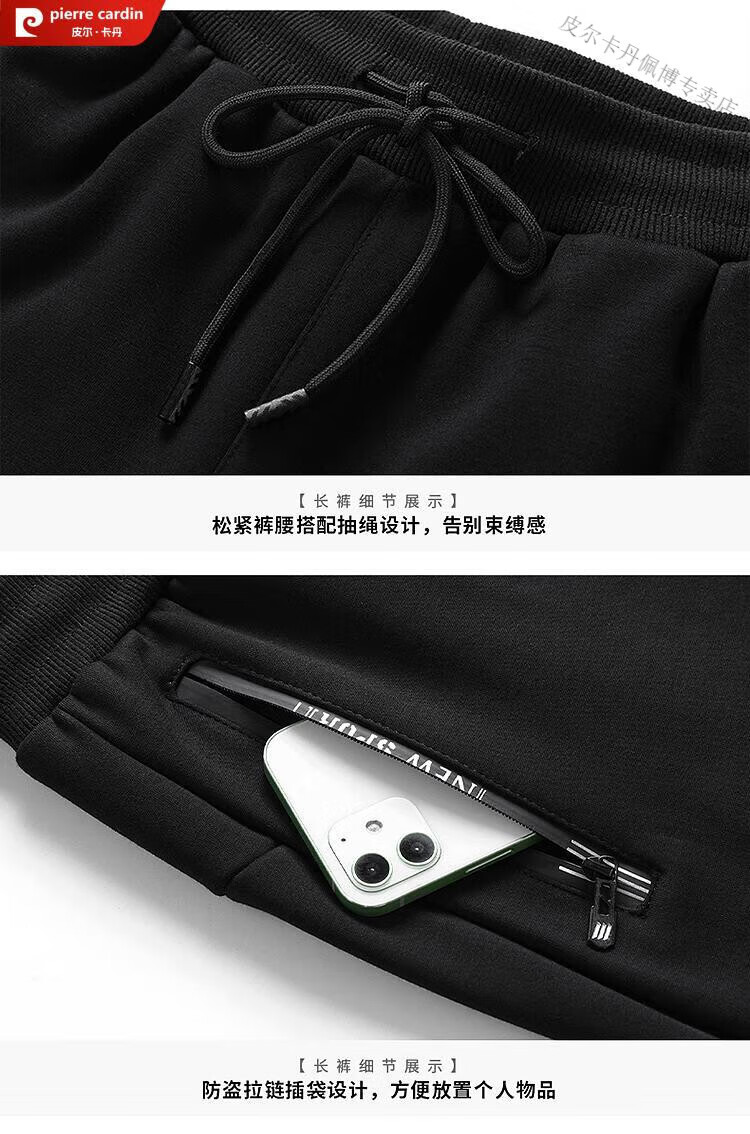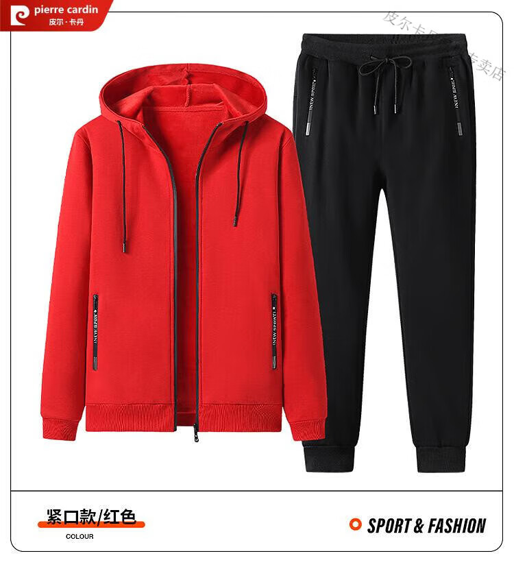 Pierre Cardin pure cotton sports suit men's autumn and winter velvet thickened hooded cardigan sweatshirt large size loose running two-piece set 5855 dark gray plus plush leg set XL 125-140Jin Jin equals 0.5 kg