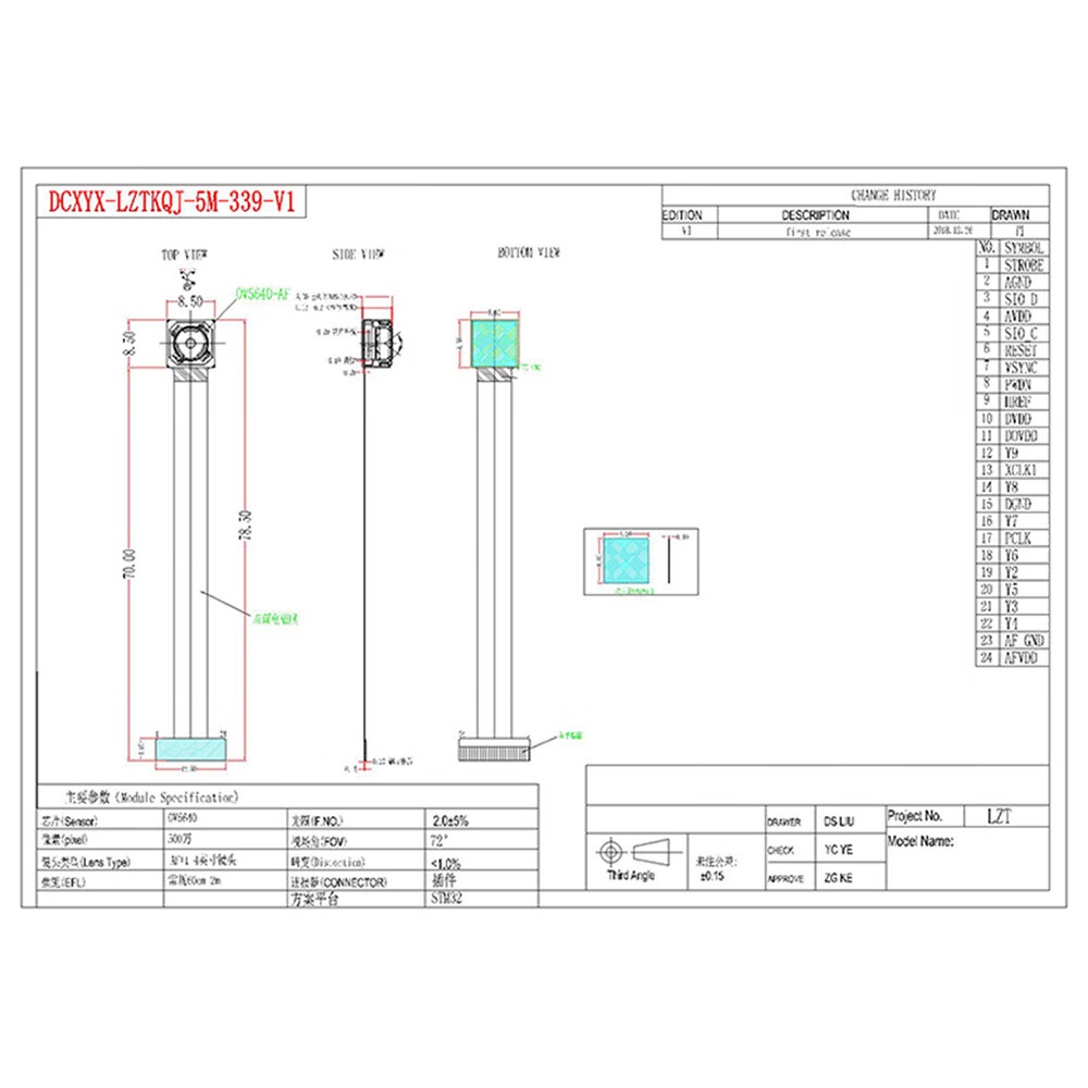 OV5640 camera module high-definition 5 million pixels for single chip/development board/STM32 DVP interface 120-degree autofocus