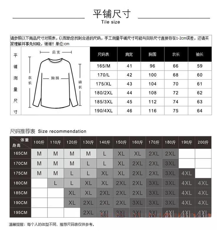 China (cm) 165 / 88-90 170 / 96-98 175 / 108-110 180 / 118-122 185 / 126-130