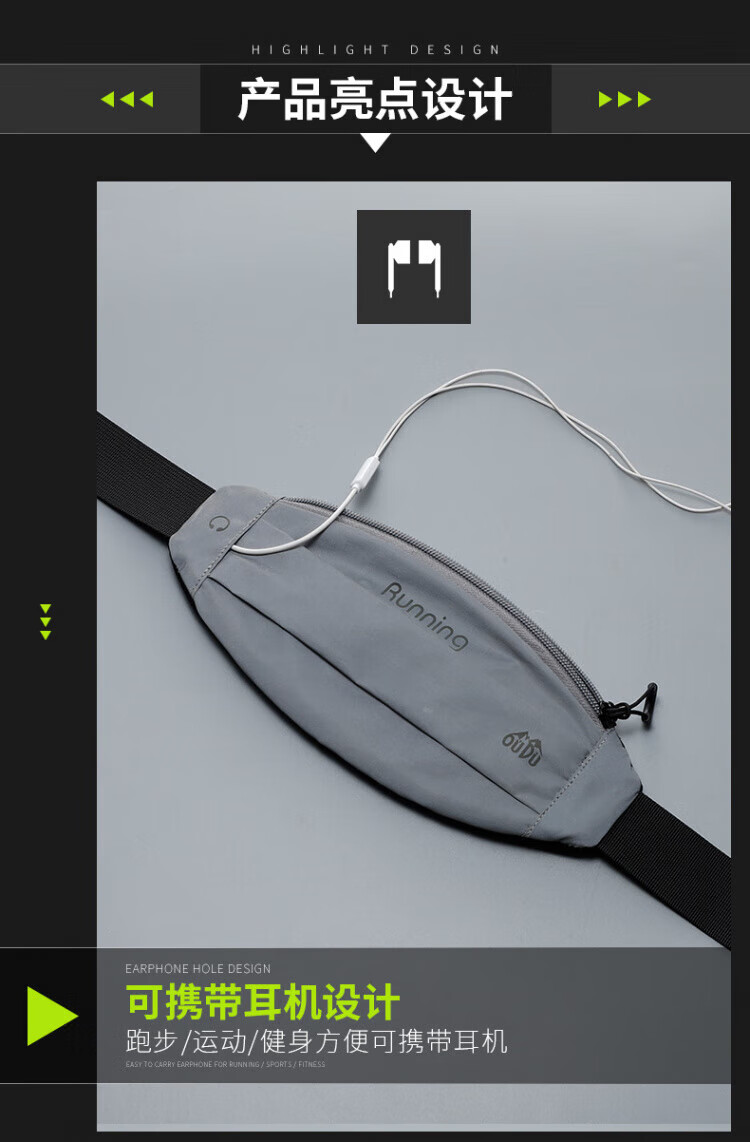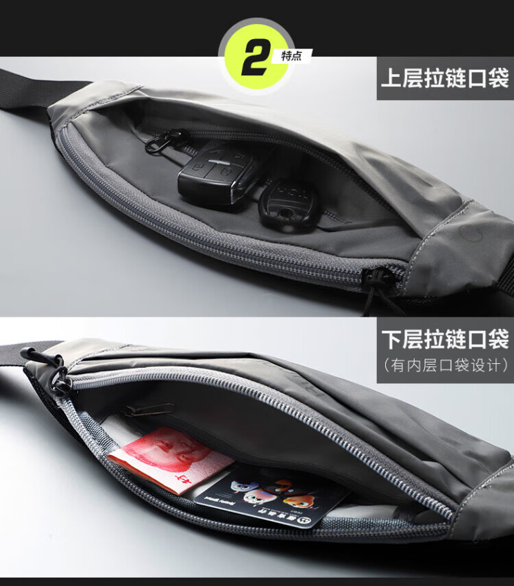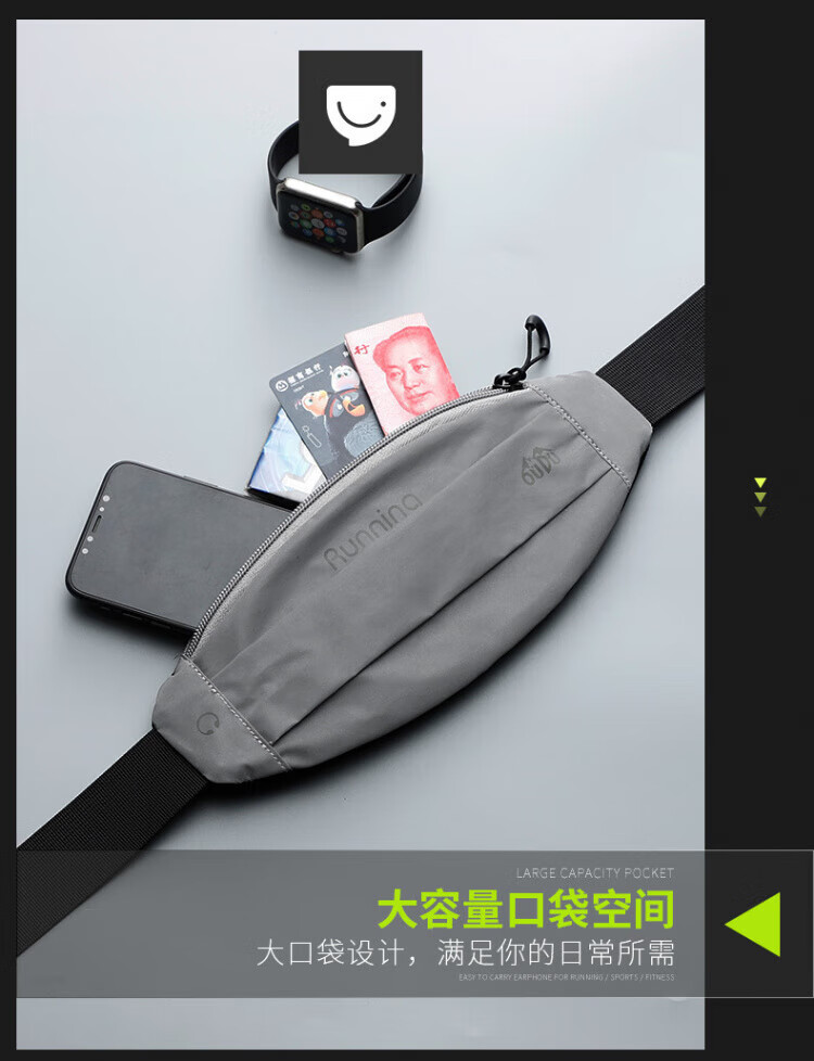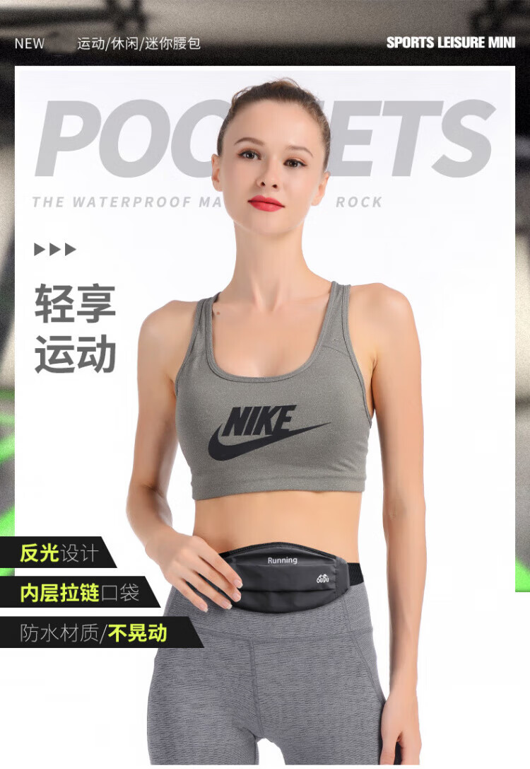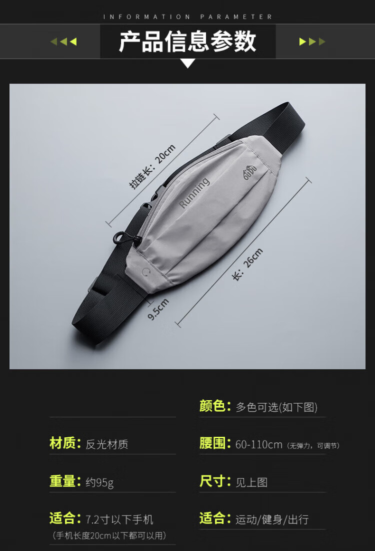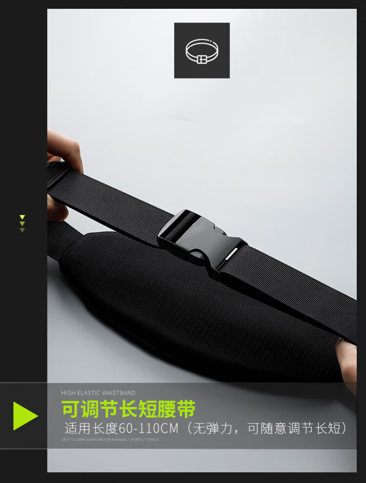 JCZS sports waist bag women's running mobile phone bag men's waterproof summer mobile phone artifact fitness invisible light morning running belt sports handbag black arm and wrist dual use