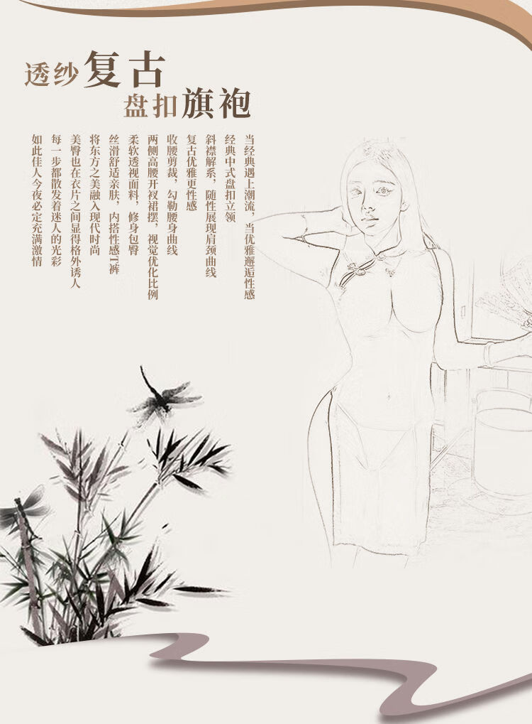 Sexy lingerie 2025 new sexy see-through cheongsam hot temptation pajamas free uniform date shirt qqny black dress thong
