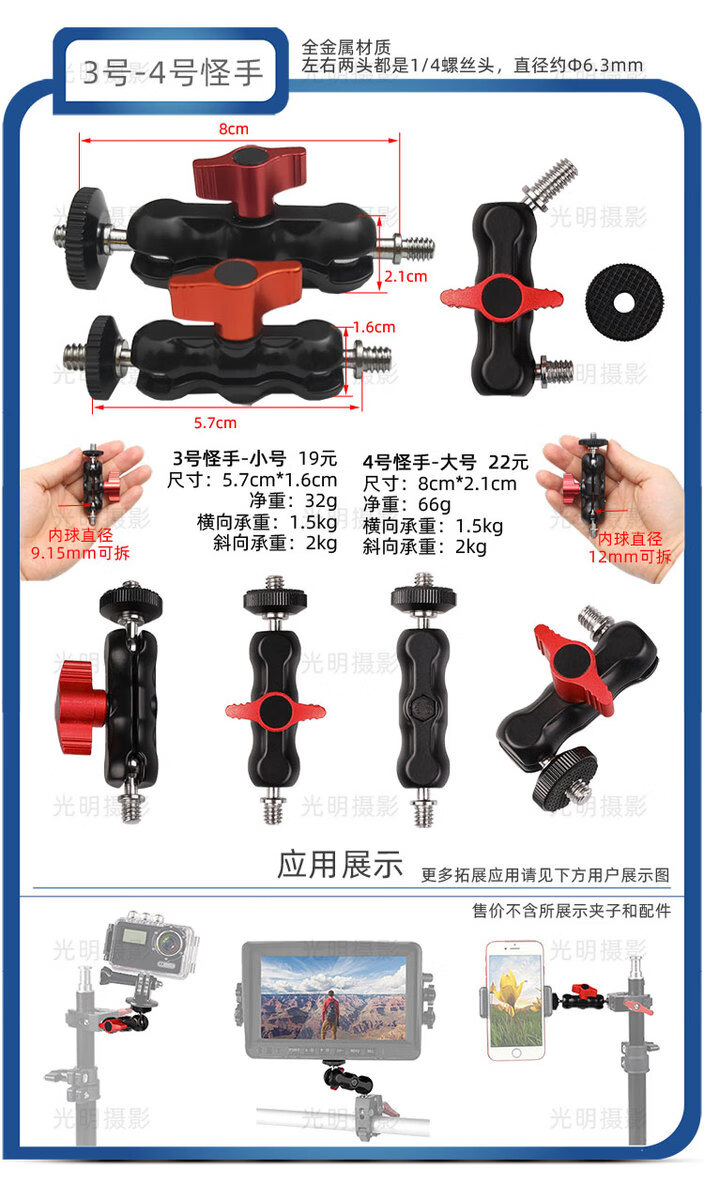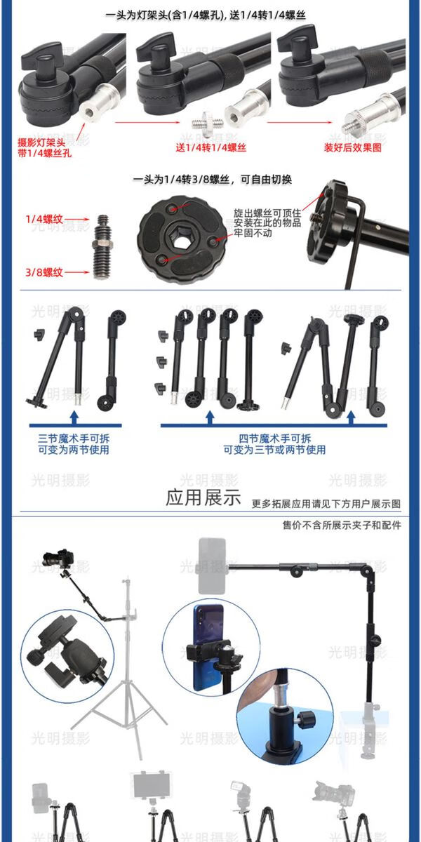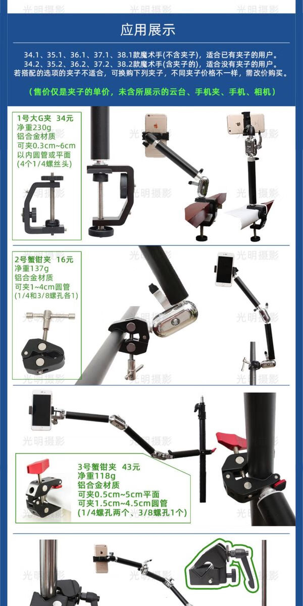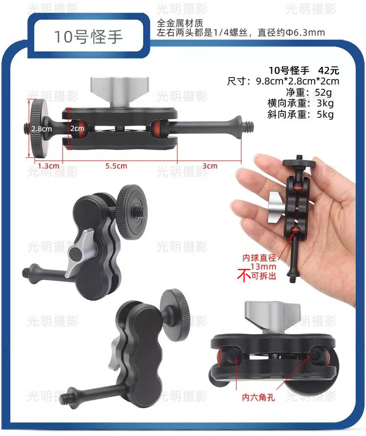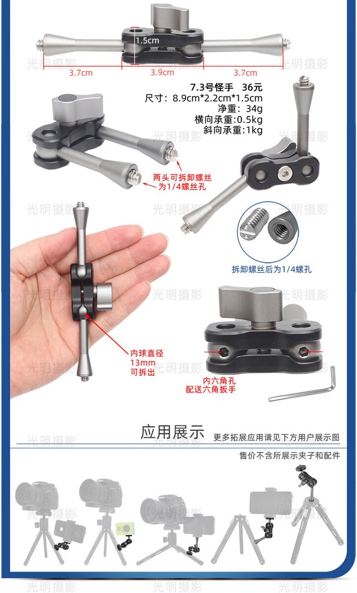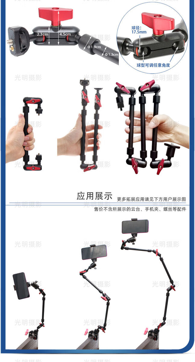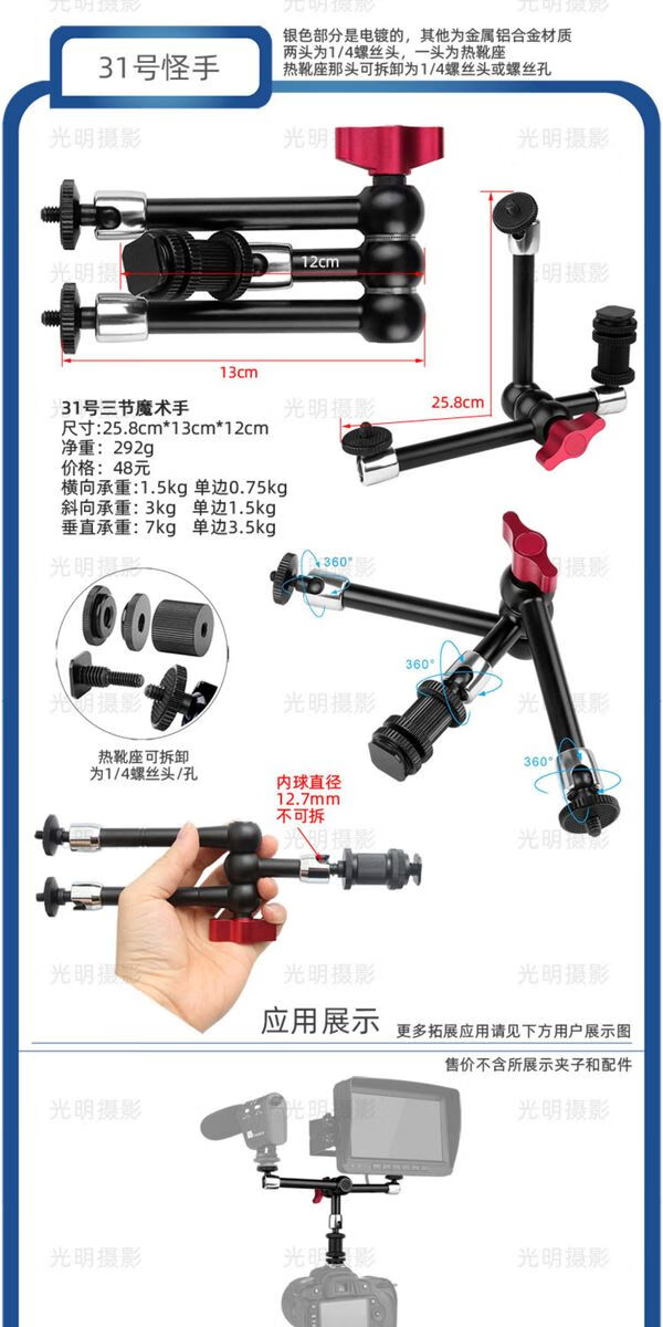 Zhong Zhanggui camera mobile phone monitor photo photography metal universal ball 14 magic arm weird hand extension long rod bracket No. 13 10cm long / left screw with cold shoe slot / right screw