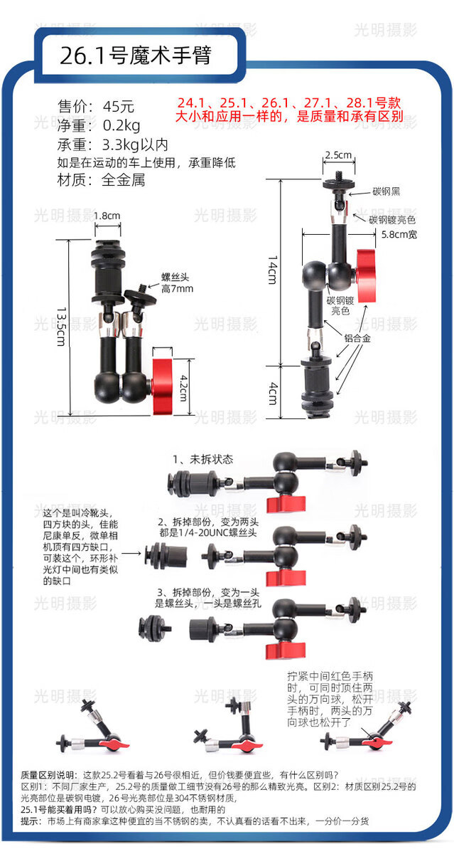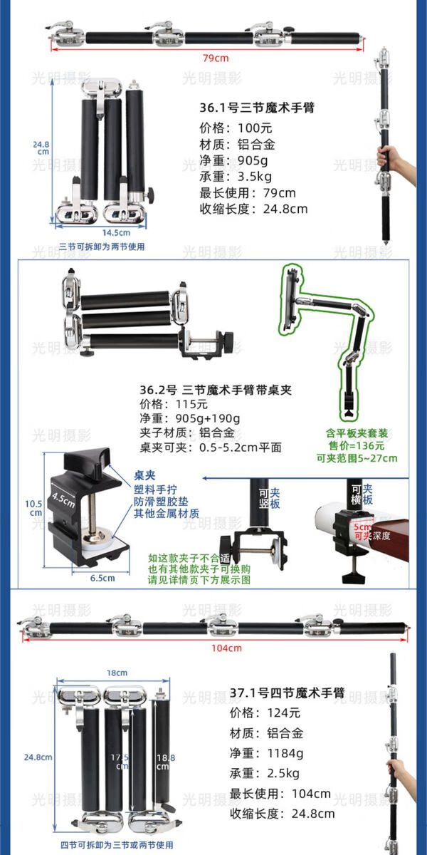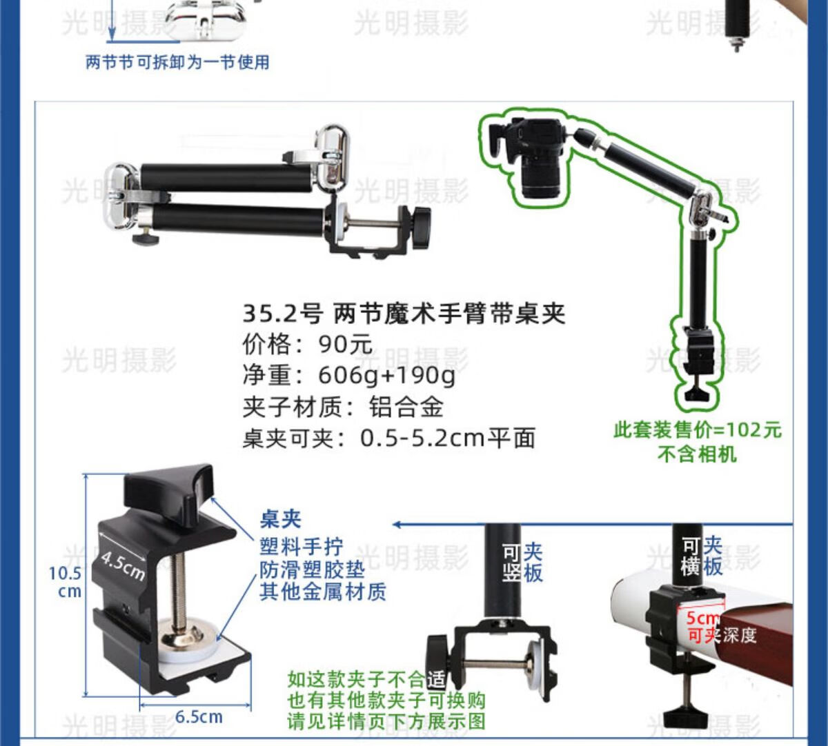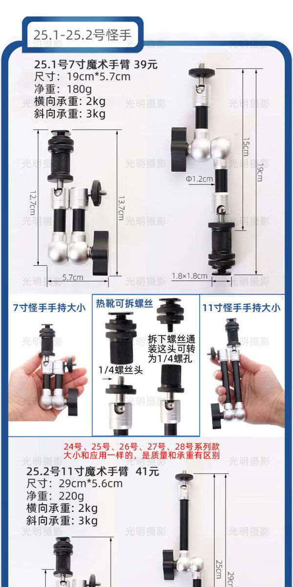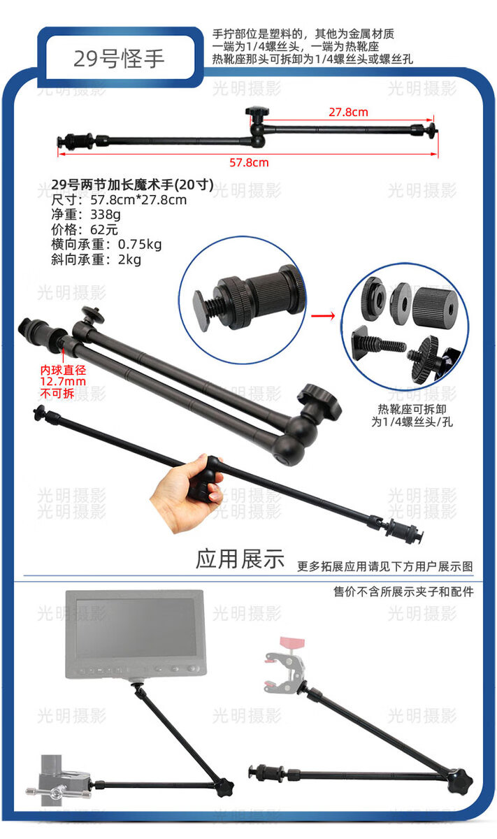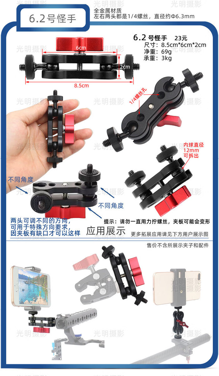 Zhong Zhanggui camera mobile phone monitor photo photography metal universal ball 14 magic arm weird hand extension long rod bracket No. 13 10cm long / left screw with cold shoe slot / right screw