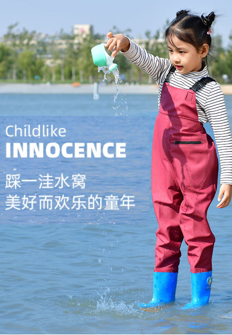 Waterproof waders for children, one-piece waders for children to play in the water, waterproof clothes for kindergarten, equipment for catching fish for babies, special price for children's sky blue overalls - no pockets, size 40 22, shoe inner length 13cm