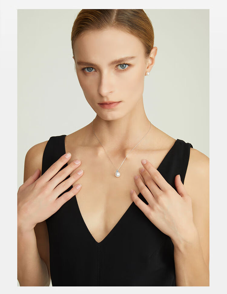 Buhesyt 18k gold freshwater pearl pendant Sansheng III pearl clavicle chain for girlfriend 18k gold-white about 9-9 points 5mm