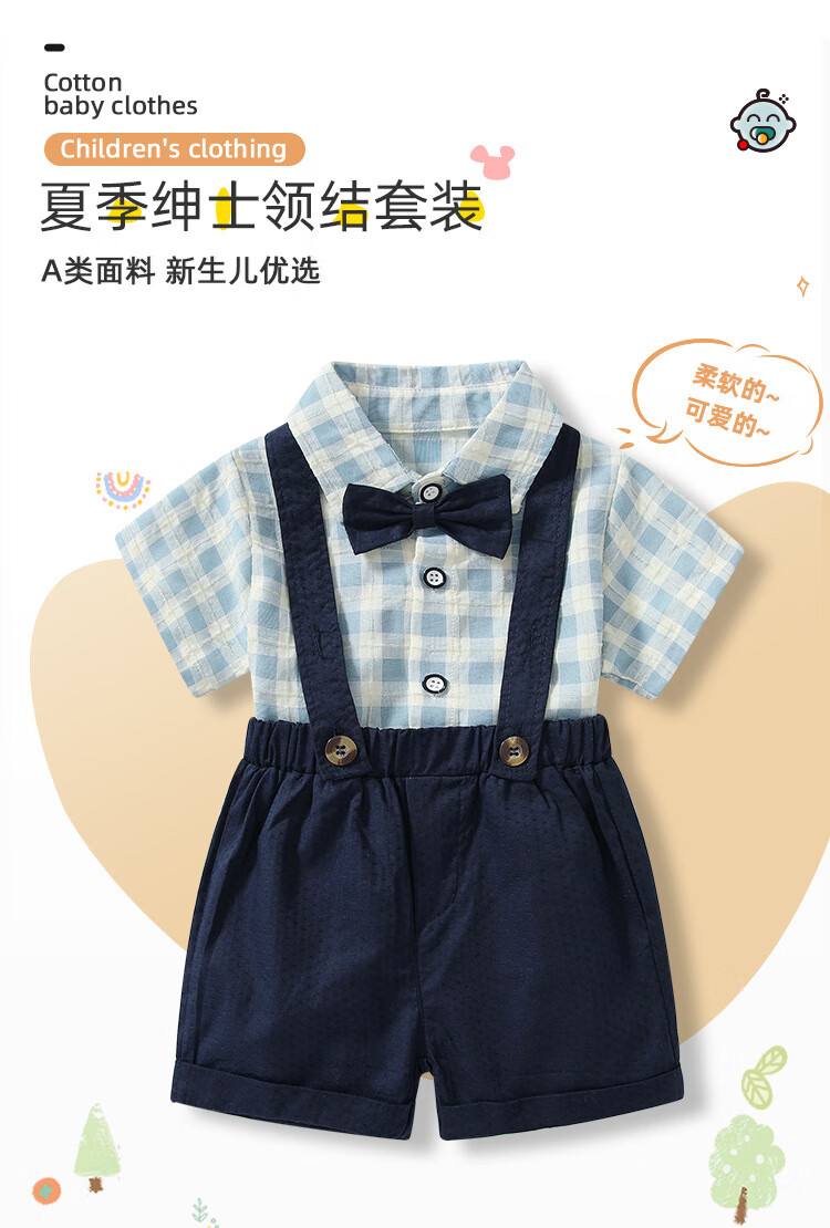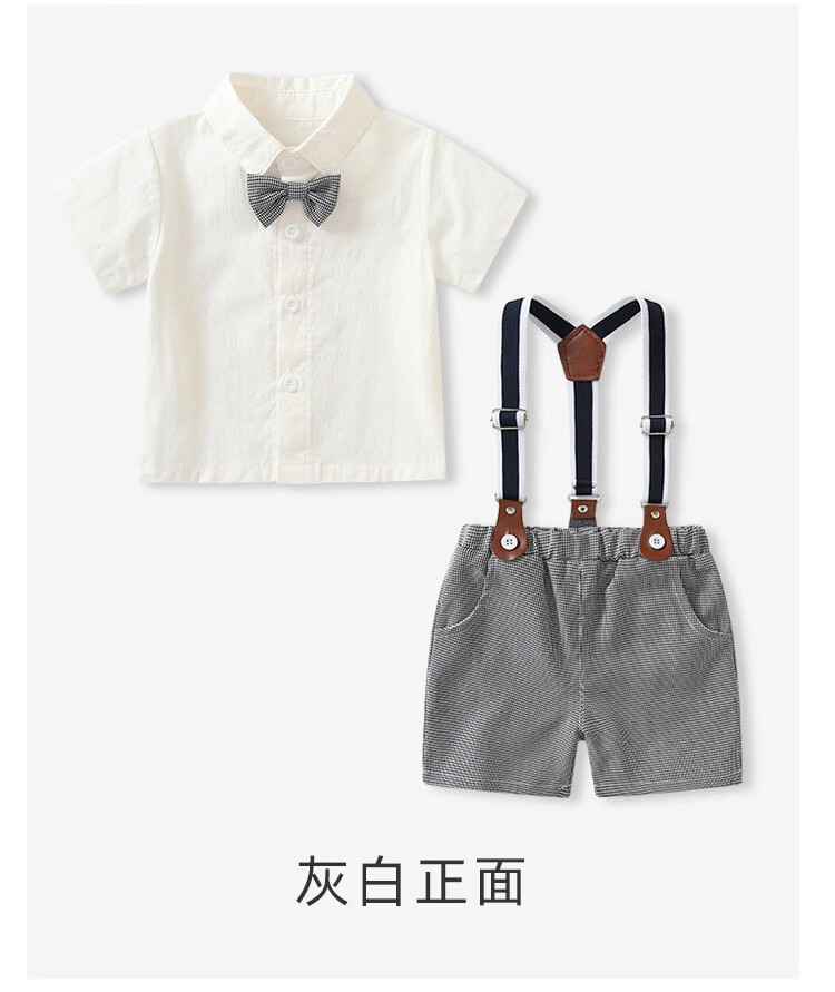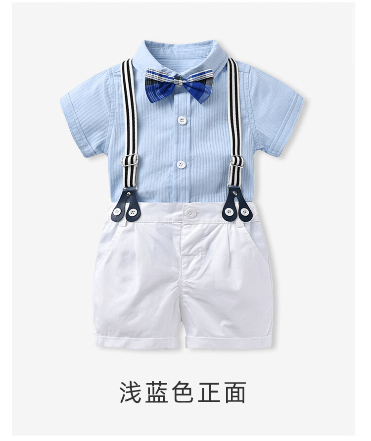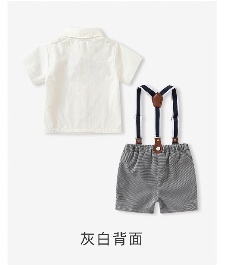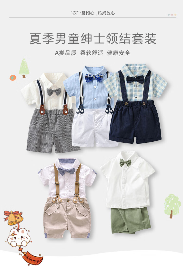 Xin Yueqing one-year-old dress children's clothing children's bow tie shirt overalls suit boys campus Children's Day performance park clothing B1905 top + pants + bow tie + suspenders 73 73CM