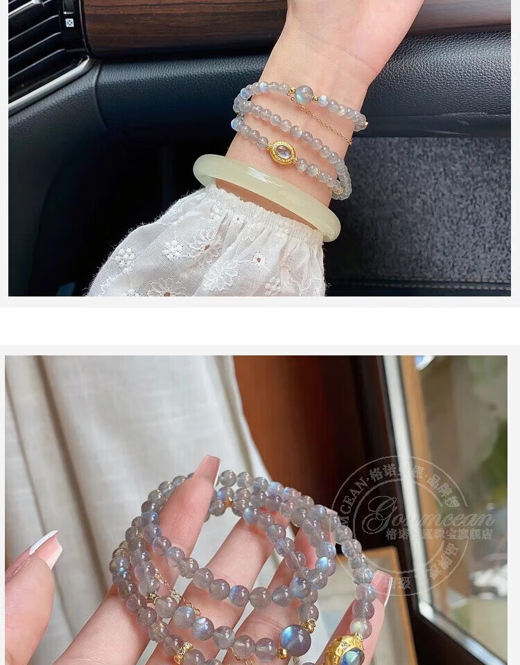 Beimeixing moonstone bracelet for women multi-circle blue light crystal three-circle bracelet for women gift beads 6mm gray moonlight and aquamarine inlaid accessories