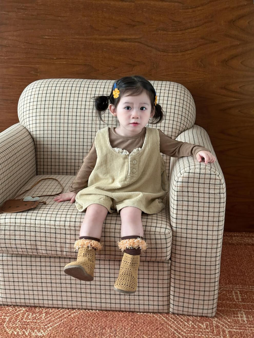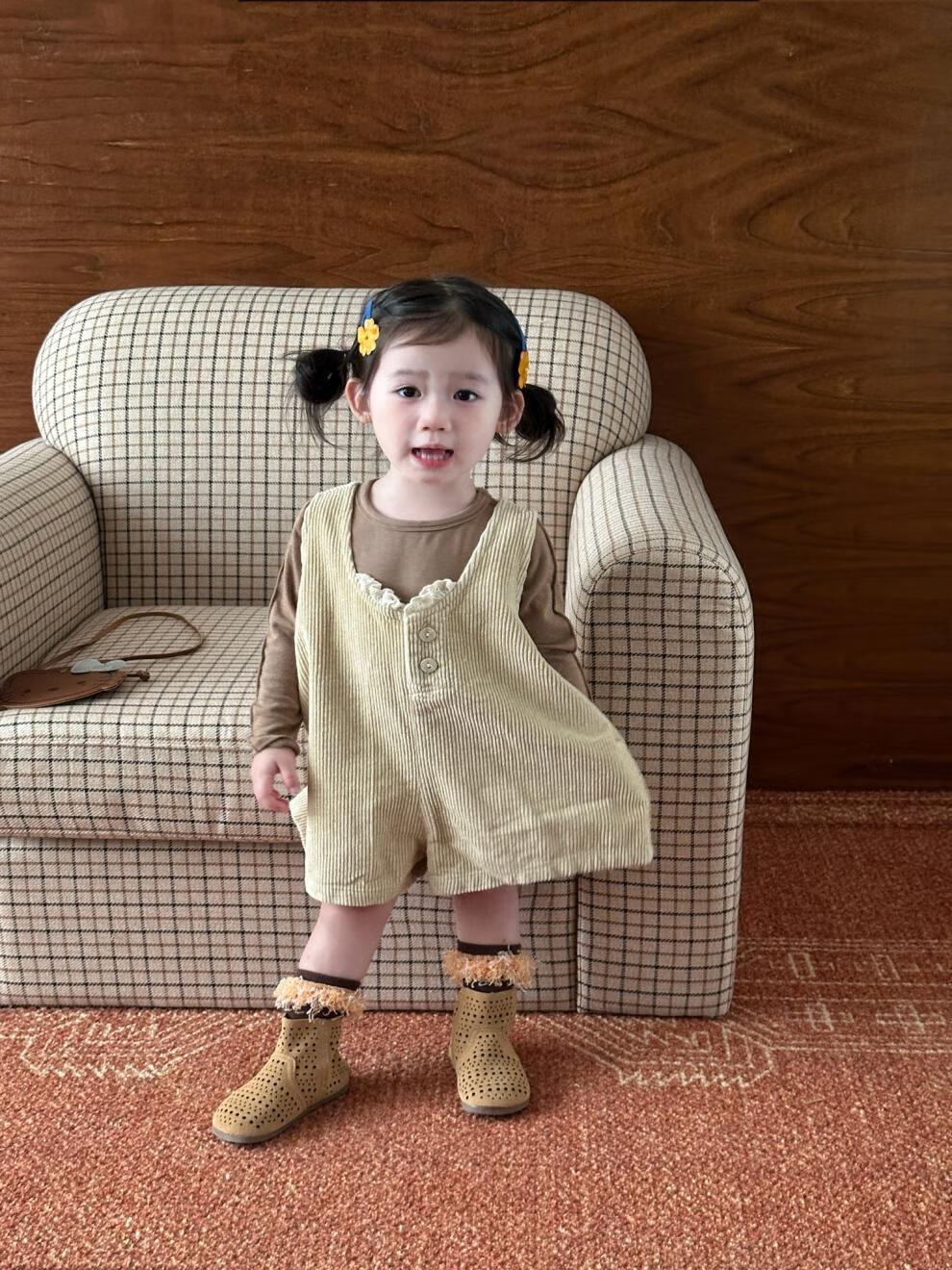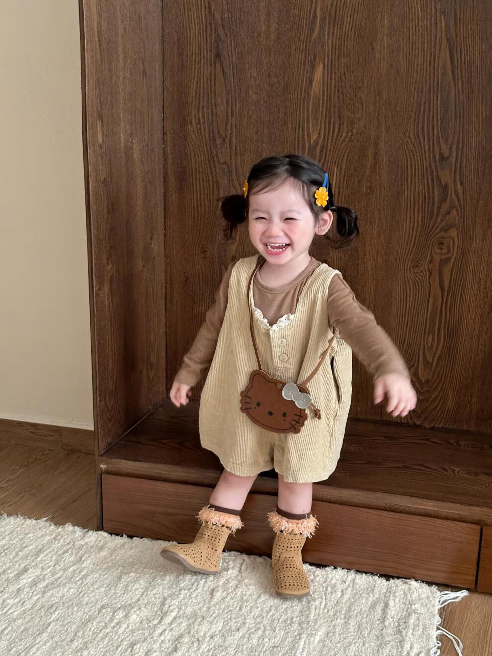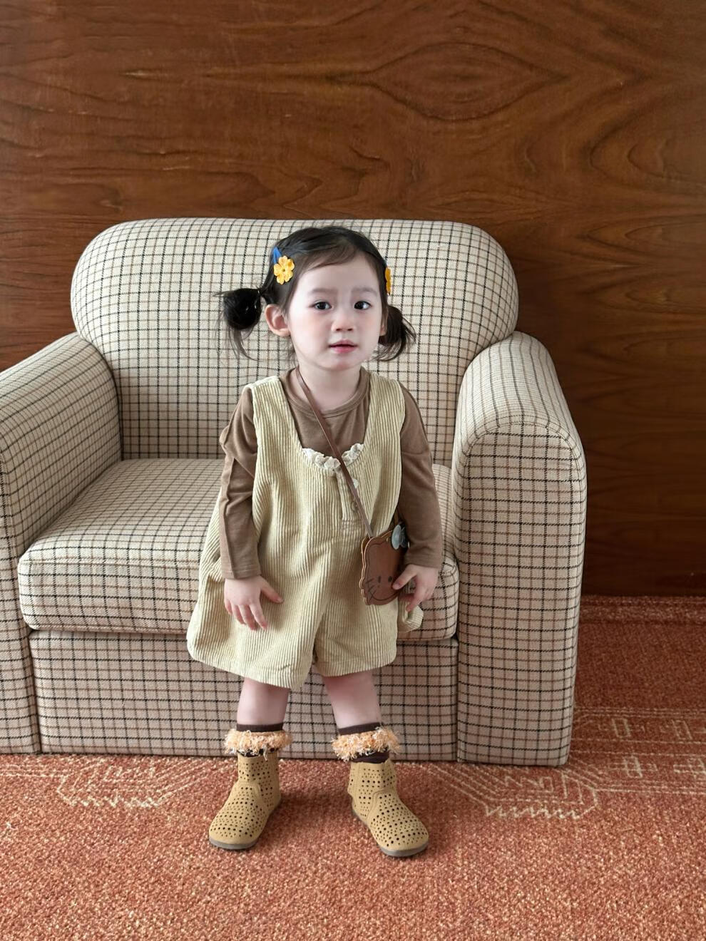 Girls overalls set baby autumn style corduroy jumpsuit versatile long-sleeved T-shirt two-piece set khaki overalls 80 cm