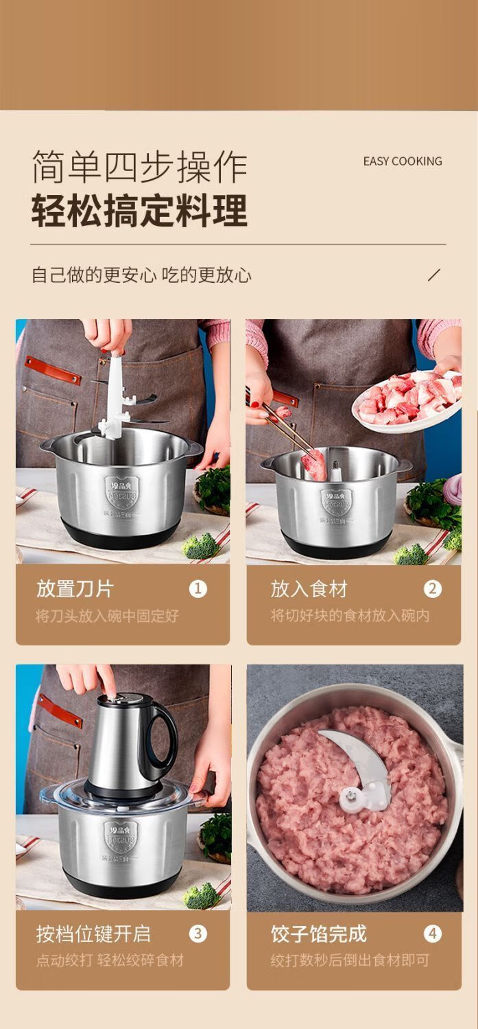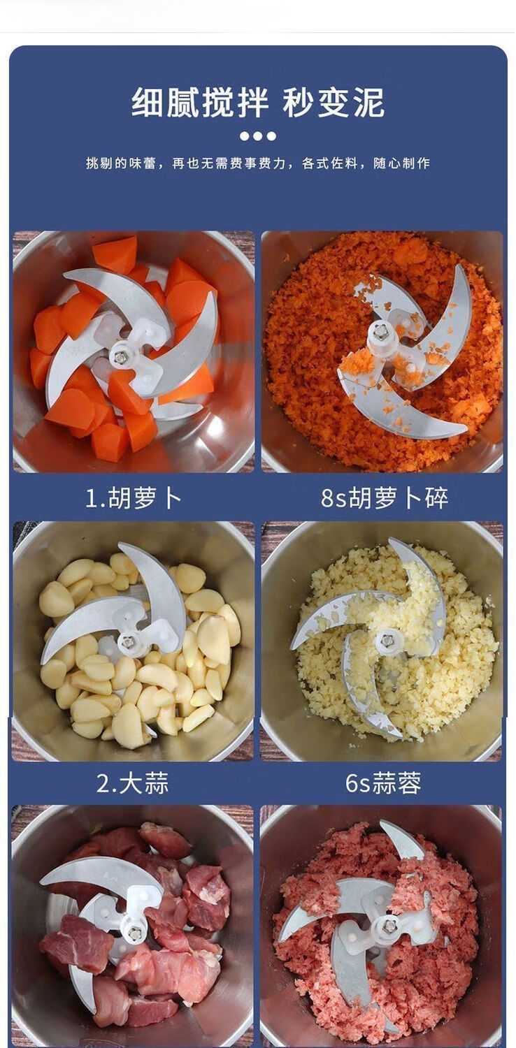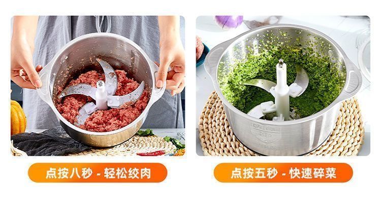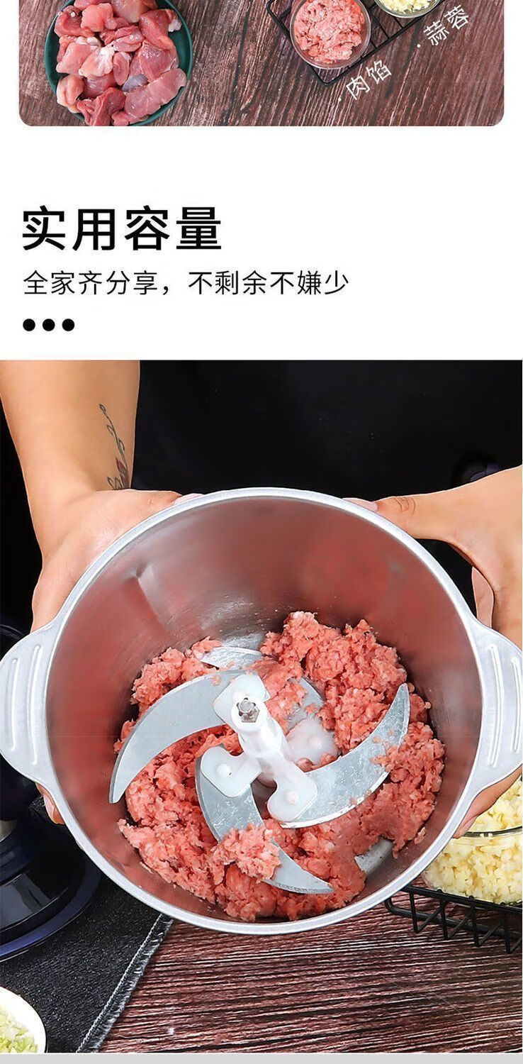 MZXM Japan imported quality meat grinder electric household 2025 new pure copper electric minced meat, garlic, dried pepper, 5 liters, 3 gears, stainless steel, 500 watts, 1 set of six-leaf knife, 5 years