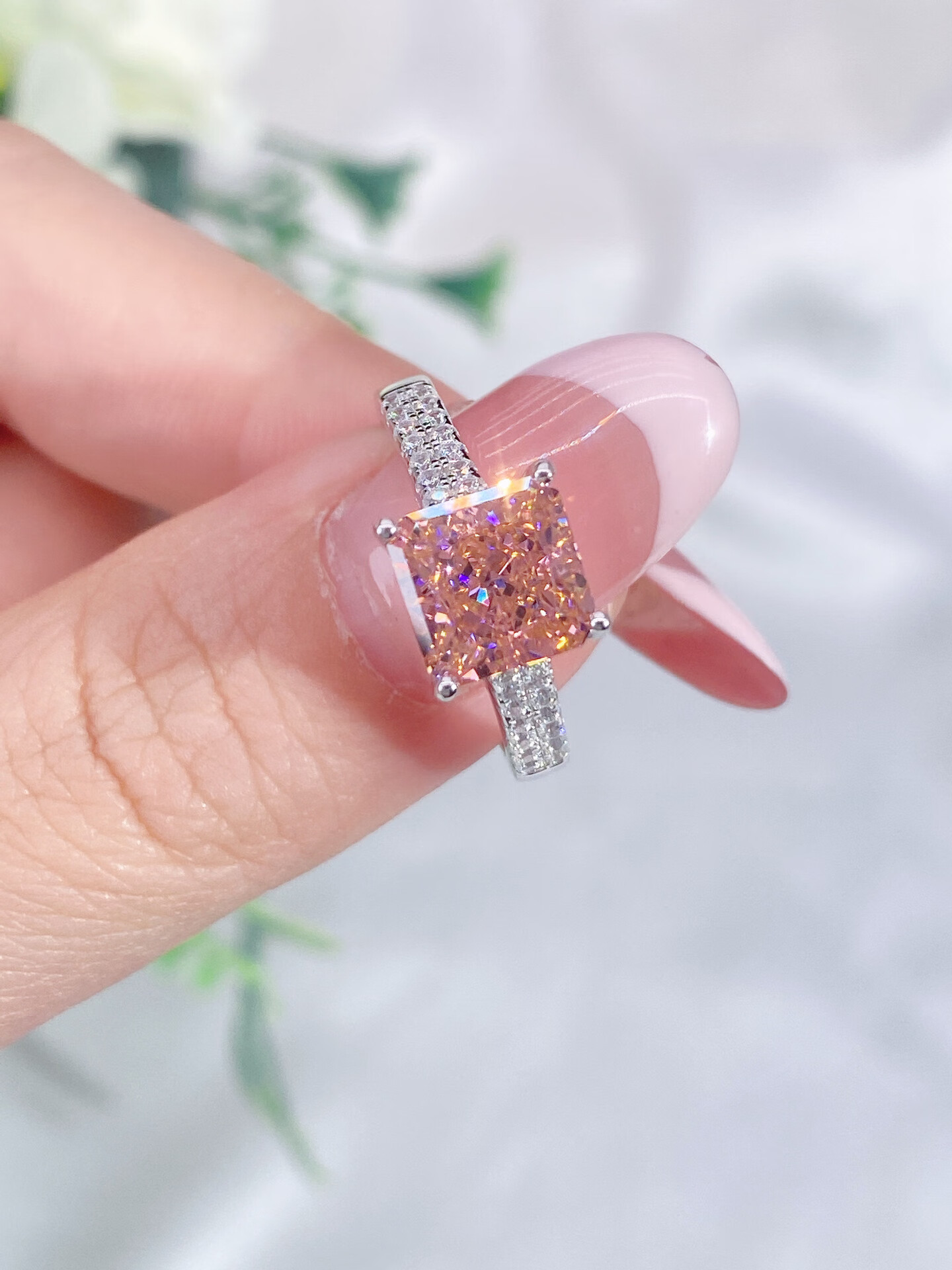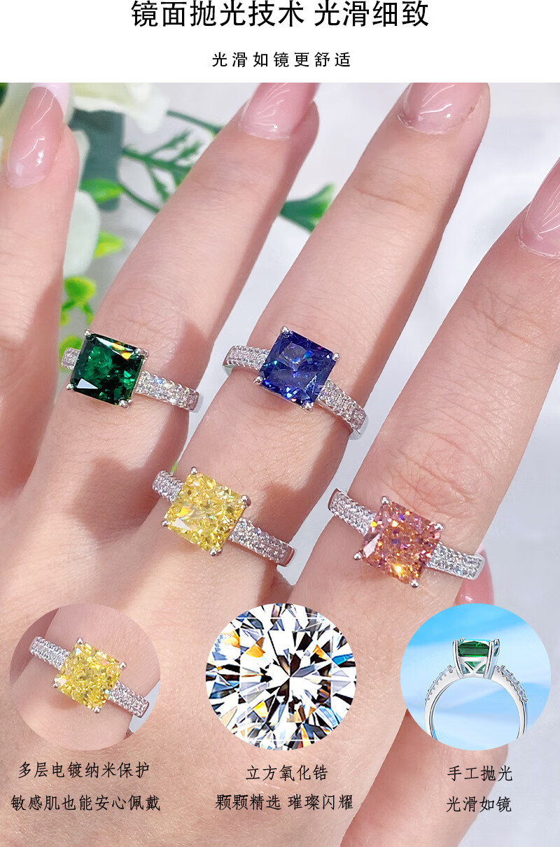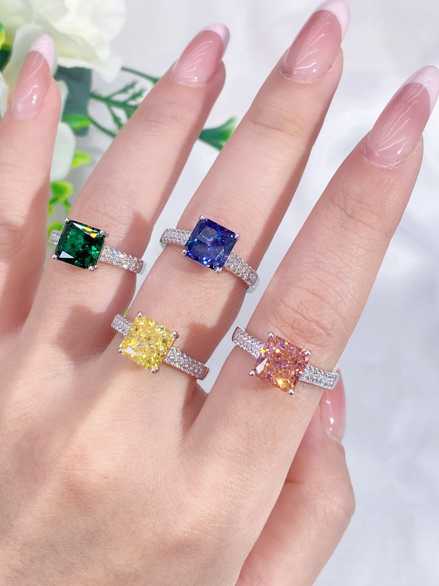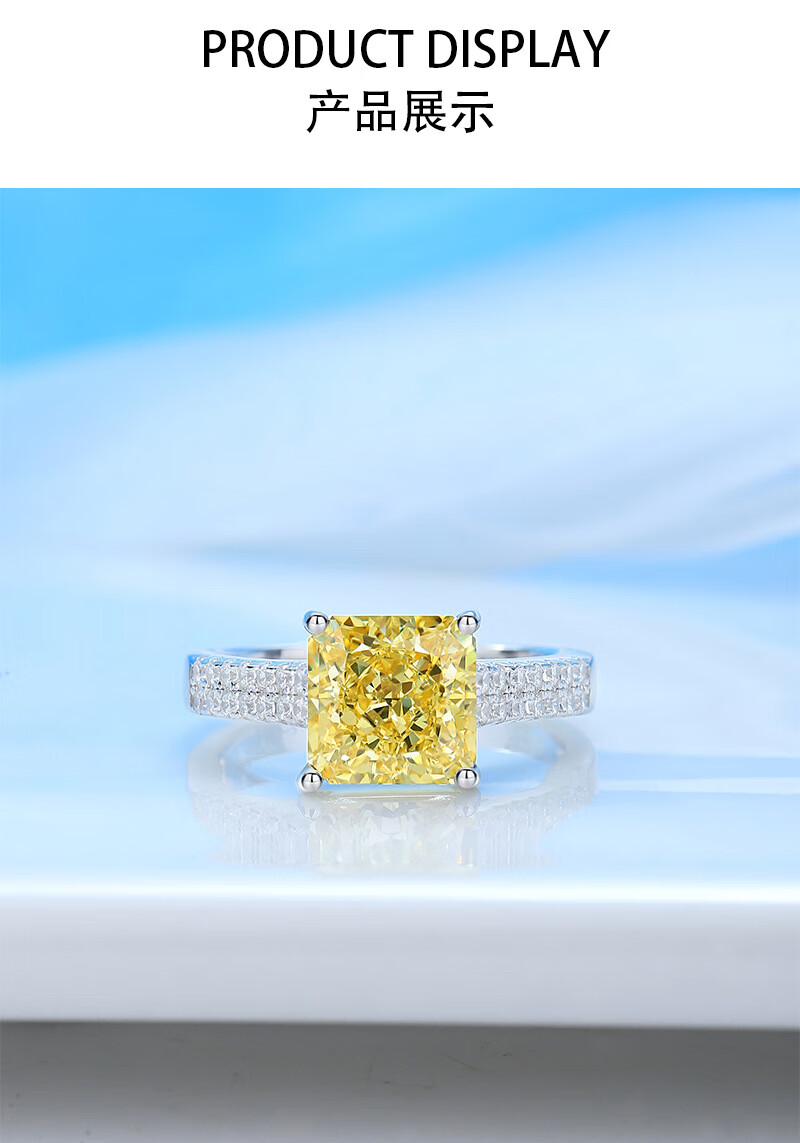 S925 Ring Women's Light Luxury Premium Four-Prong Yellow Diamond Small Sugar Cube Diamond Ring Original New Model Simple Model FDJZ-116-Tanzan Color No. 5