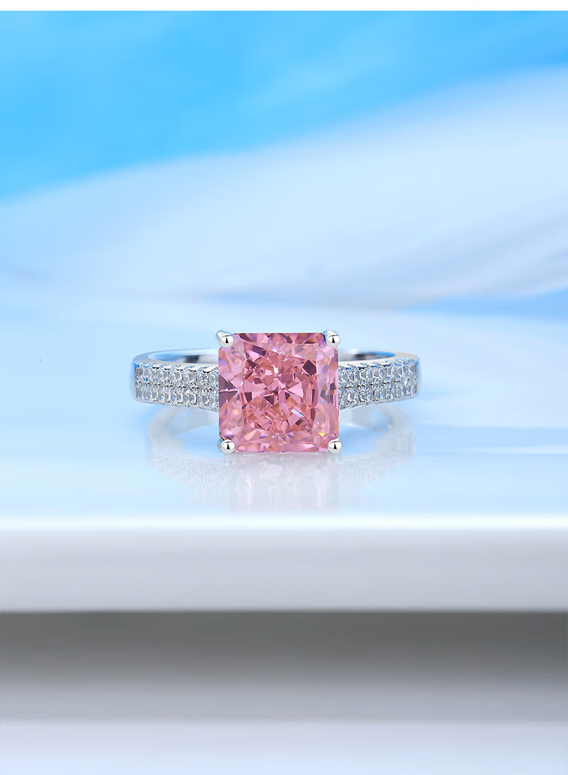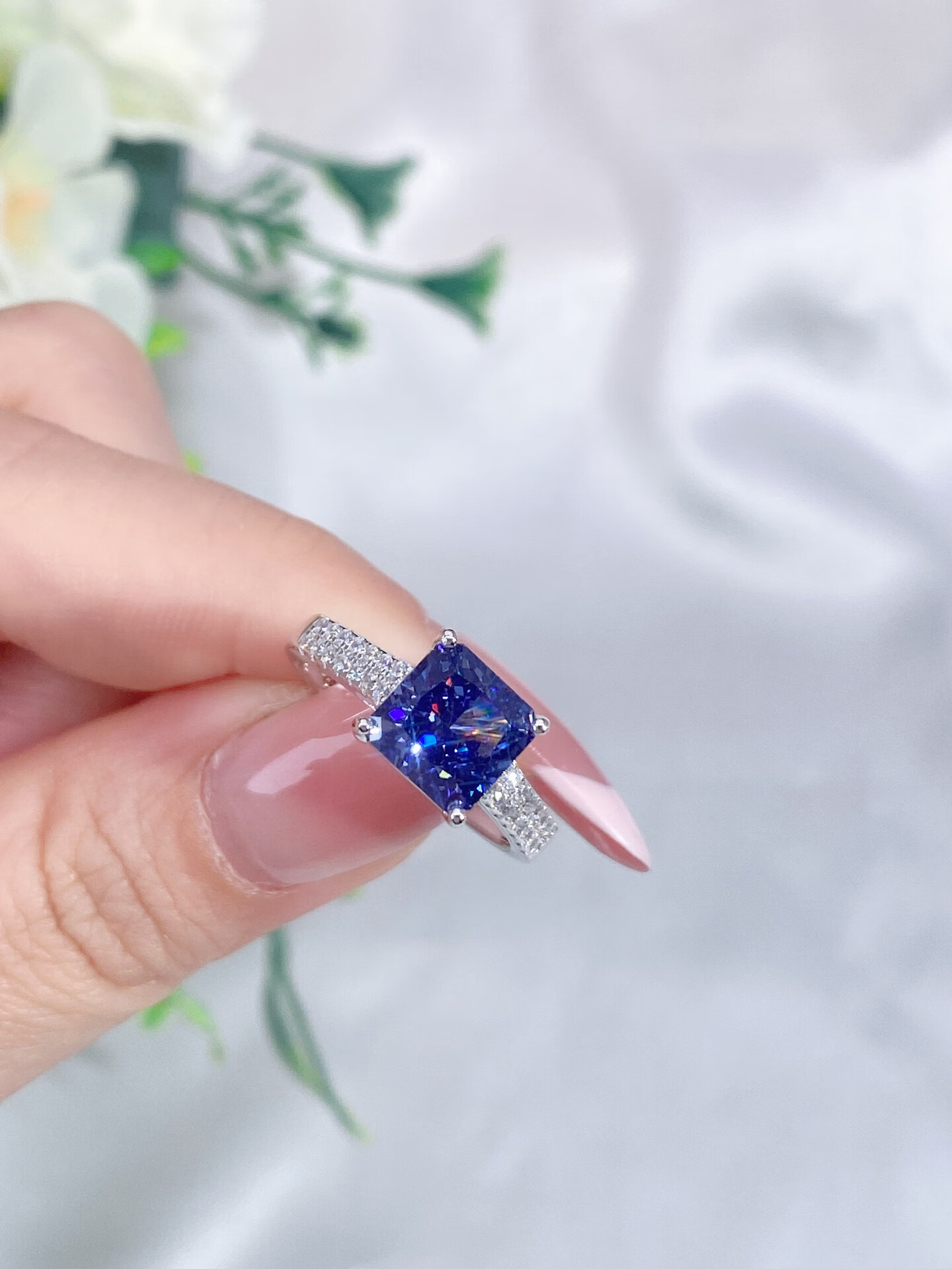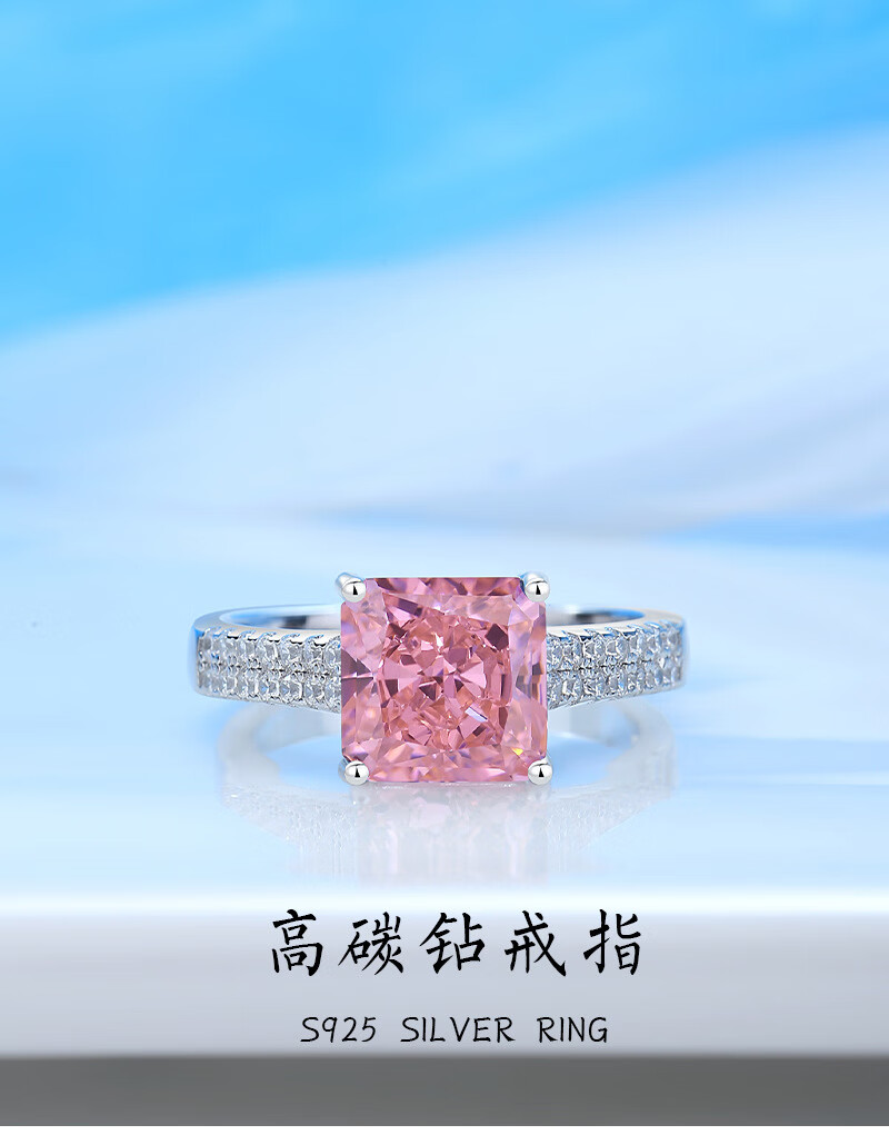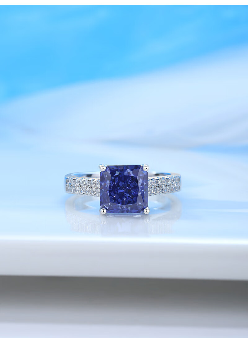 S925 Ring Women's Light Luxury Premium Four-Prong Yellow Diamond Small Sugar Cube Diamond Ring Original New Model Simple Model FDJZ-116-Tanzan Color No. 5