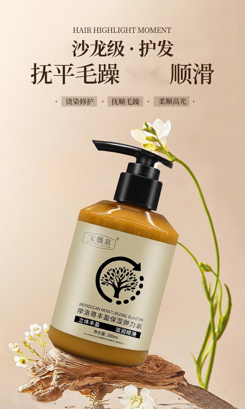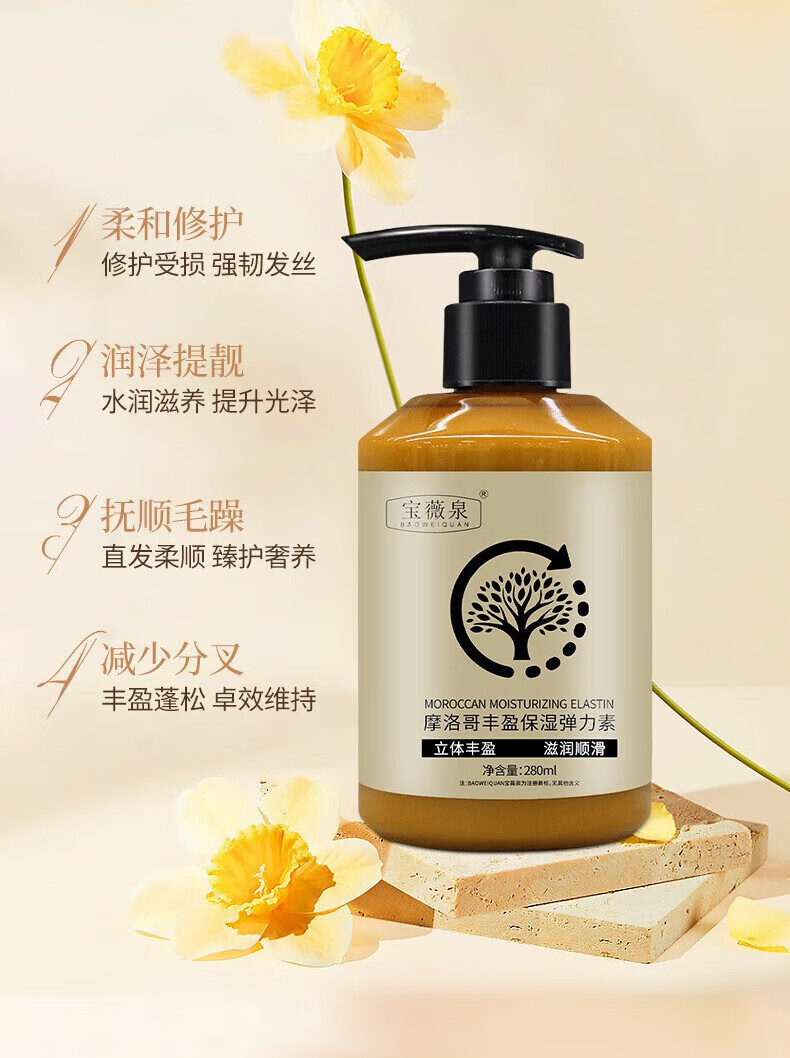 Baoweiquan official Moroccan plumping and moisturizing styling elastin dyeing and perming repair Q-bounce fluffy anti-frizz volume 1 bottle of Moroccan plumping and moisturizing elastin
