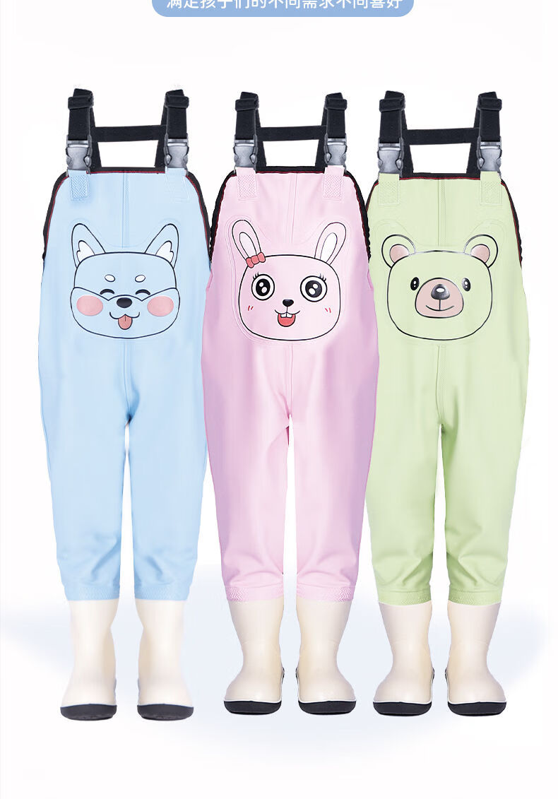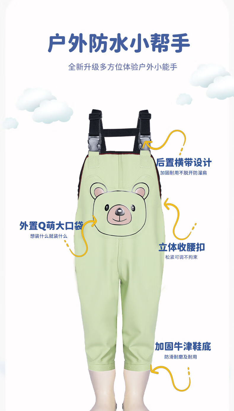 Zailu children's water play one-piece kindergarten waterproof clothes for catching sea children's rain boots for catching fish men's and women's rain pants beach Q-bear green-children's overalls with pockets 40 24 shoes inner length 15CM