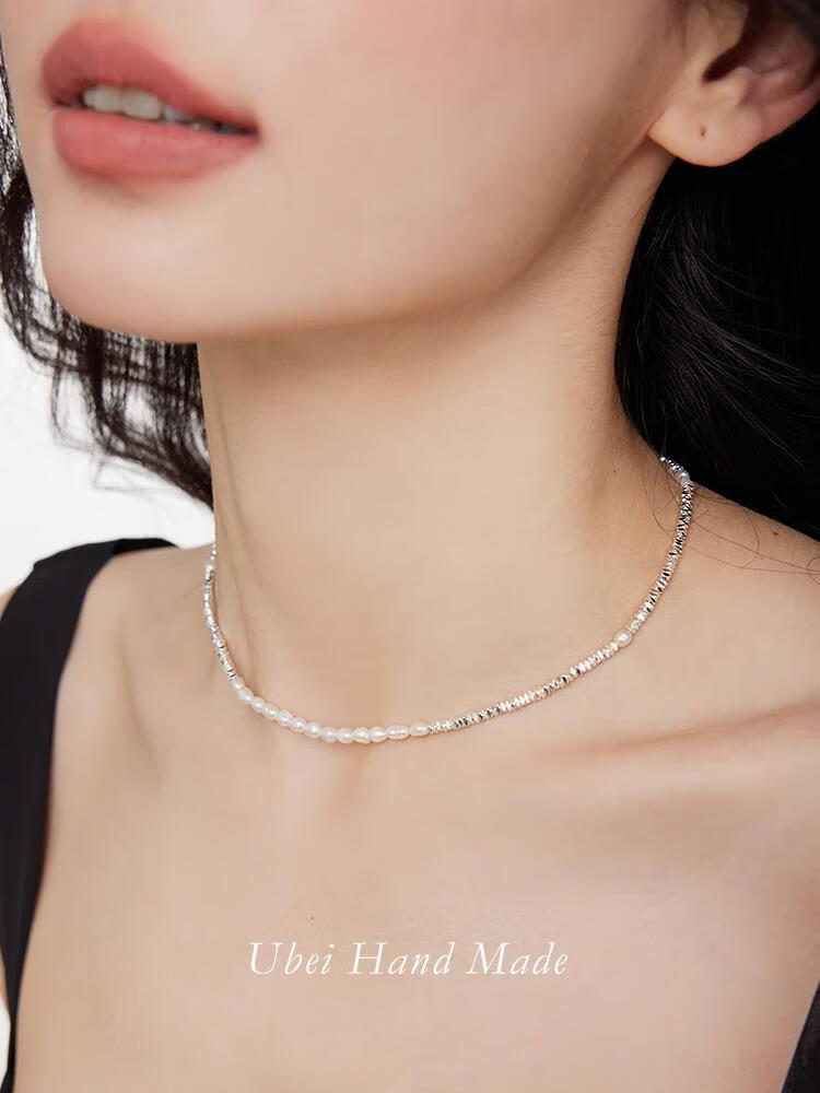 Youbei Handmade Natural Freshwater Pearl Broken Silver Necklace Women's Accessible Luxury Niche Design Lock Broken Silver Necklace