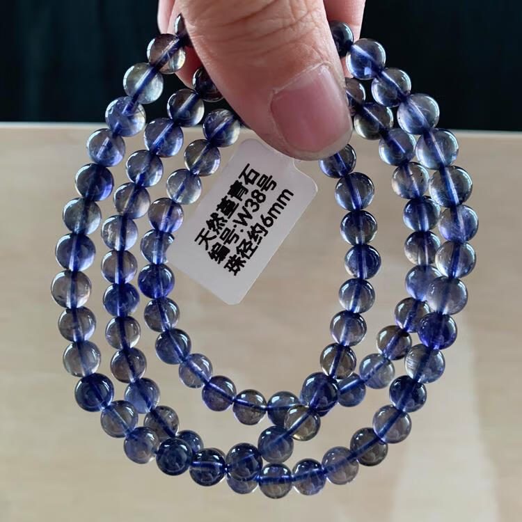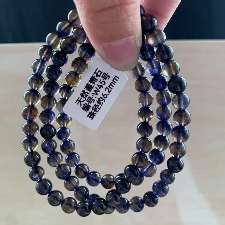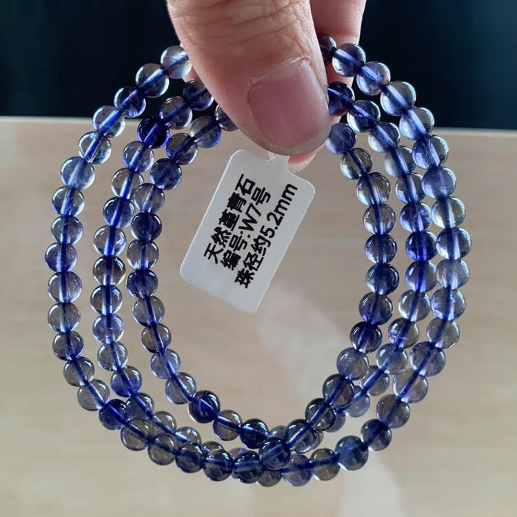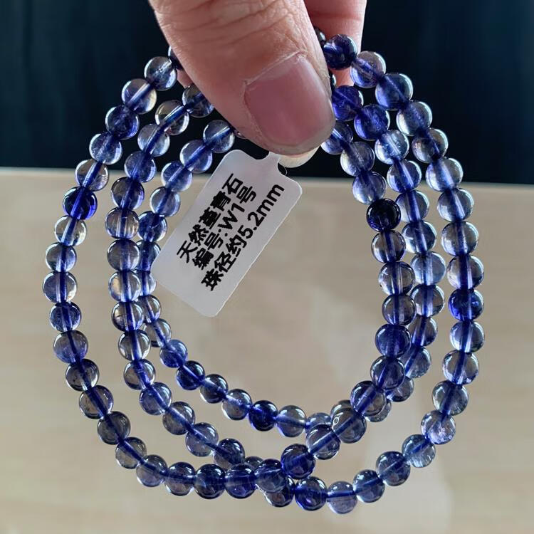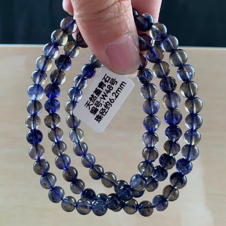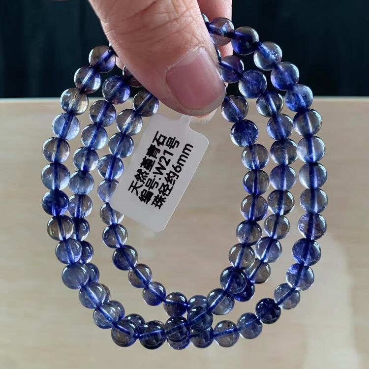 Natural ice-permeable cordierite three-circle Buddha beads bracelet, blue crystal tanzanite blue crystal, W15 about 5.8mm