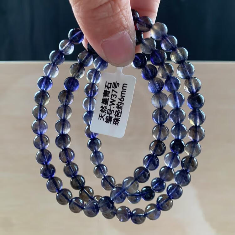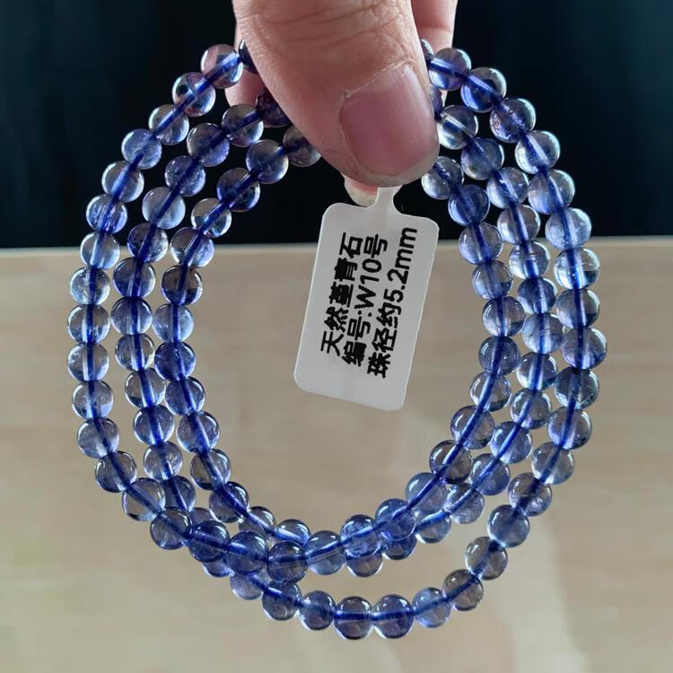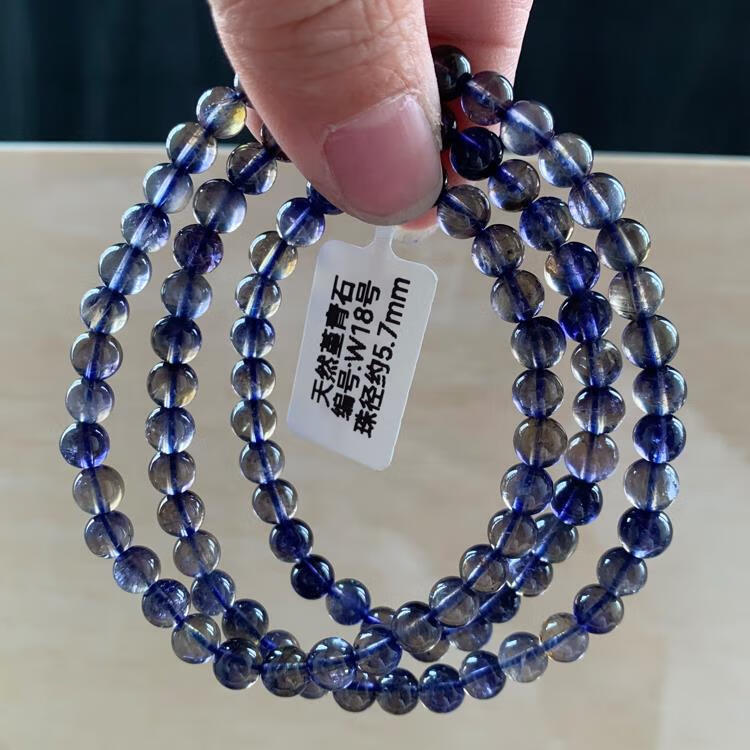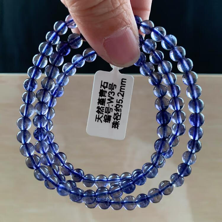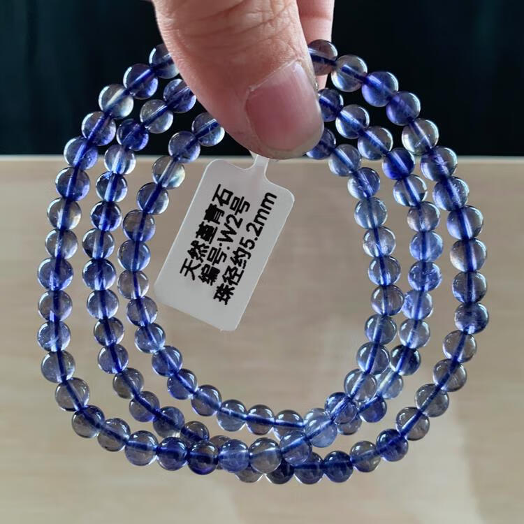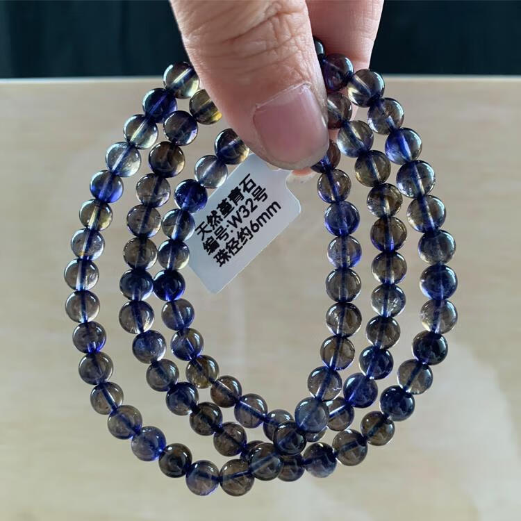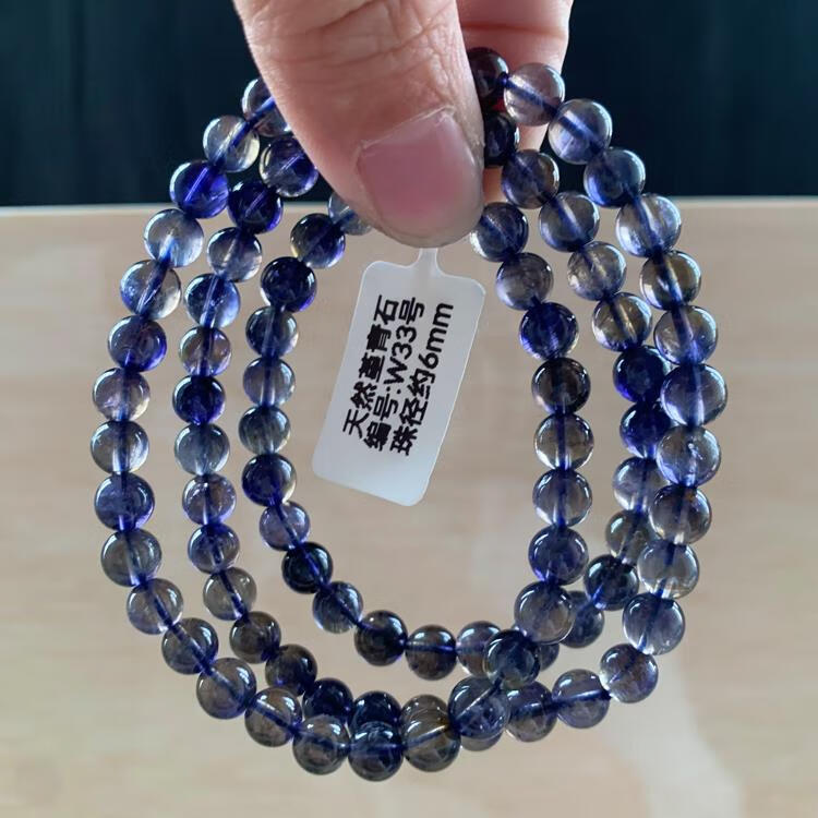 Natural ice-permeable cordierite three-circle Buddha beads bracelet, blue crystal tanzanite blue crystal, W15 about 5.8mm