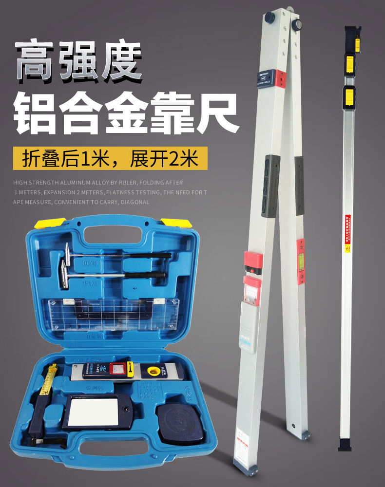 Puen 2-meter ruler engineering vertical detection ruler aluminum alloy folding horizontal ruler flatness measurement house inspection tool set 2-meter ruler including bag