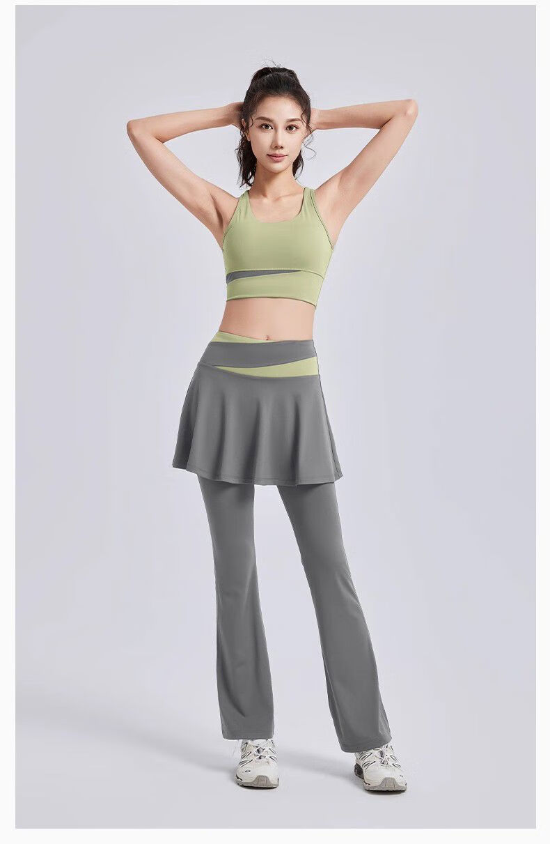 Sports jacket top women's yoga wear plus size running Pilates training fitness set shockproof bra set cardamom green + sea rock gray S recommended 80-95Jin Jin equals 0.5 kg