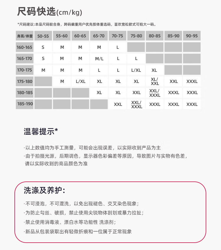 China (cm) 160-165/84-86 165-170 / 88-90 167-172 / 92-96 168-173 / 98-102 170-176 / 106-110